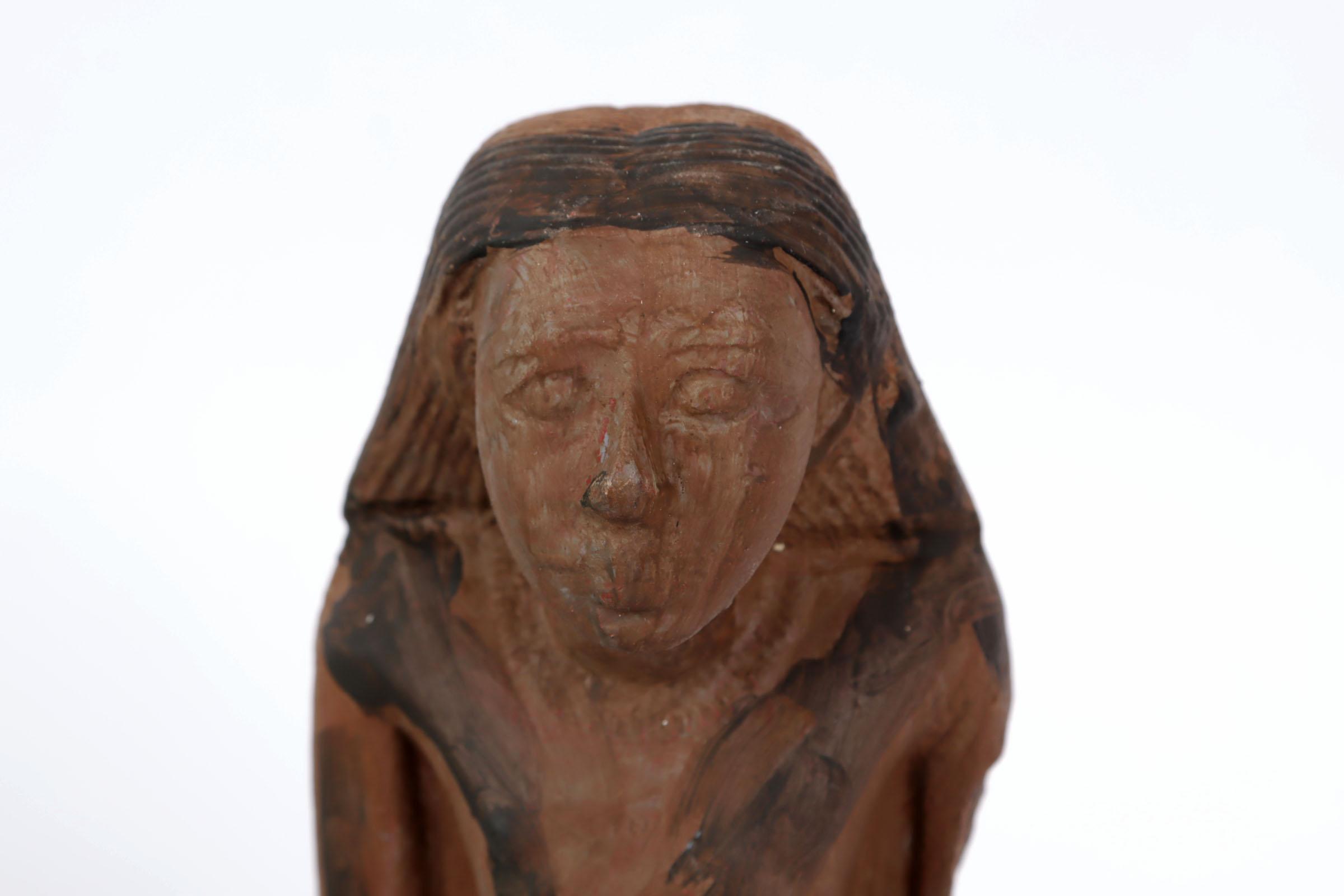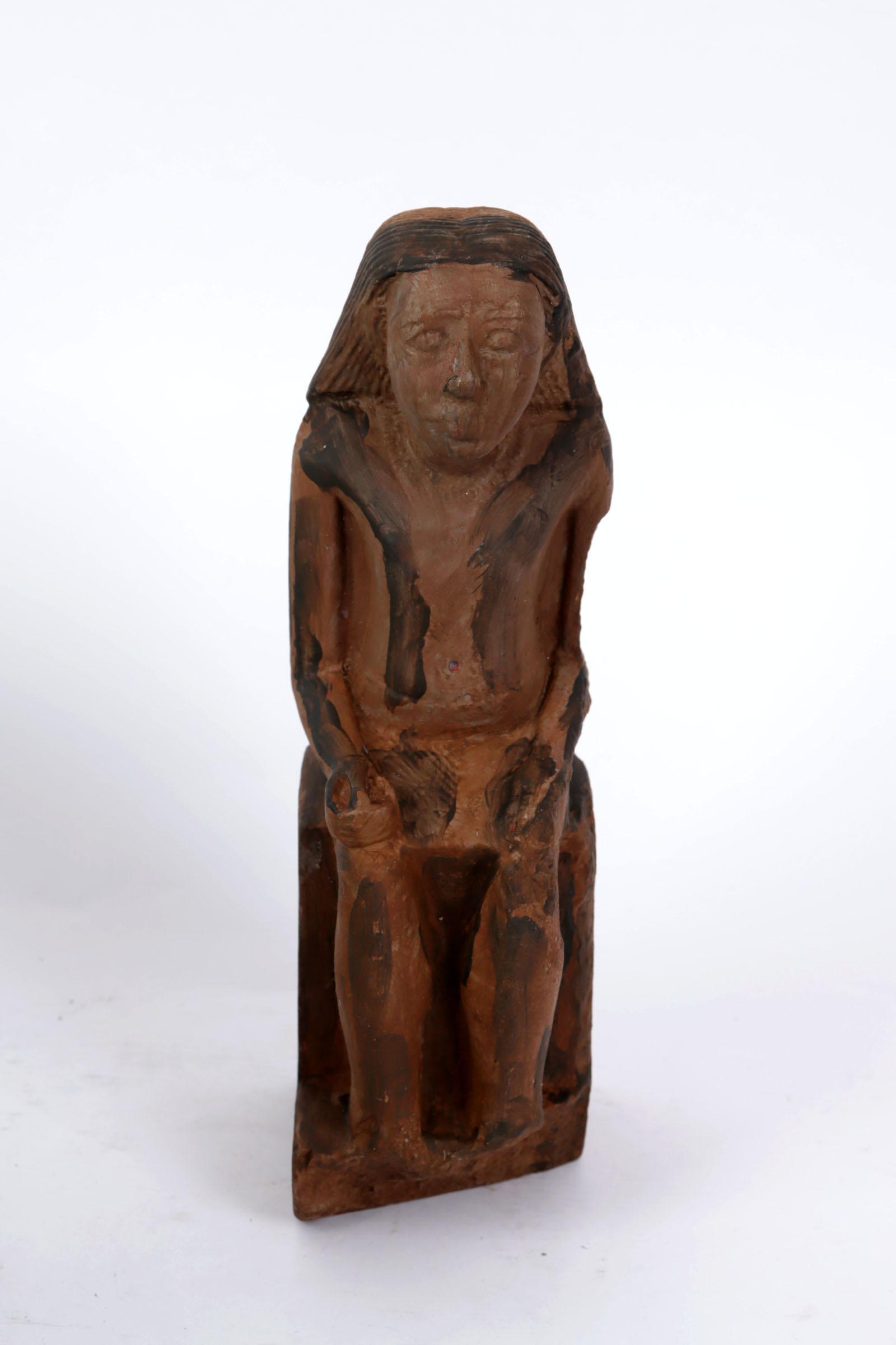 Inheems steengoed beeld van een heilige, h.26 cm.