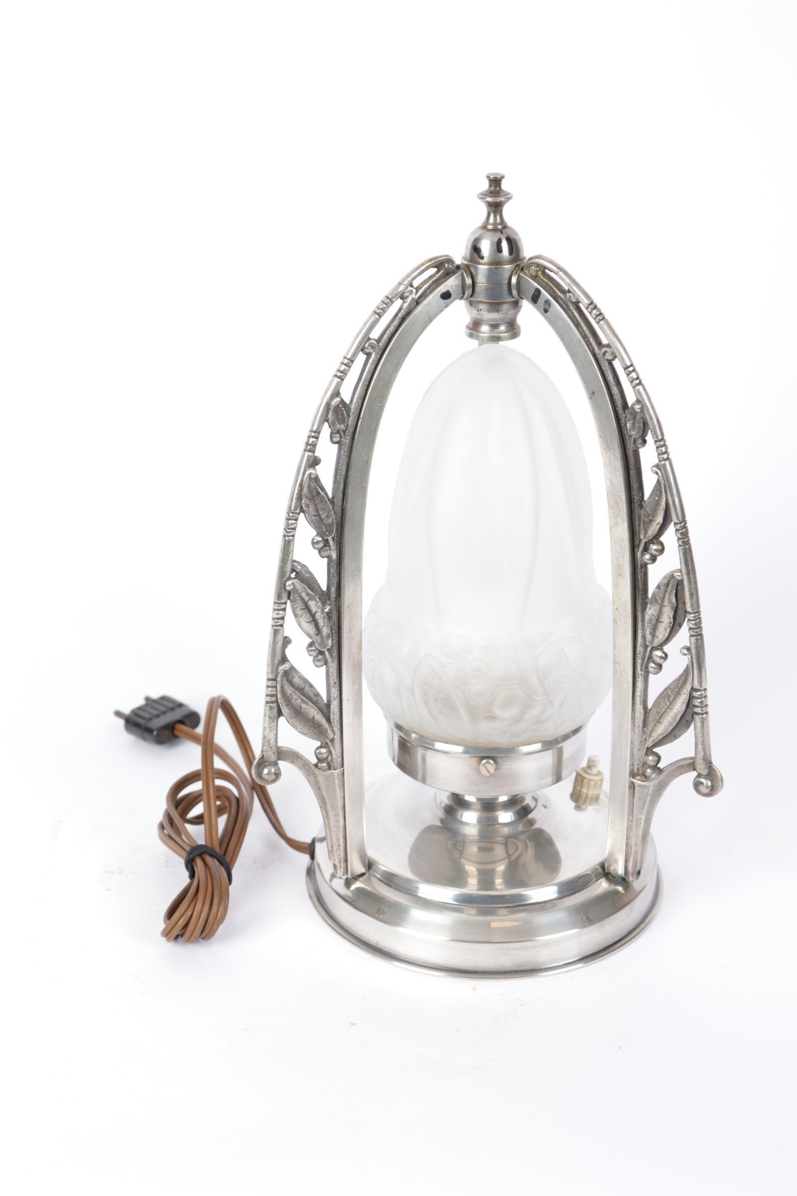 Art Deco tafellamp in verzilverd montuur, h.