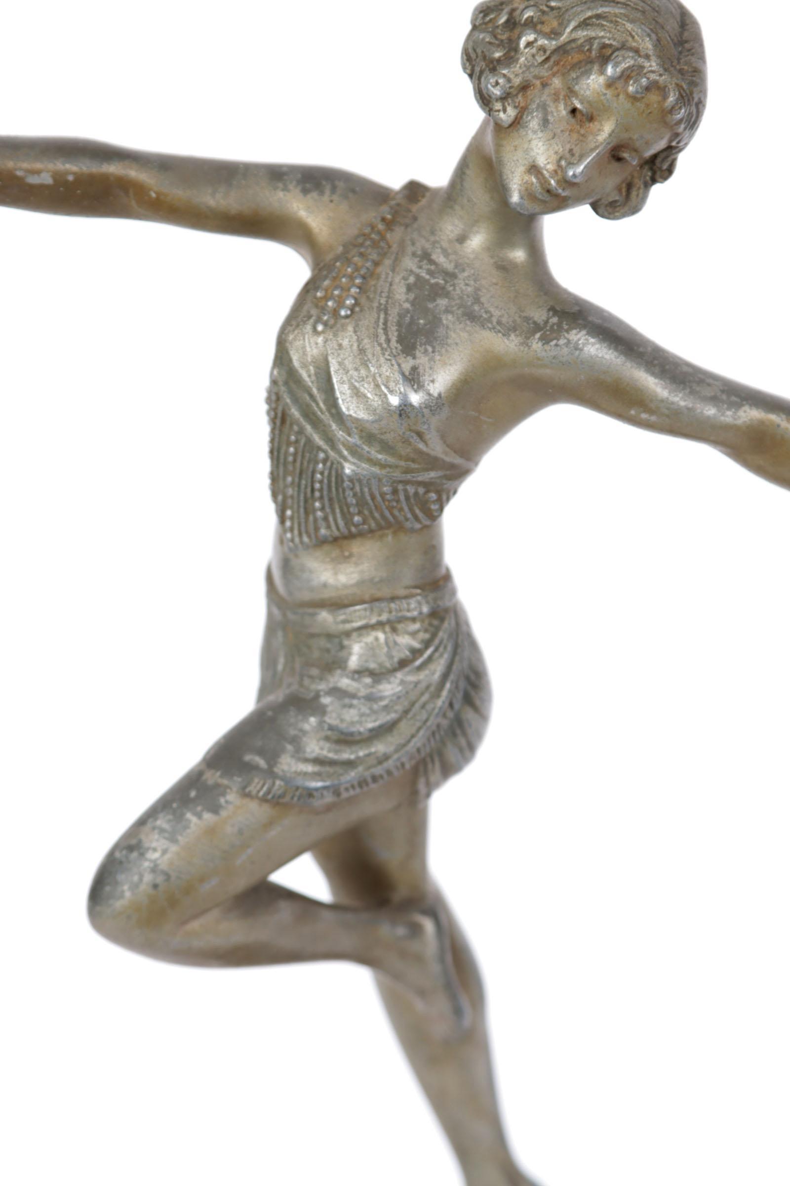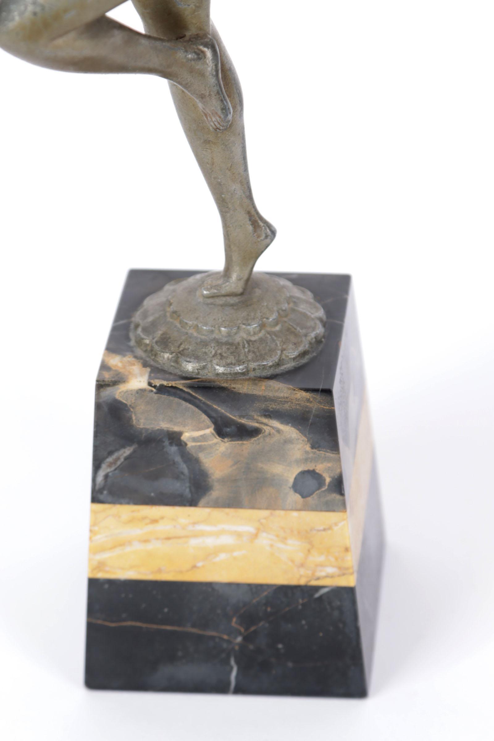Art Deco beeld van een danseres op marmeren voetstuk, h.