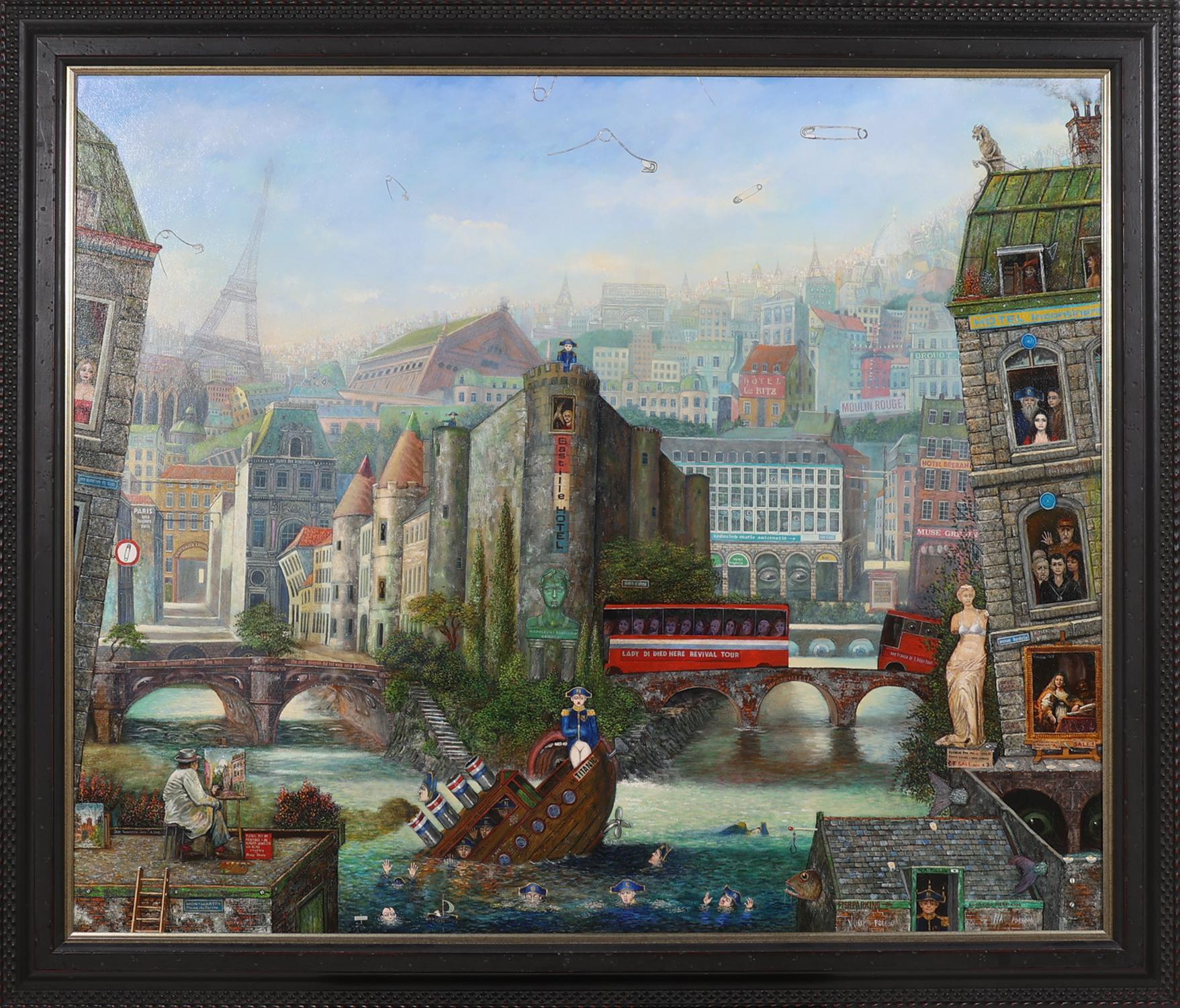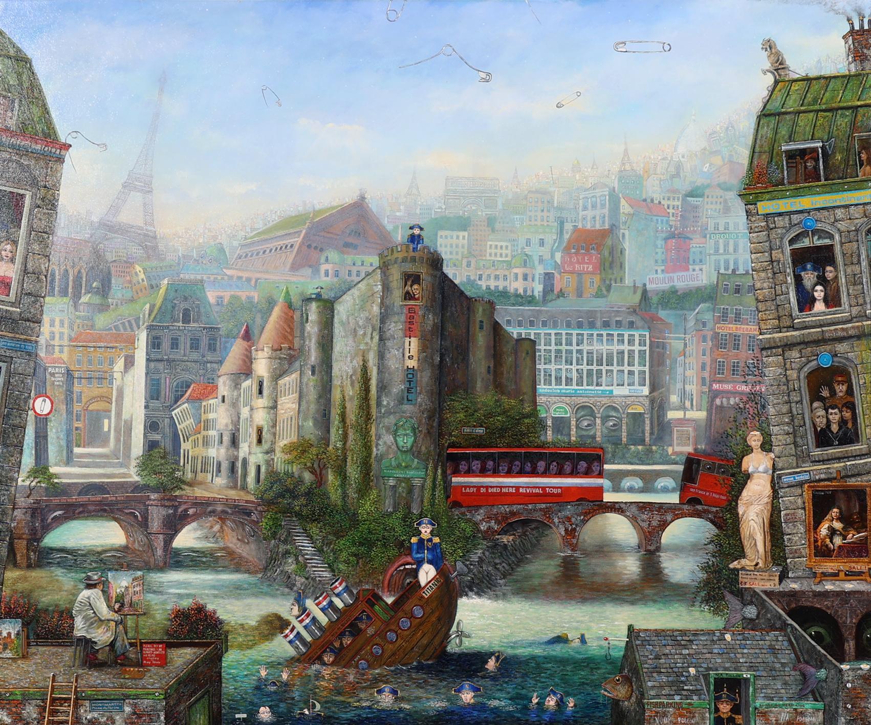 Jean Thomassen 1949, Gezicht op Parijs met Napoleons, olieverf op doek, gedateerd 2002, 120 x 100 cm., provenance particuliere collectie.