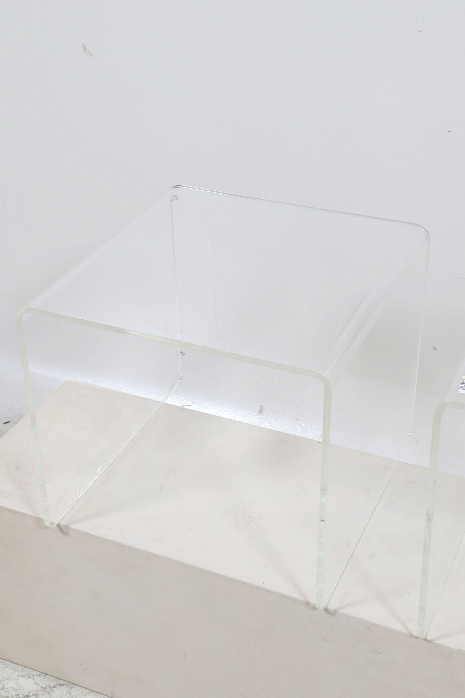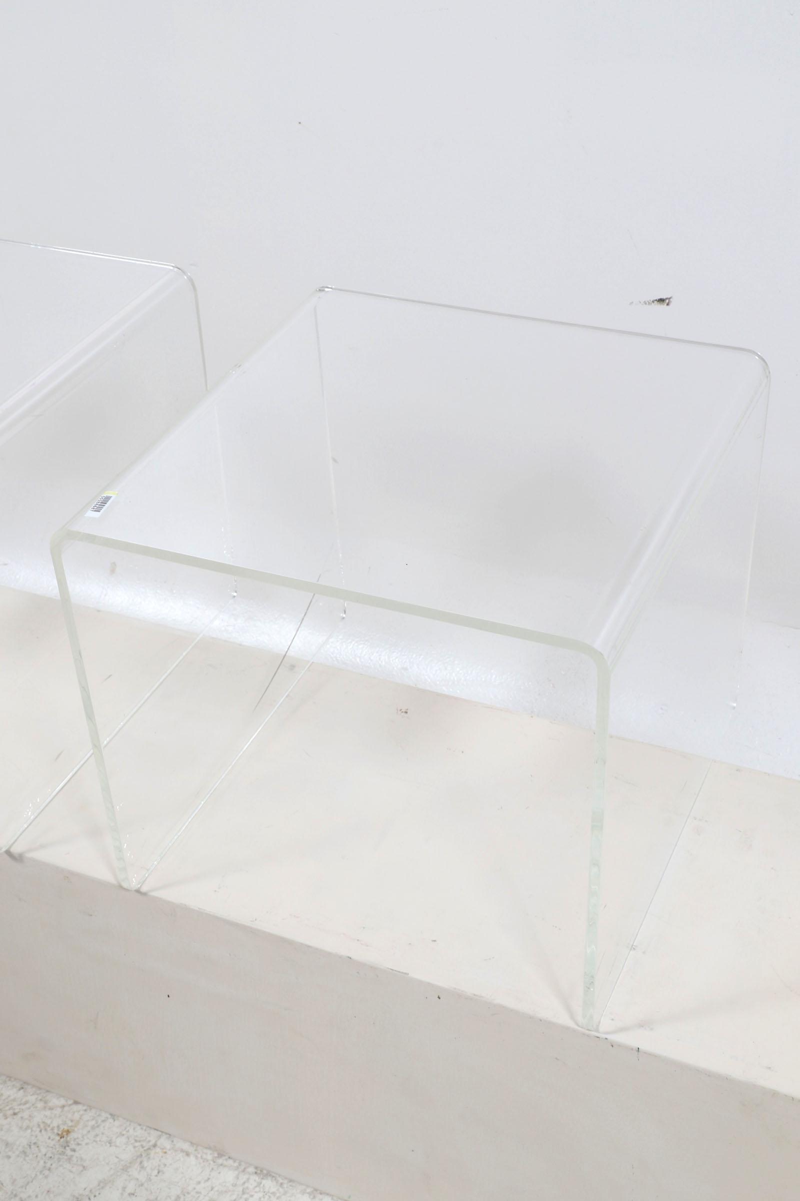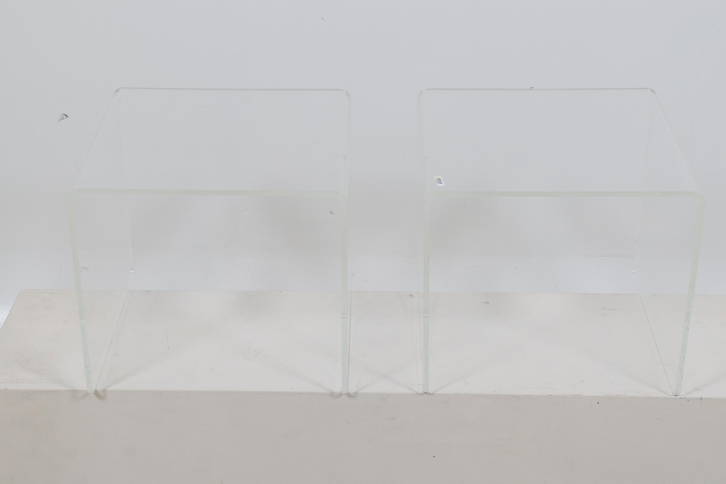 2 Plexiglazen bijzettafels, h.34 x b.38 x d.38 cm.