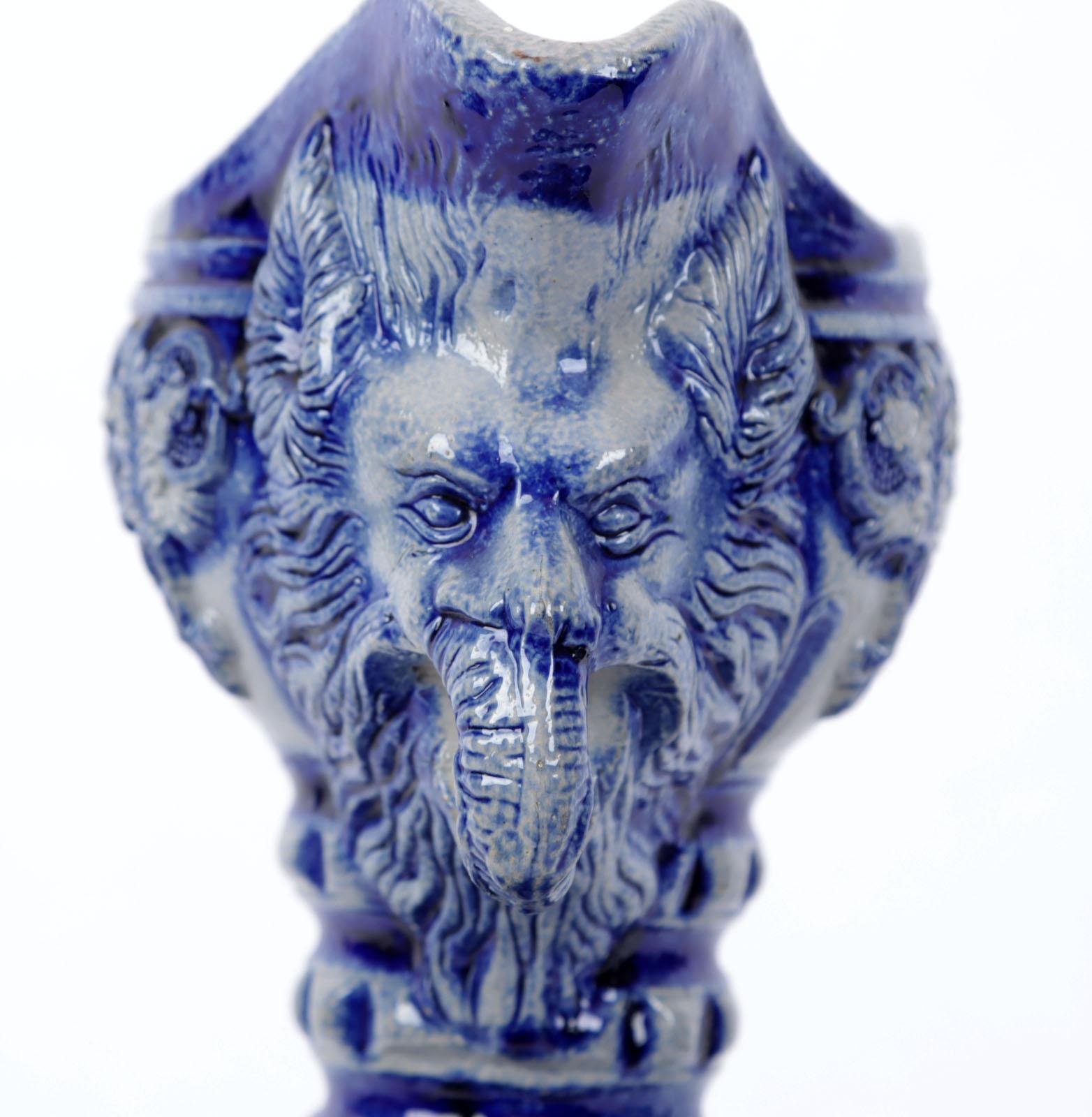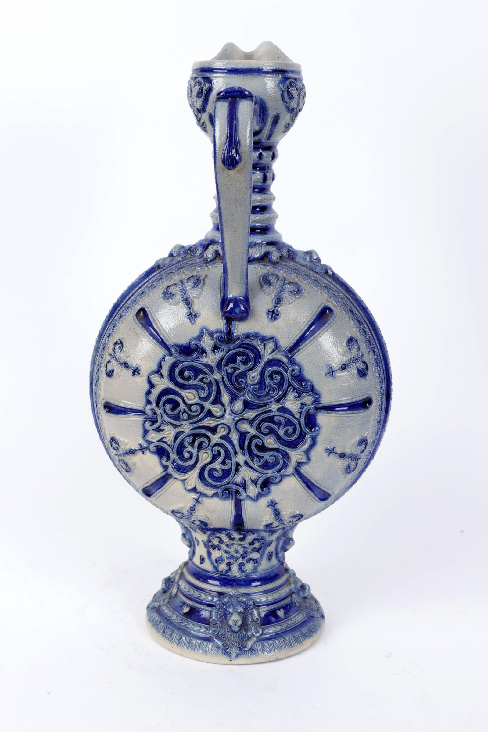 Antieke Westerwald steengoed pelgrimsfles, h.49 cm.