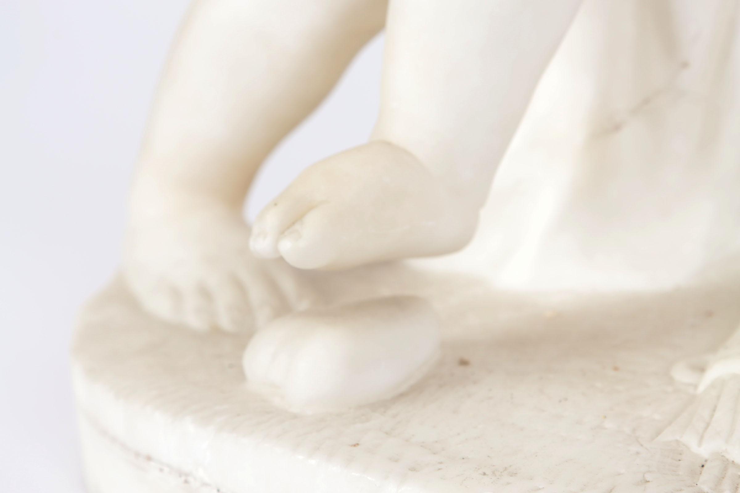 Onb.meester, Wit marmeren sculptuur van twee engelen, 19e eeuw, h.??? (vinger defect)