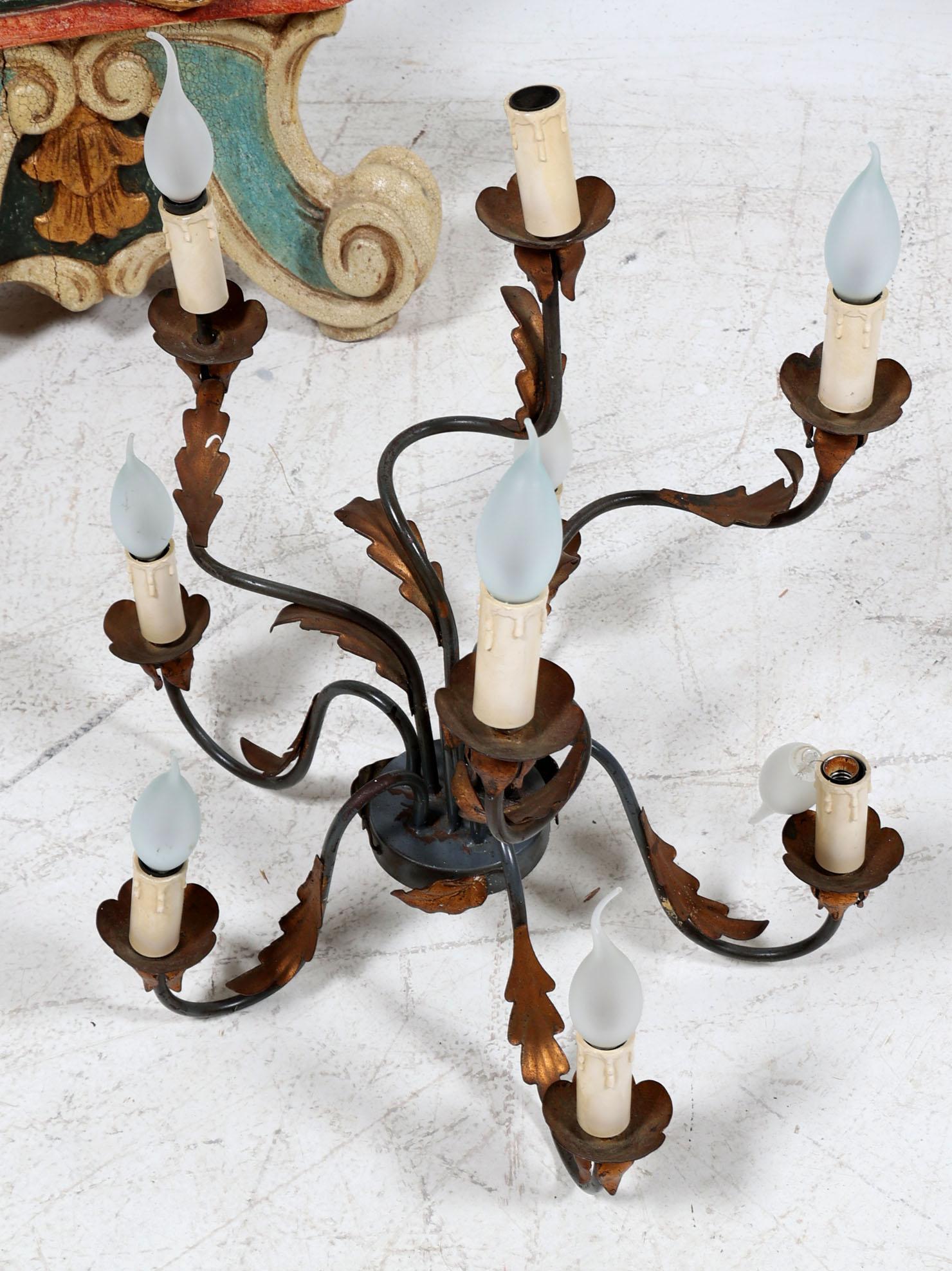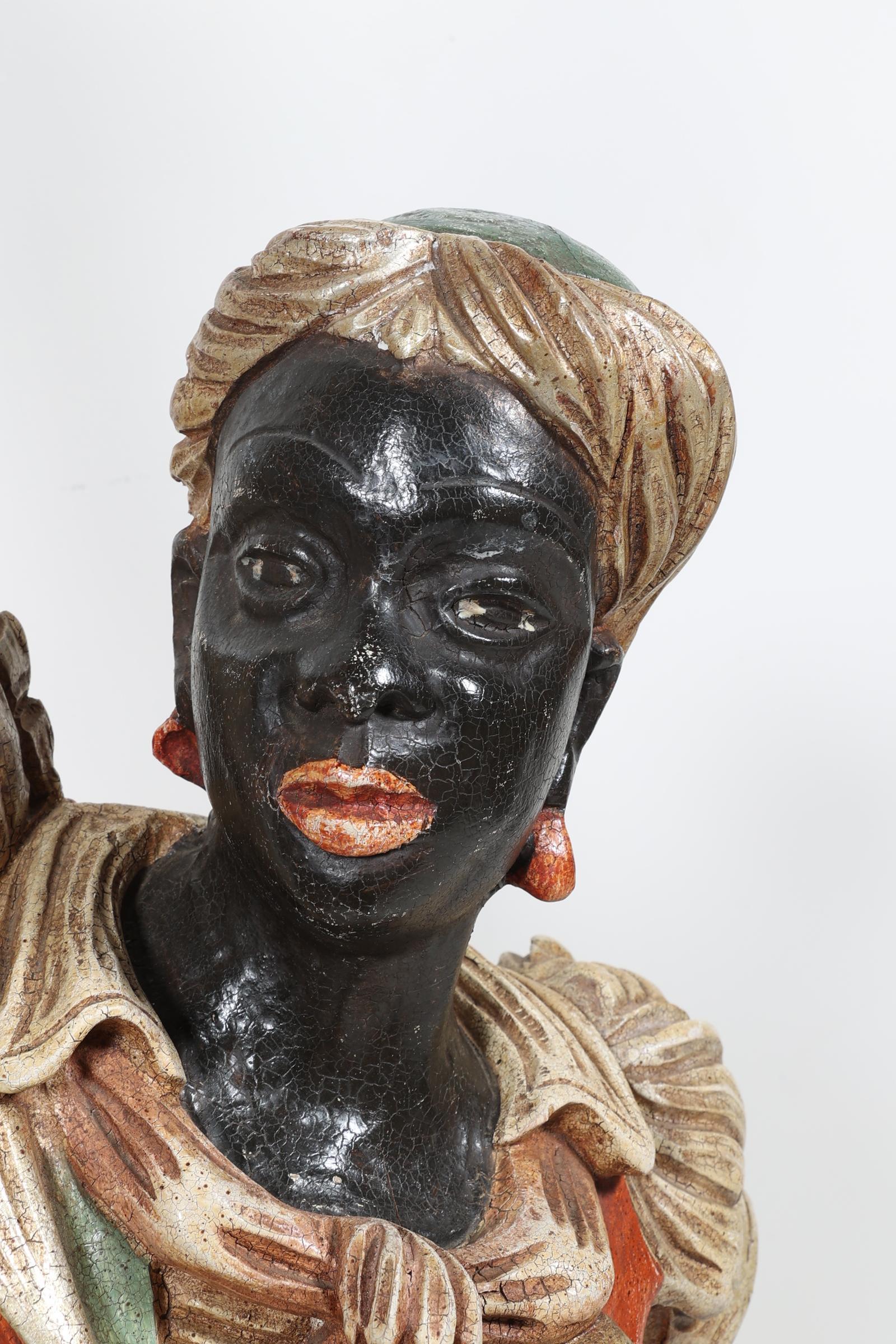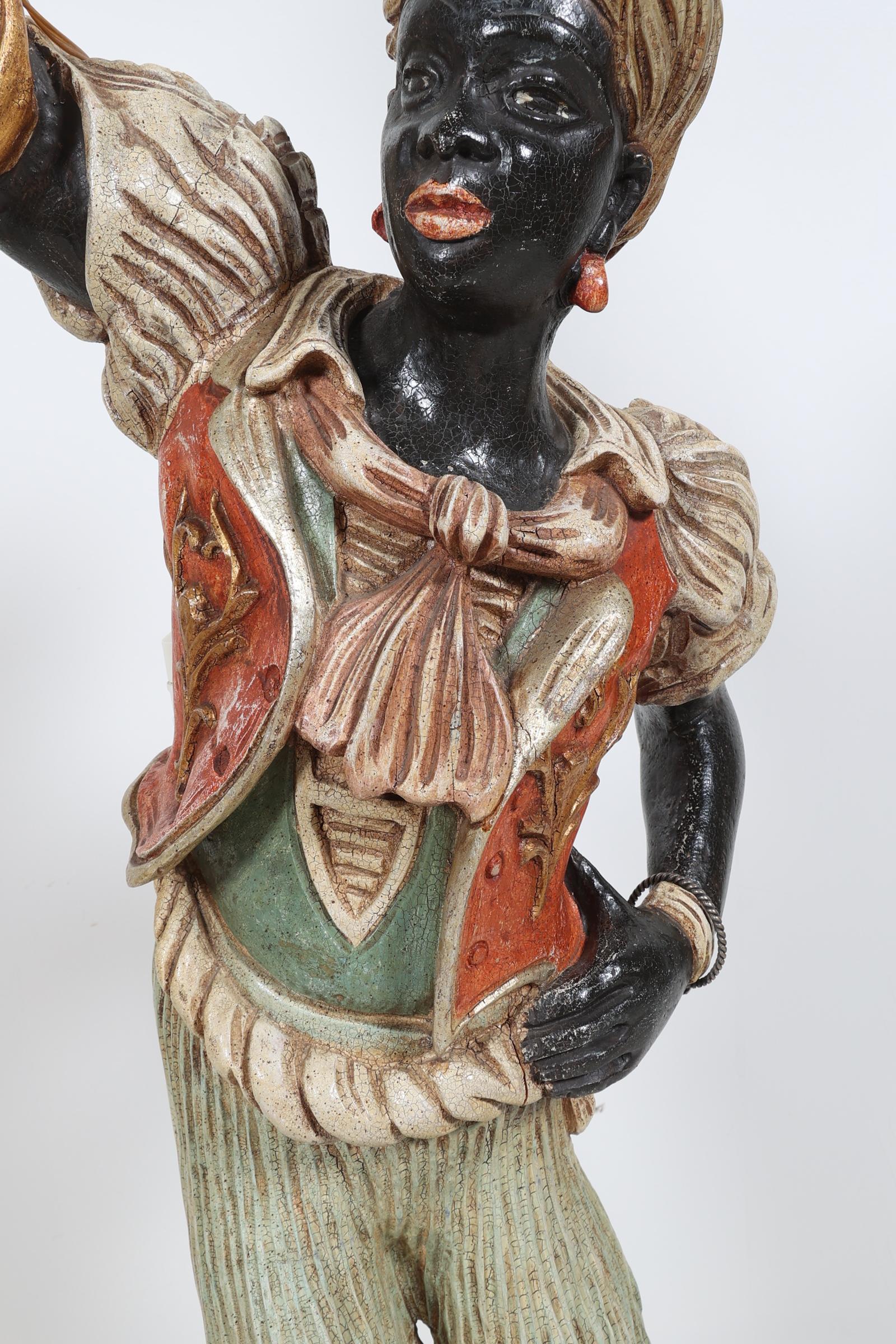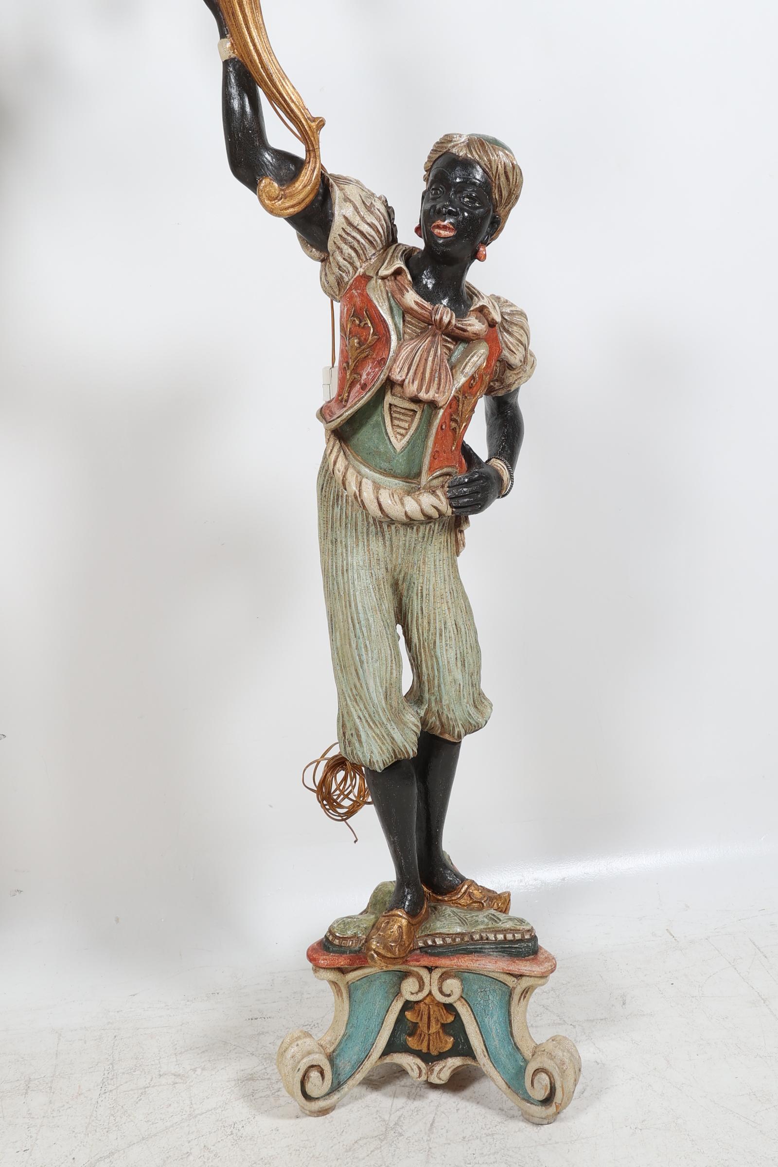 2 Gepolychromeerde Venetiaanse houten lampen gedragen door mannen, h.??? (bedrading niet aangesloten)