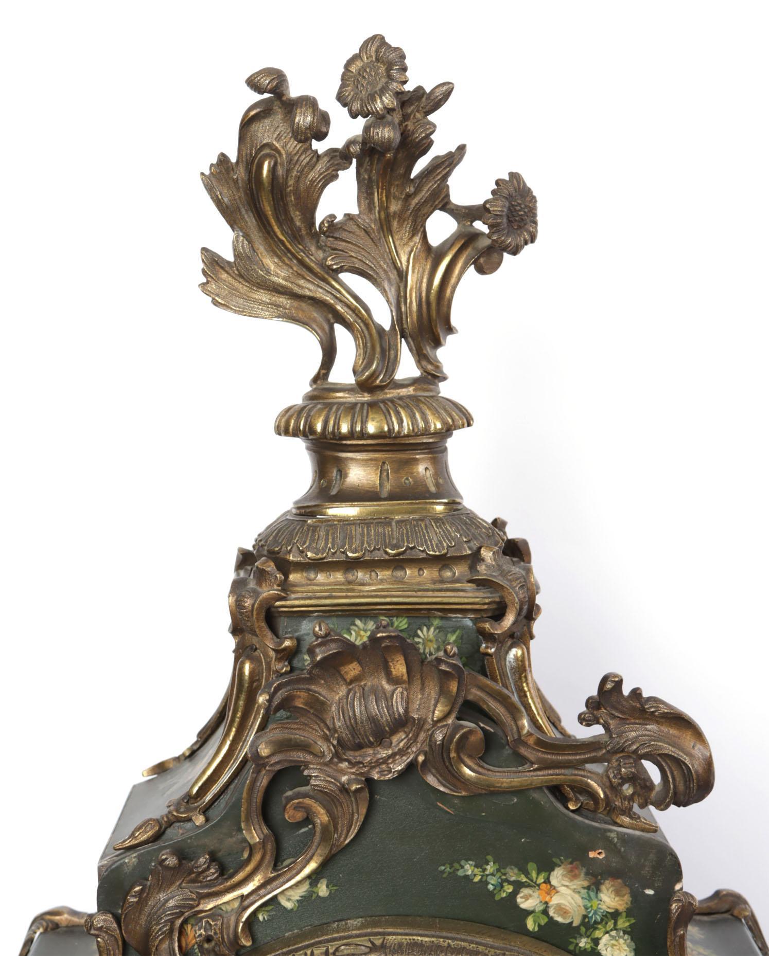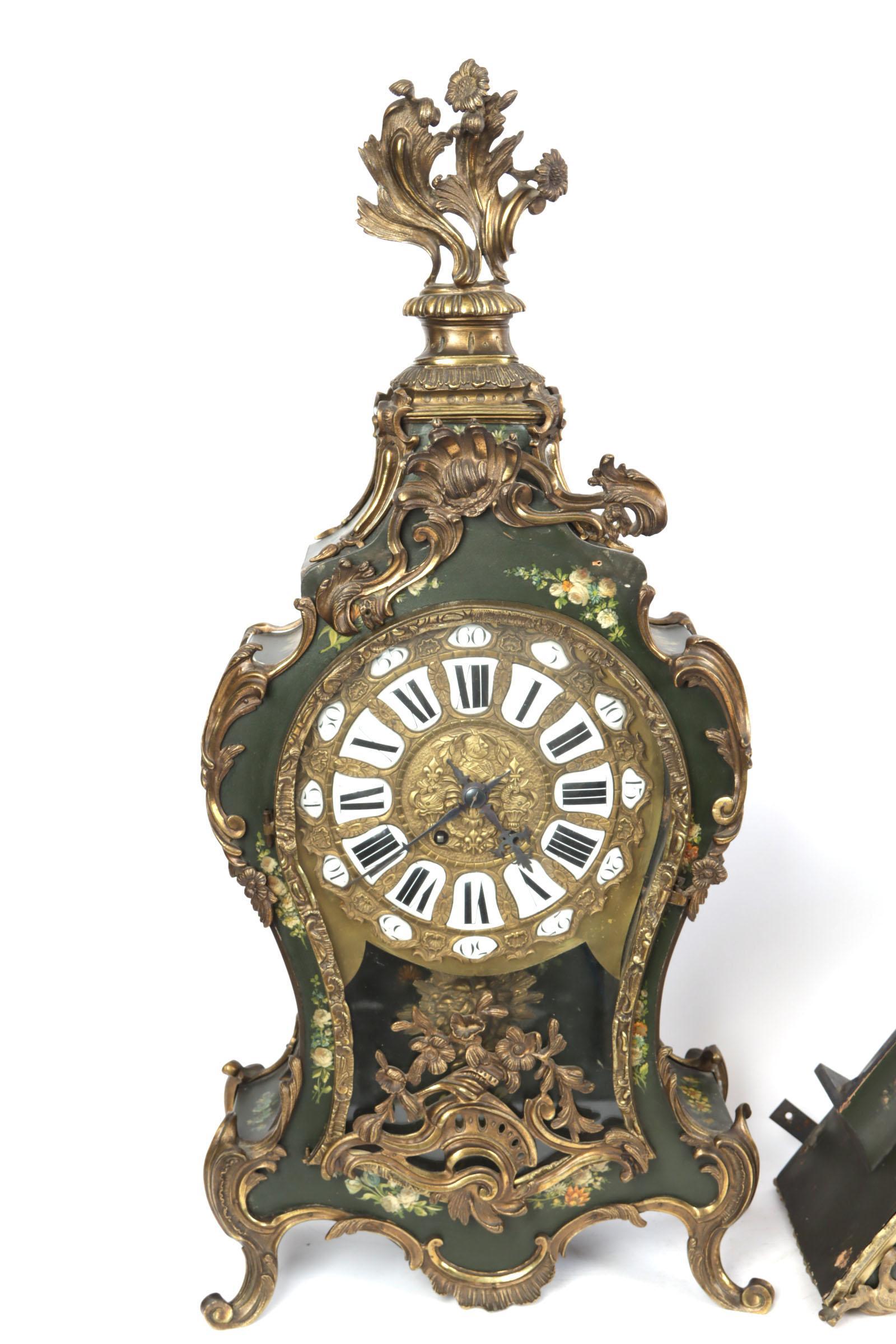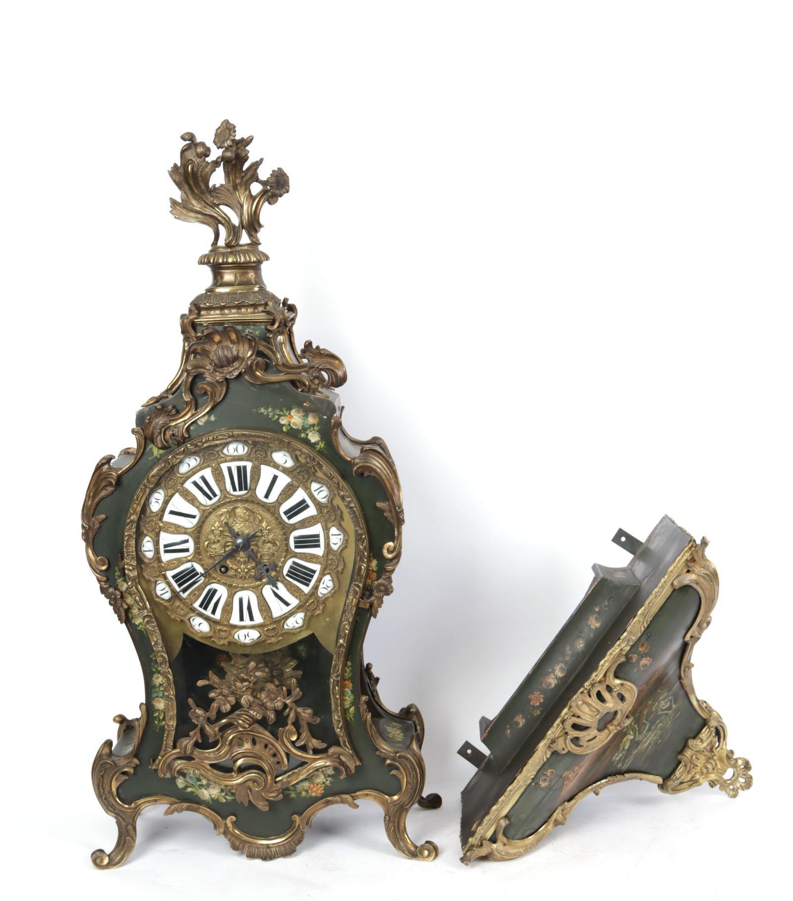 Met bloemen en dieren beschilderde consoleklok met bijpassende console