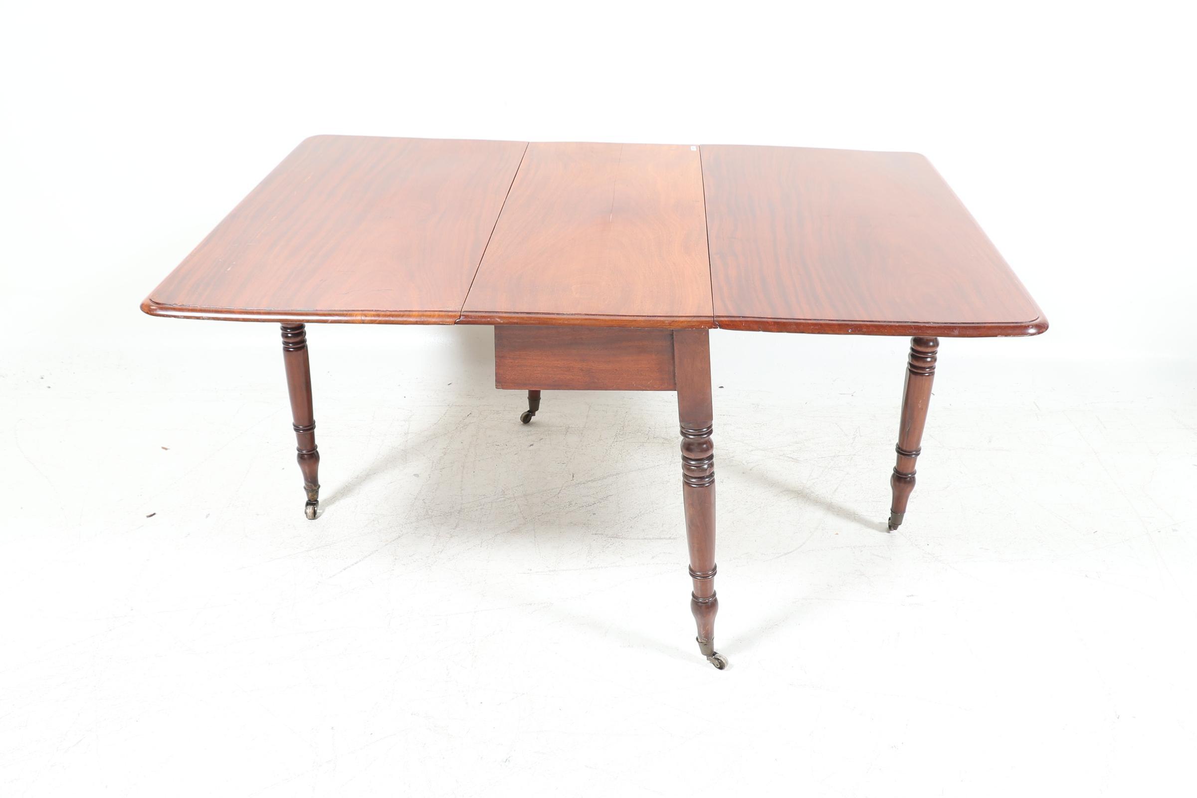 Antieke mahoniehouten hangoortafel rustend op messing wielen