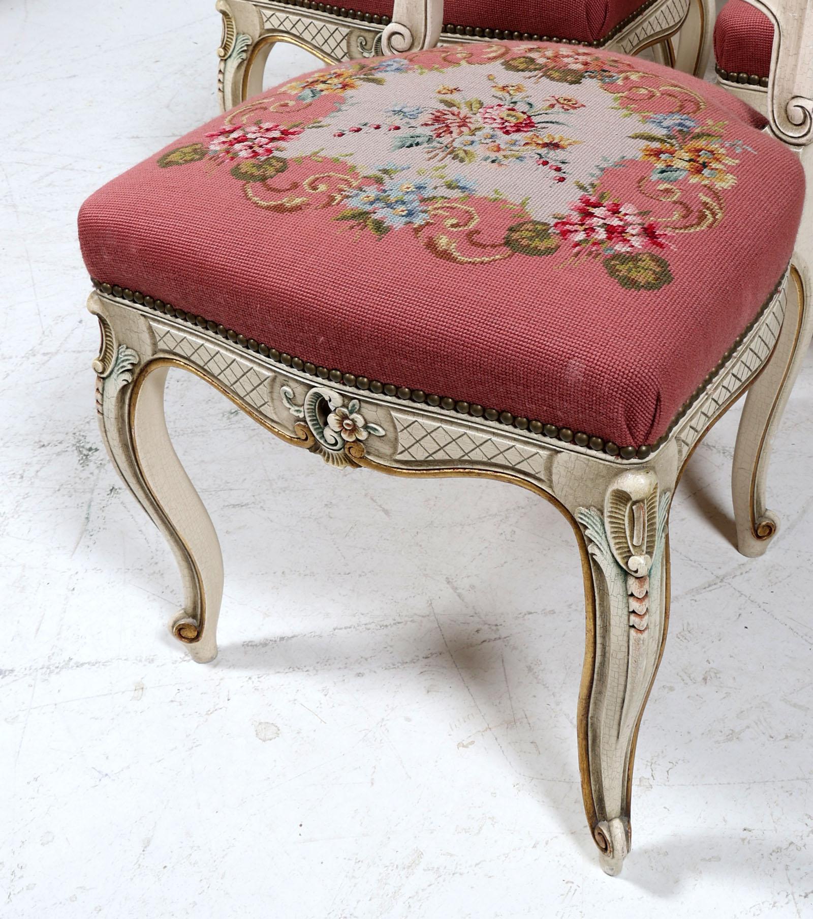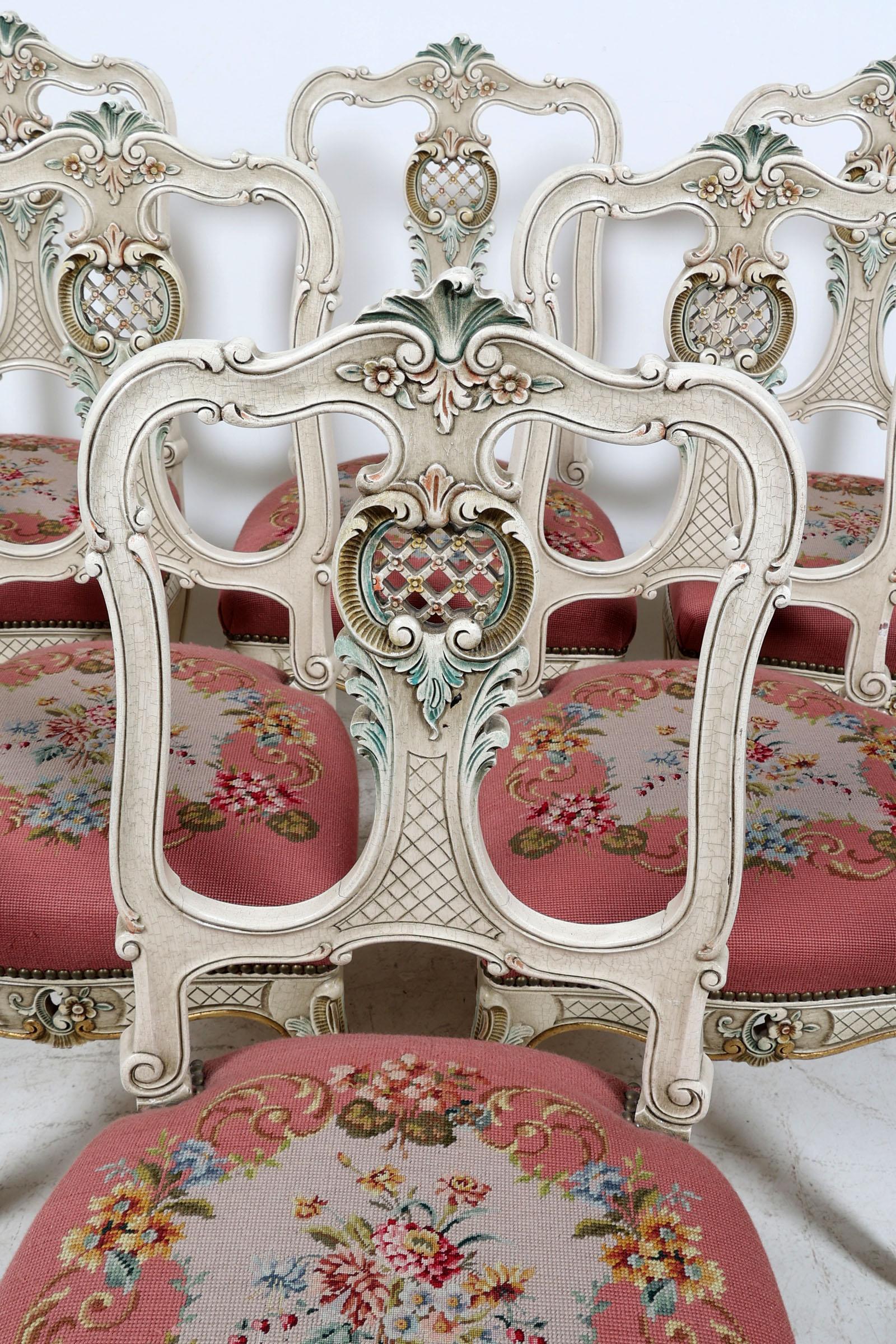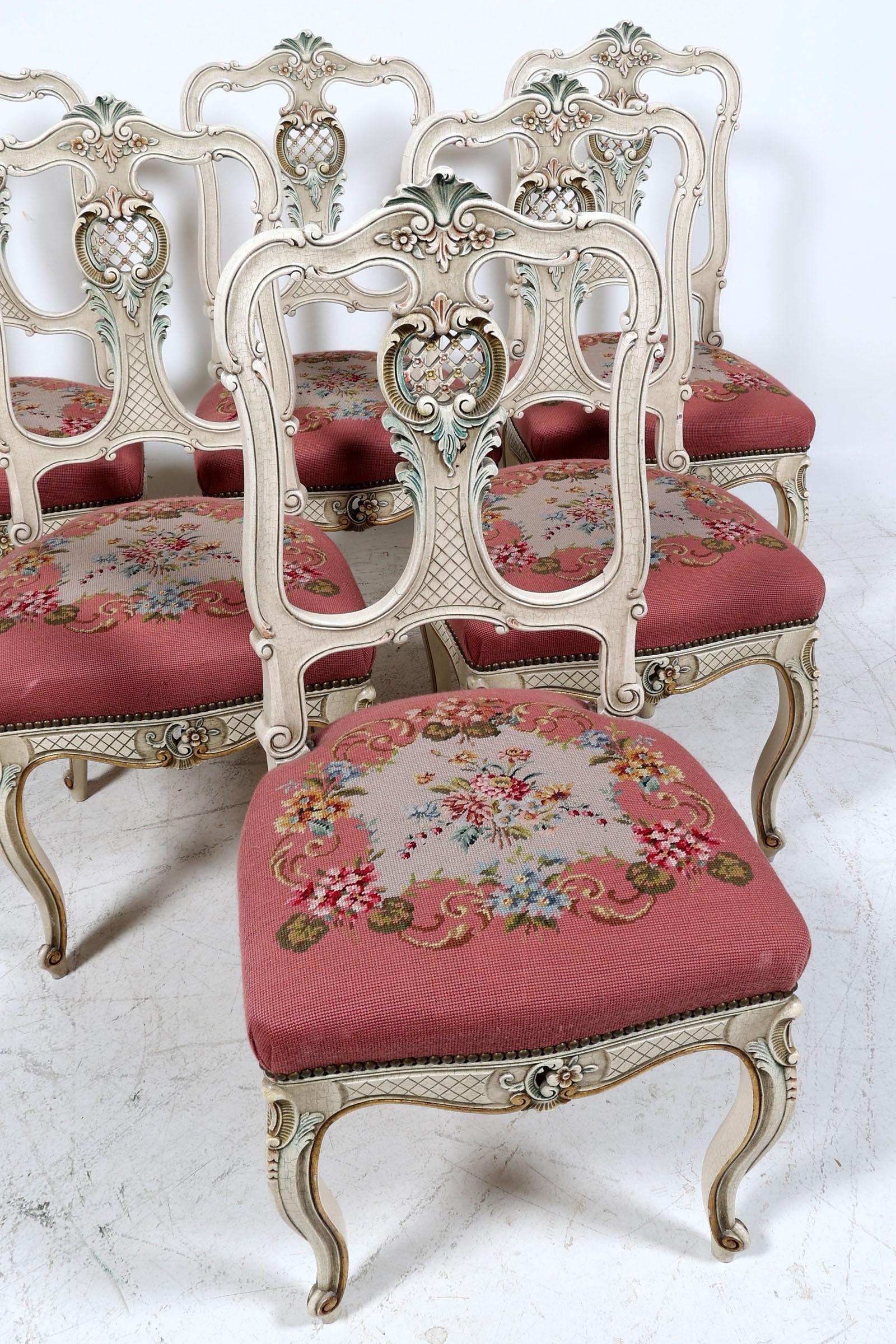 6 Laké stoelen met geborduurde zitting