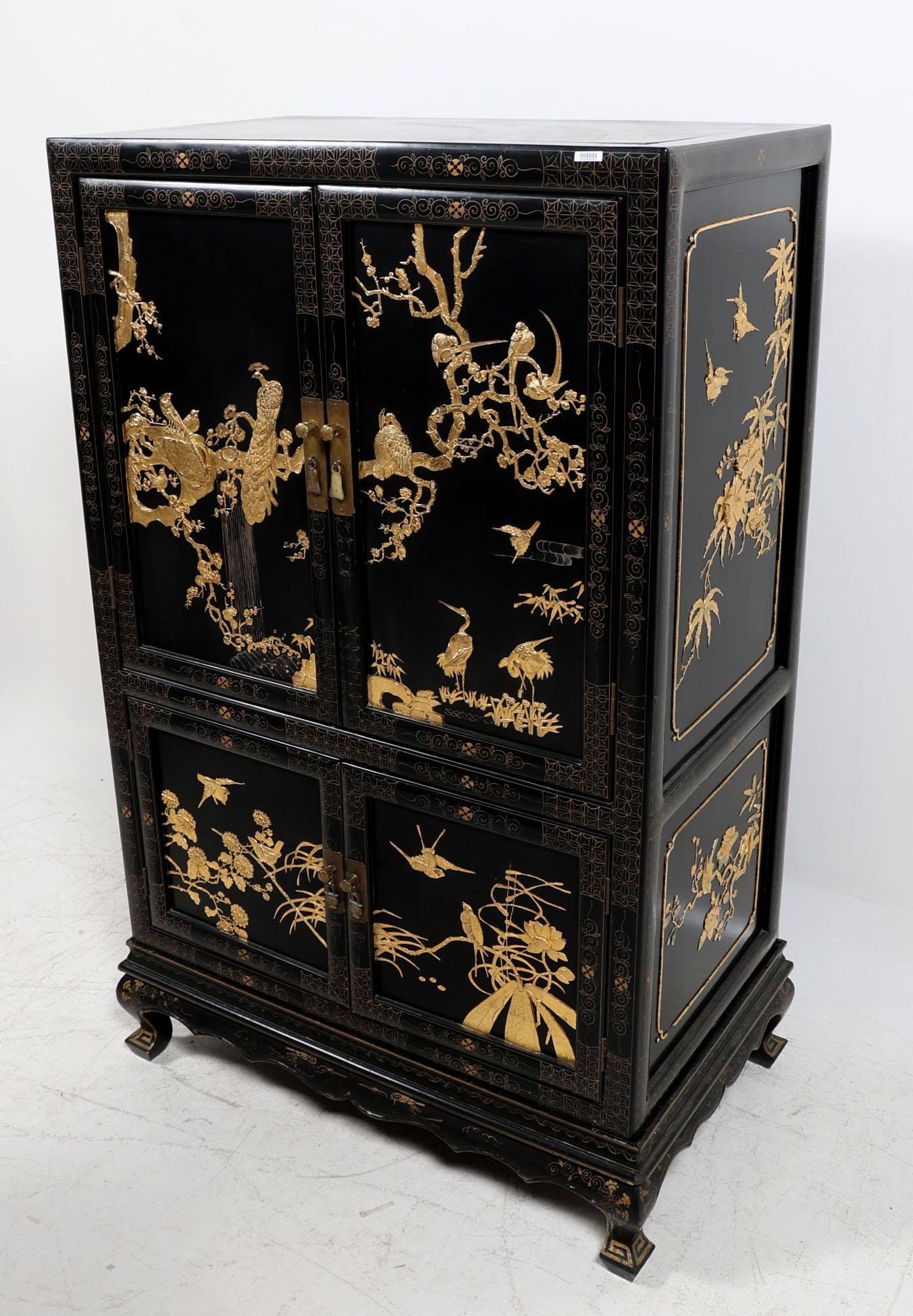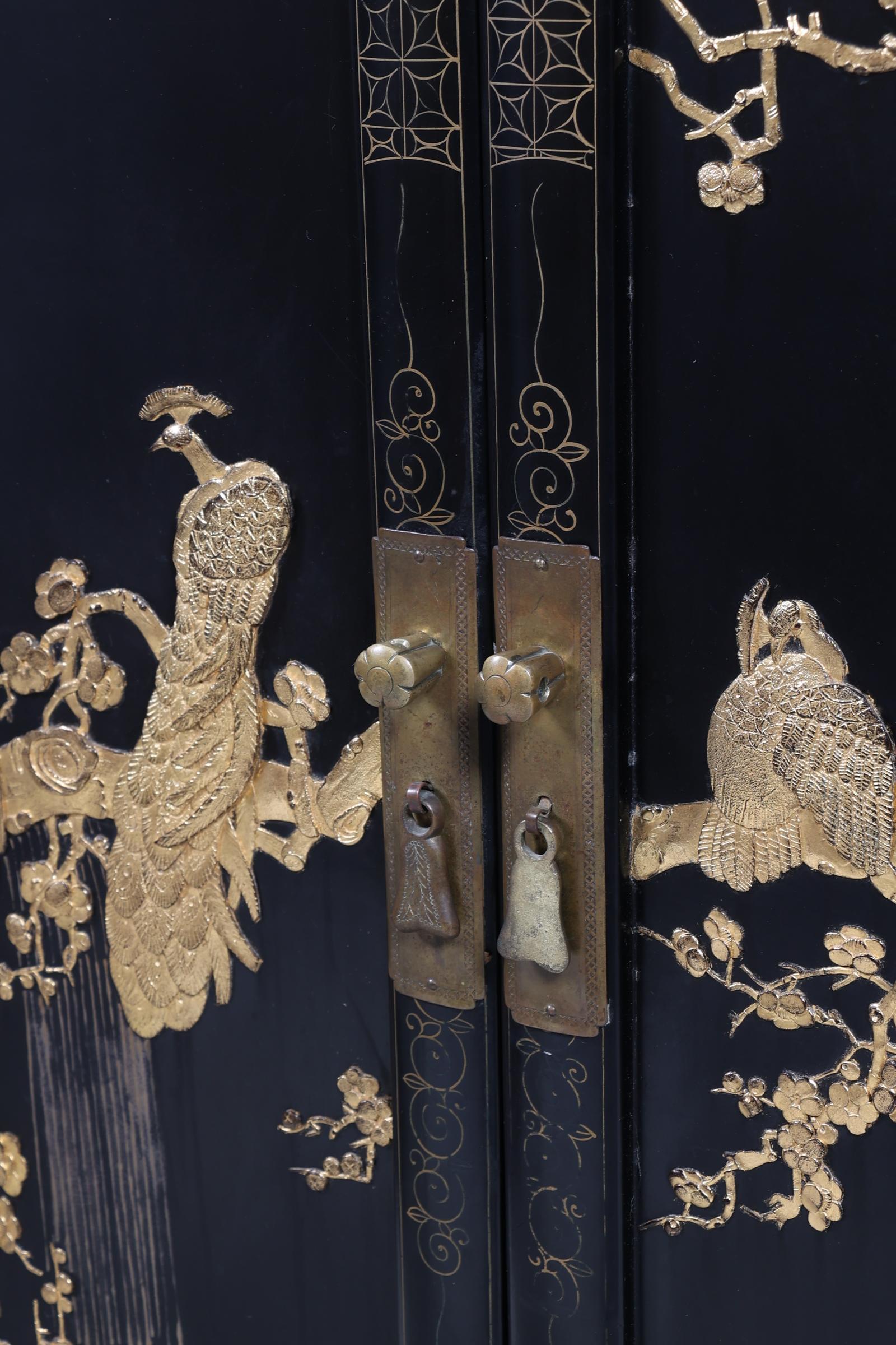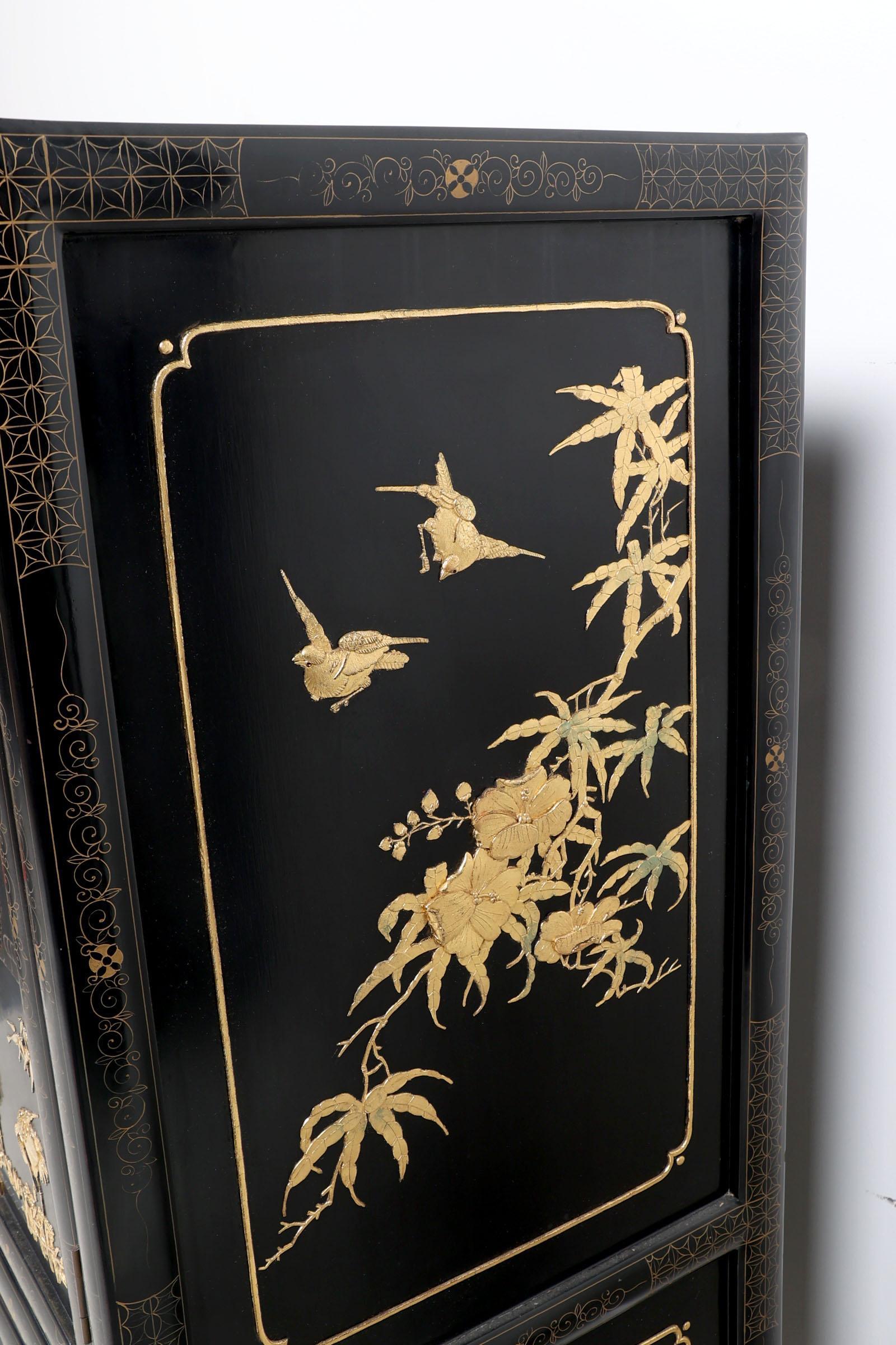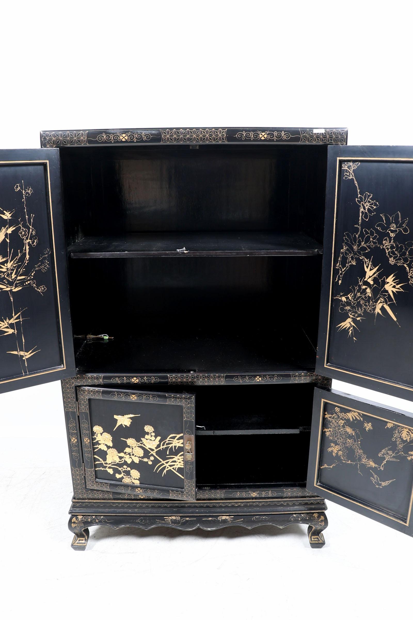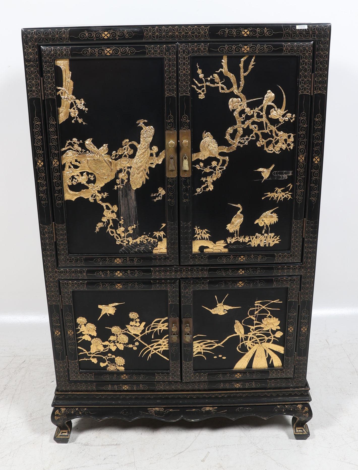 Zwarte Chinese lakwerk 4-deurs kast met gouden decoraties