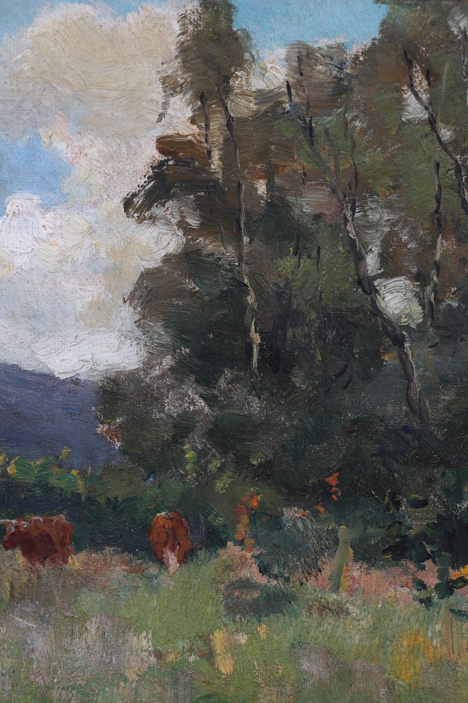 Gerard Altmann (1877-1940), Frans landschap met koeien, olieverf op schilderskarton, 19,5 x 29 cm., gesigneerd l.o. en etiket op achterzijde, provenance Gebroeders Koch Kunsthandel Rotterdam (gemerkt achterzijde)