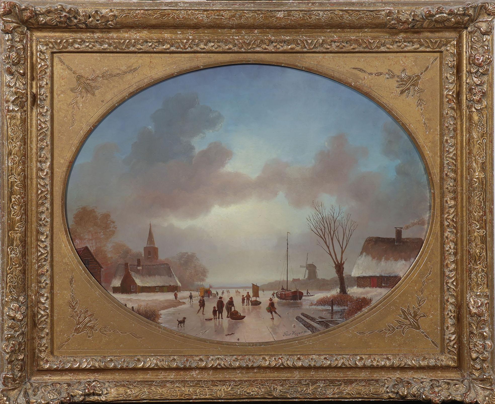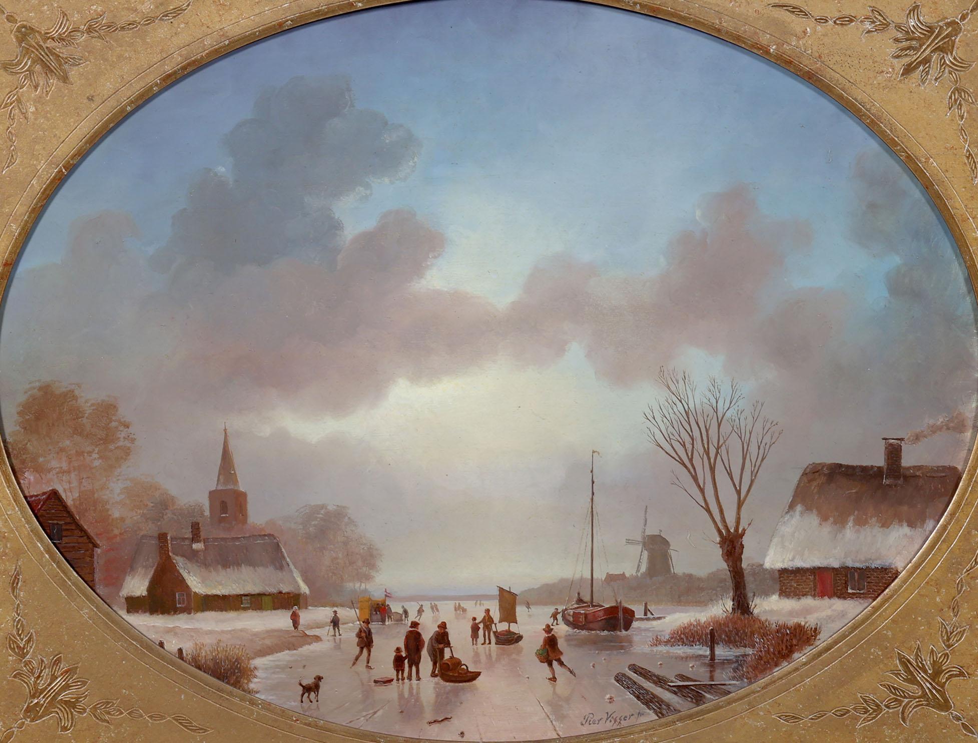 Pier Johannes de Visser (1764-1848), Personen op het ijs, olieverf op paneel, 38 x 50 cm.