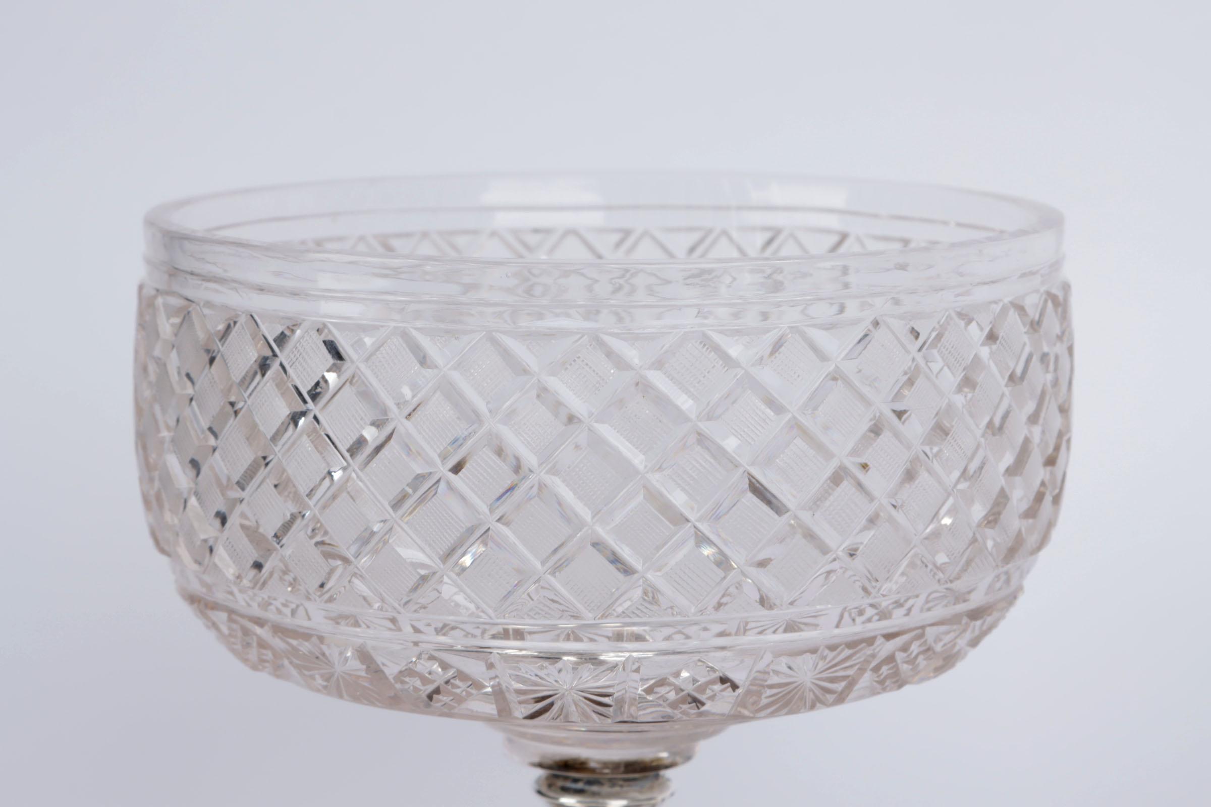 Ruitgeslepen kristallen bokaal op zilveren voetstuk, h.17 x daim.18 cm.