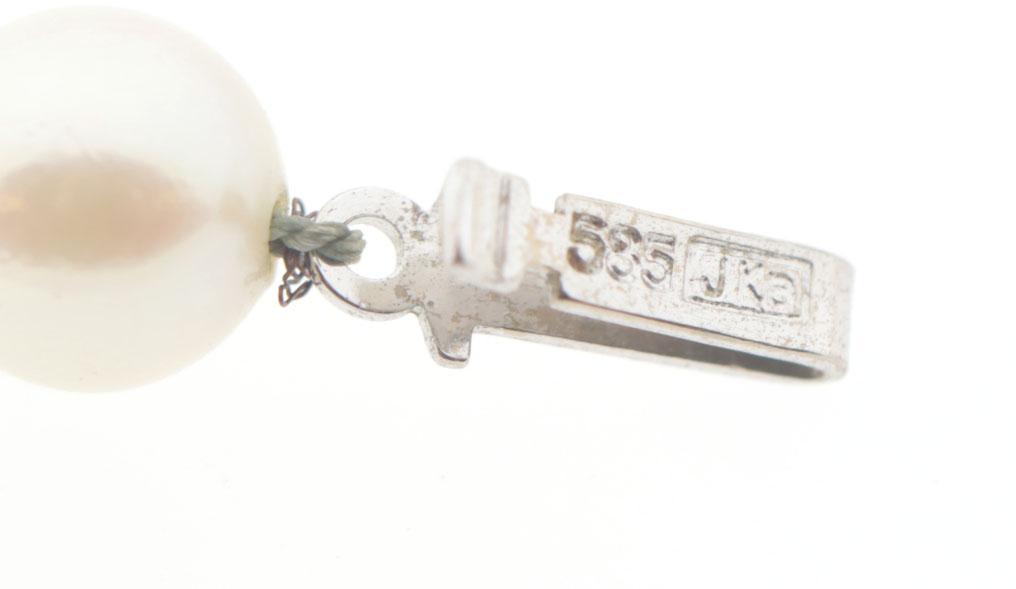 Natuurlijke parelcollier met zilveren slot, L.93 cm.