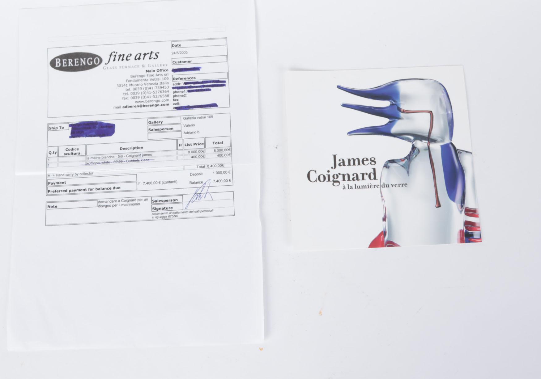 James Coignard (1925-2008), La maine blanche, glazen sculptuur, oplage 5/6, h.52 cm. Provenance: particuliere collectie / aangekocht bij Berengo Fine Arts Glass Furnace & Gallery te Murano Venetië (inclusief aankoopbewijs)