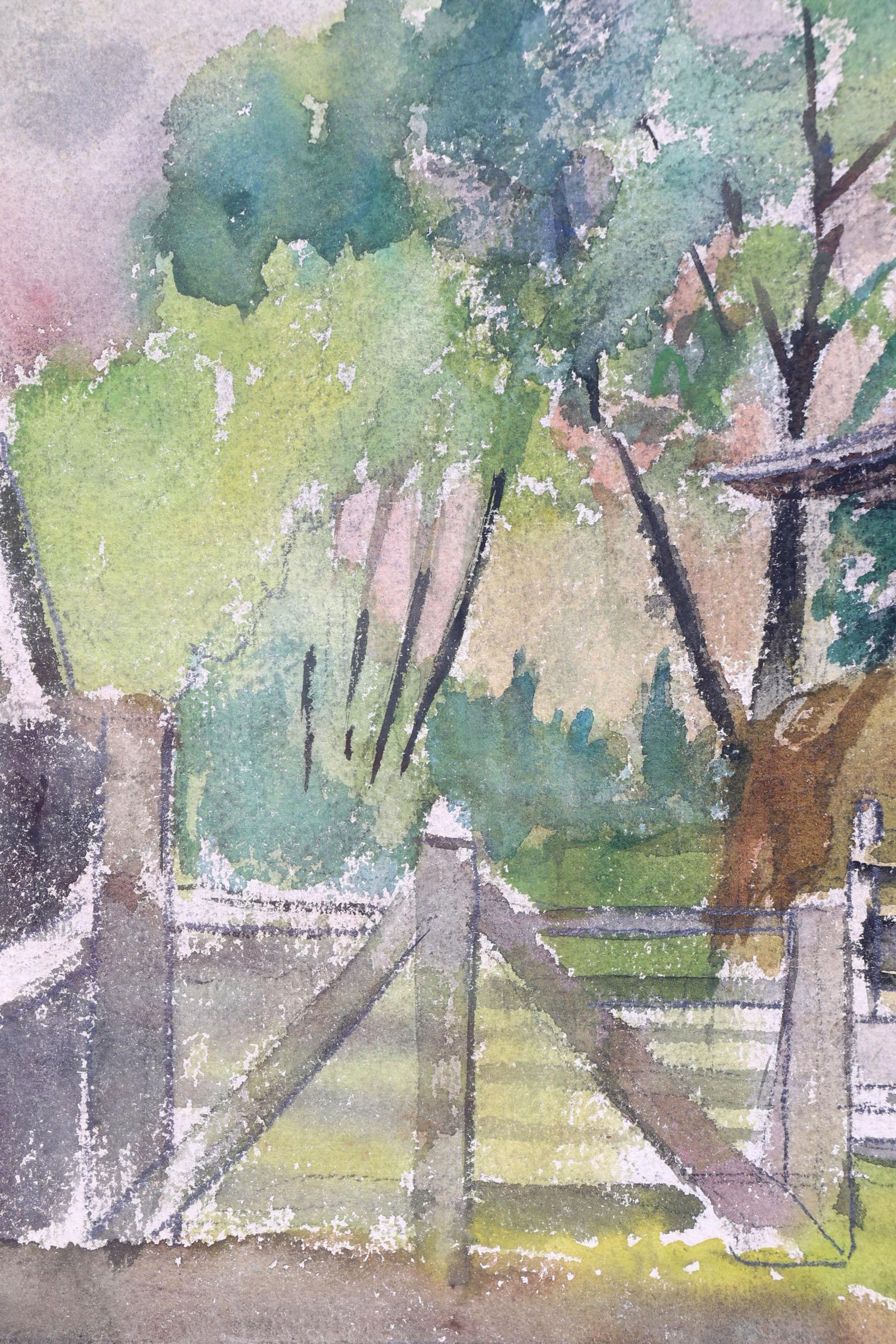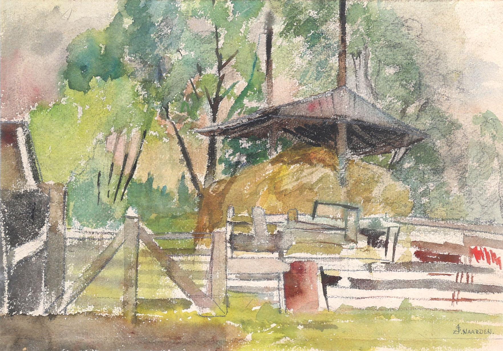 Isaac Naarden (1902-1982), Hooiberg onder afdak, aquarel op papier, 26,5 x 37,5 cm.