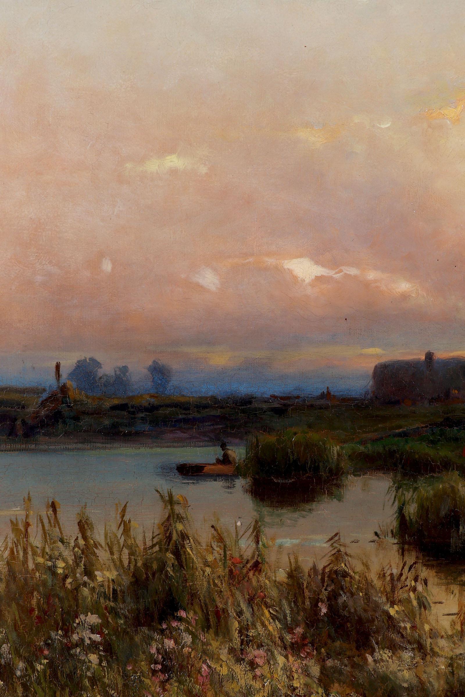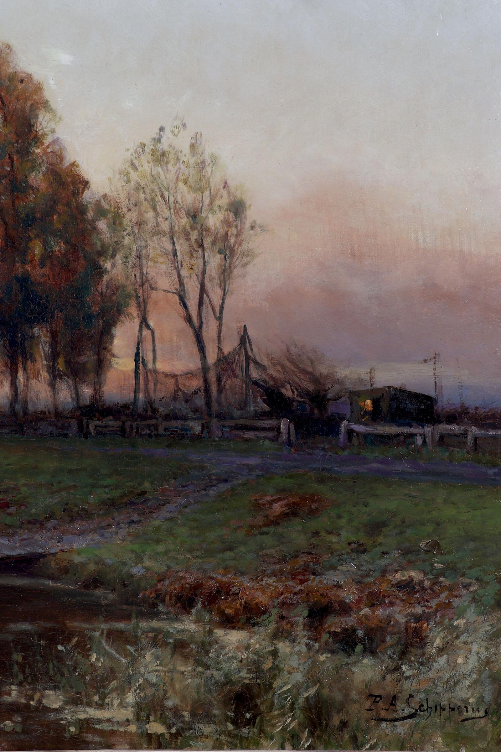 Pieter Adriaan C. Schipperus (1840-1929), Landschap langs het water, olieverf op doek, 70 x 120 cm.