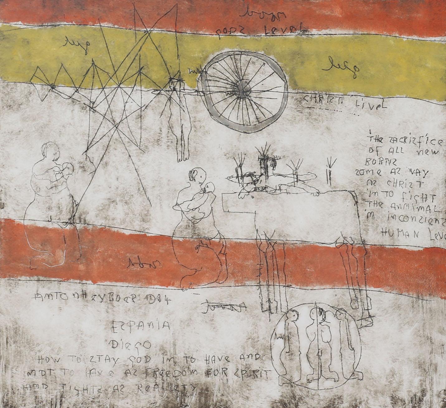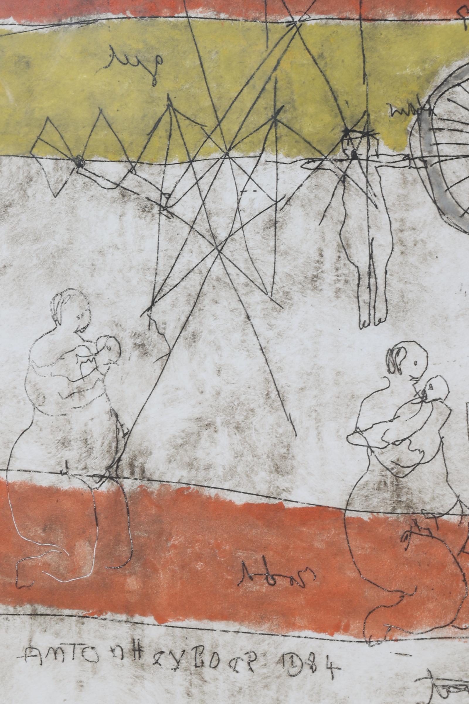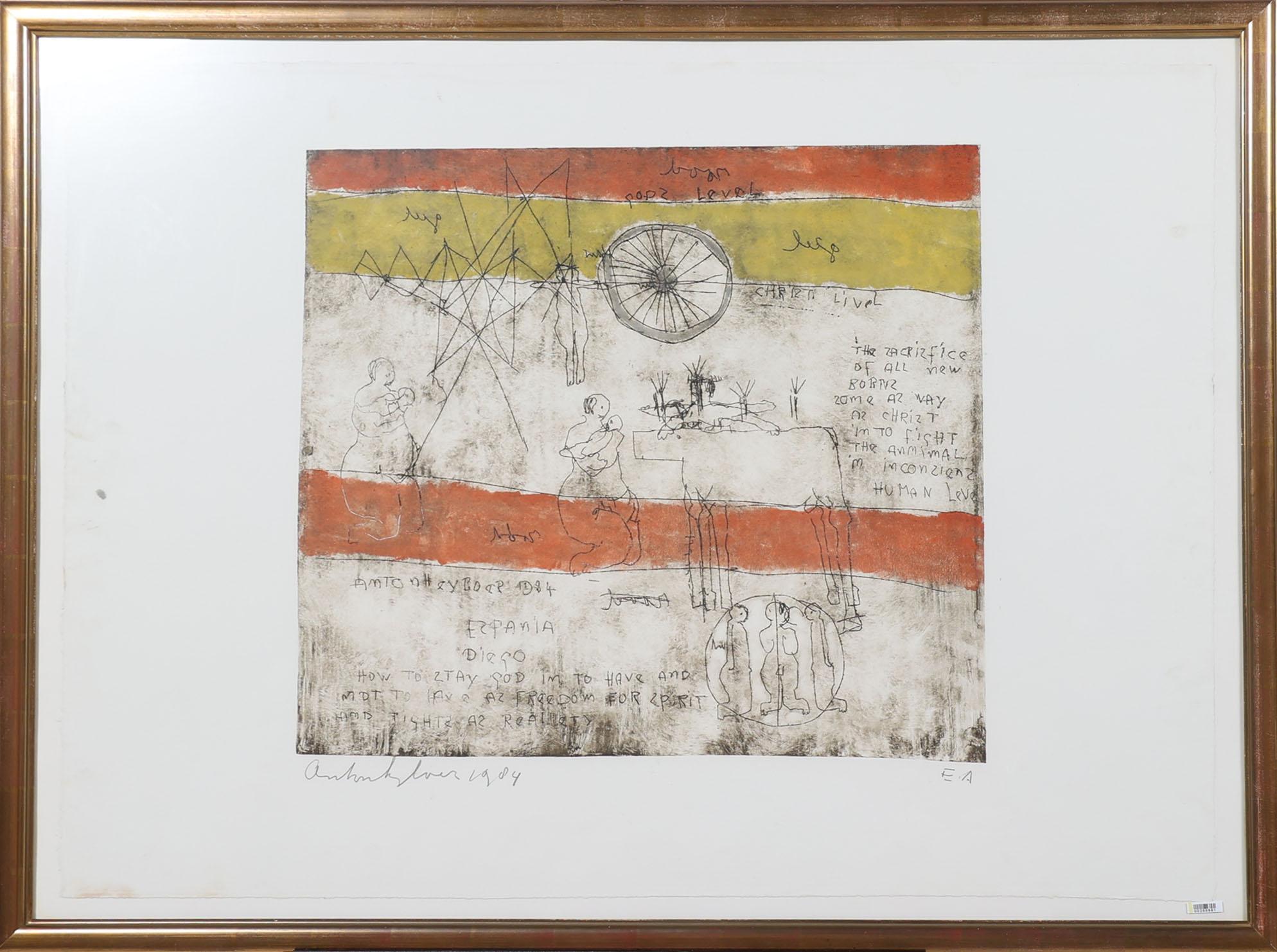 Anton Heijboer (1924-2005), "Espania Diego", ets, 78 x 108 cm, eigen druk gedrukt door Anton Heijboer in 1984, dit is de 1e afdruk van etsplaat, provenance particuliere collectie : aangekocht in 1994 voor fl.6000, Anton Heijboer winkel op de Prinsengracht 578 te Amsterdam