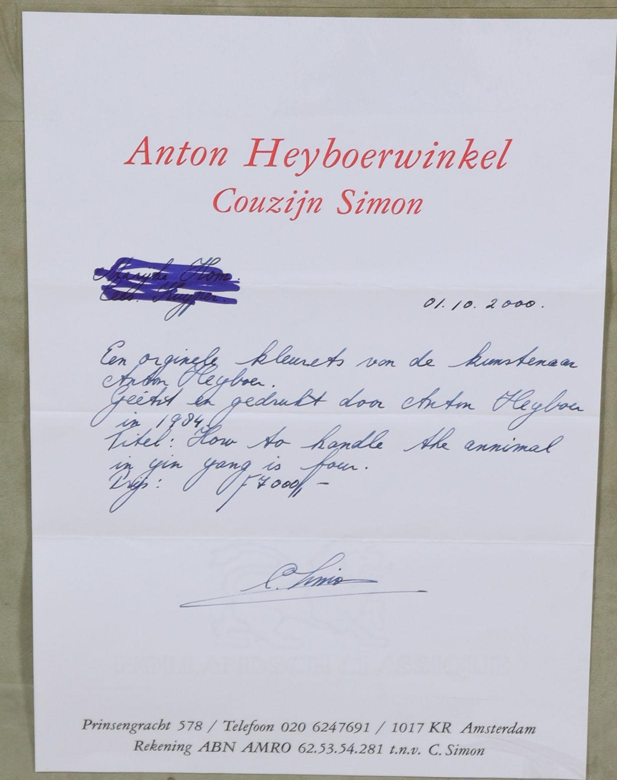 Anton Heijboer (1924-2005), "How to handle the animal in Yinjang is four", kleurenets, 108 x 78 cm., gedrukt door Anton Heijboer in 1984, provenance particuliere collectie : aangekocht in 2000 voor fl.7000, Anton Heijboer winkel op de Prinsengracht 578 te Amsterdam