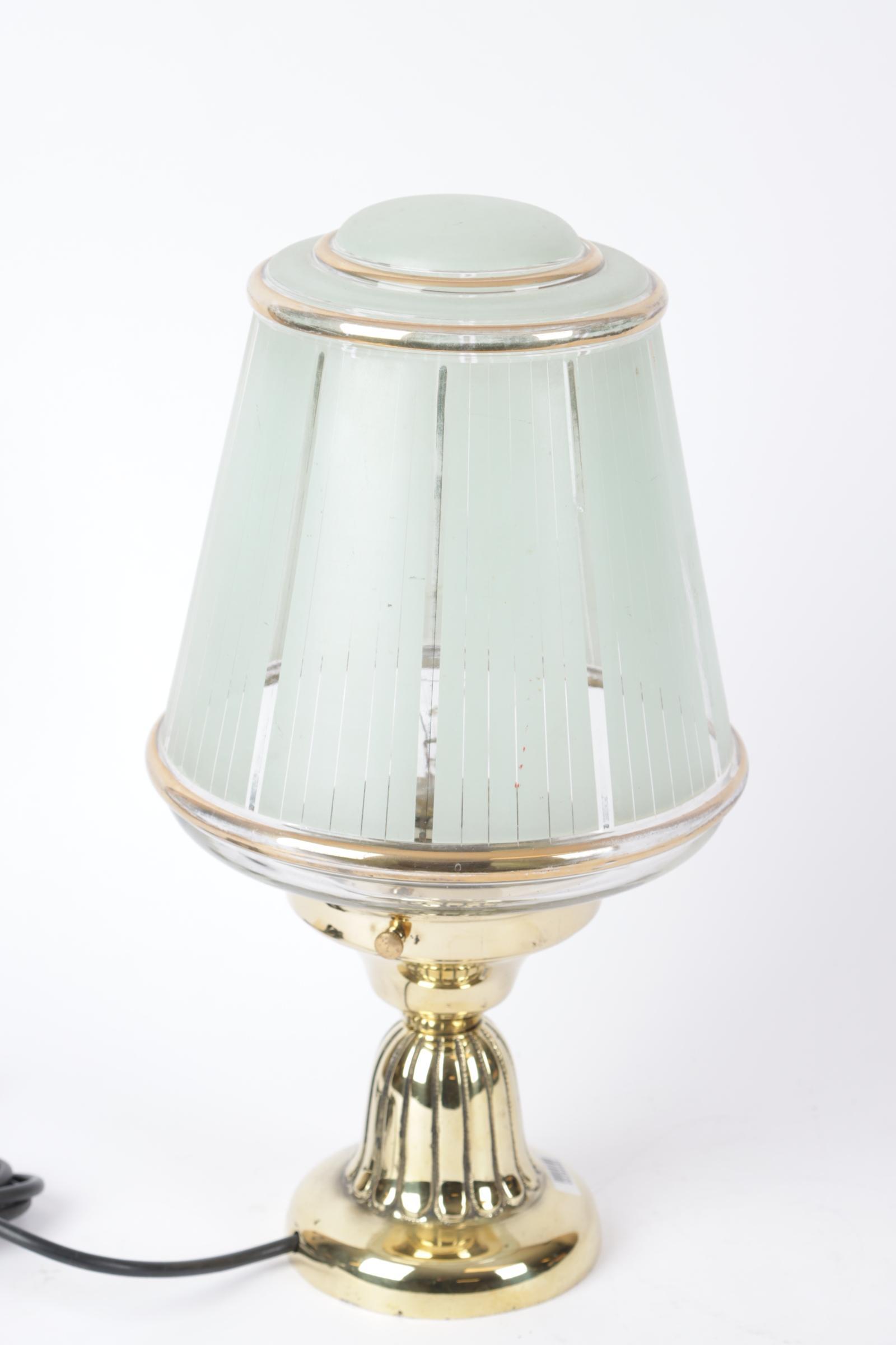 Art Deco tafellamp op bronzen voet met glazen kap