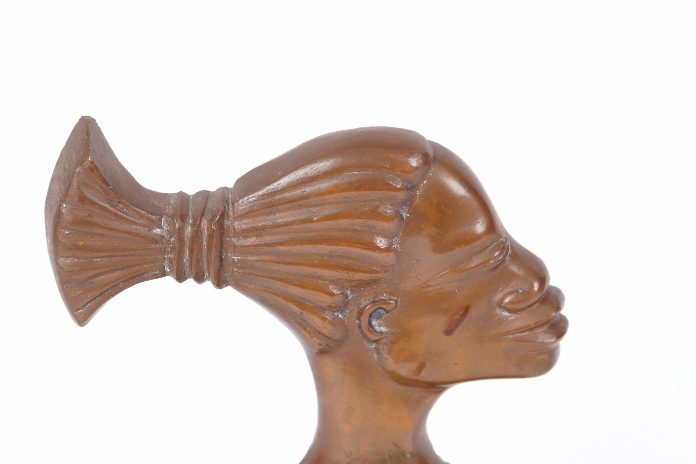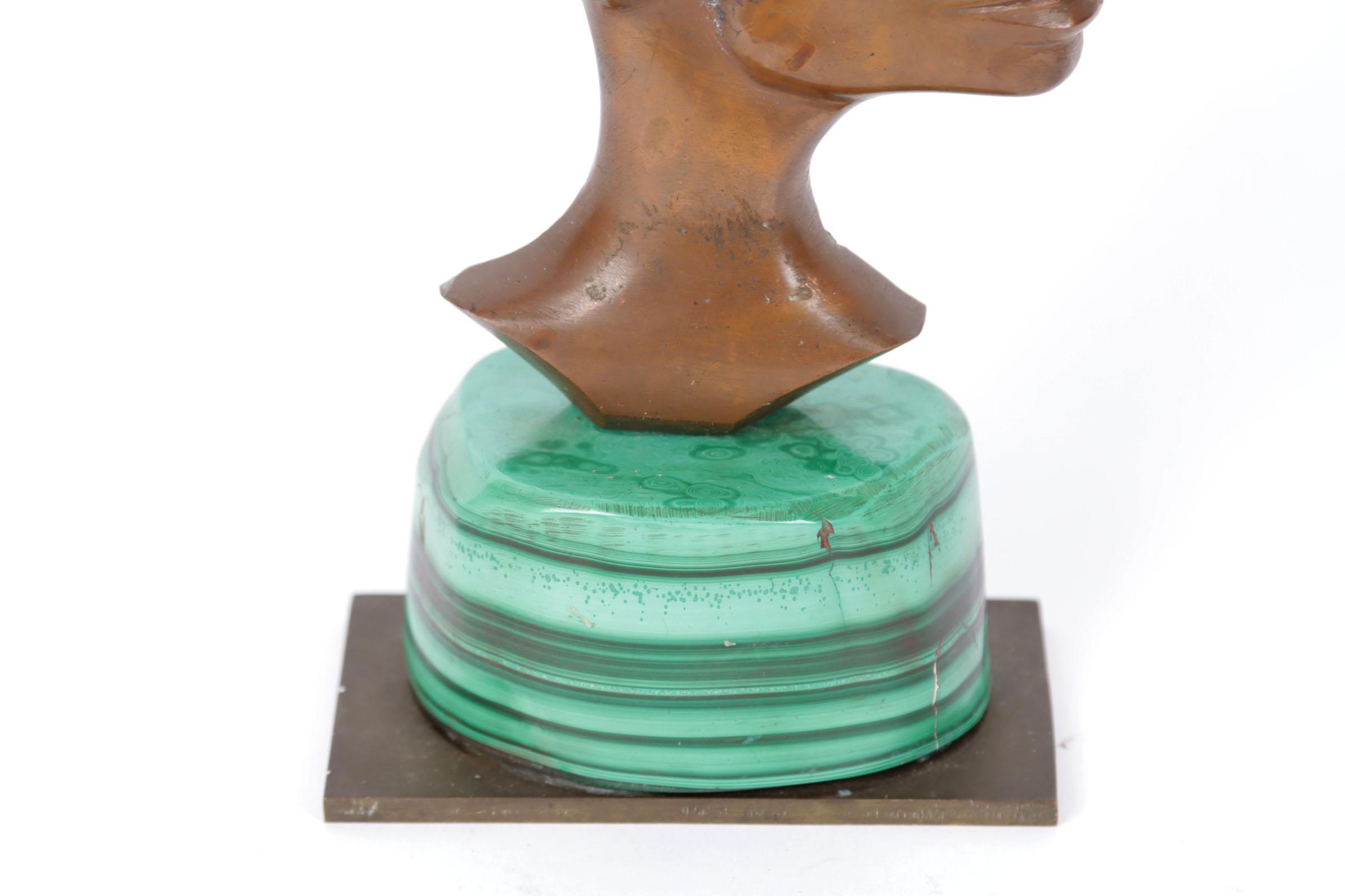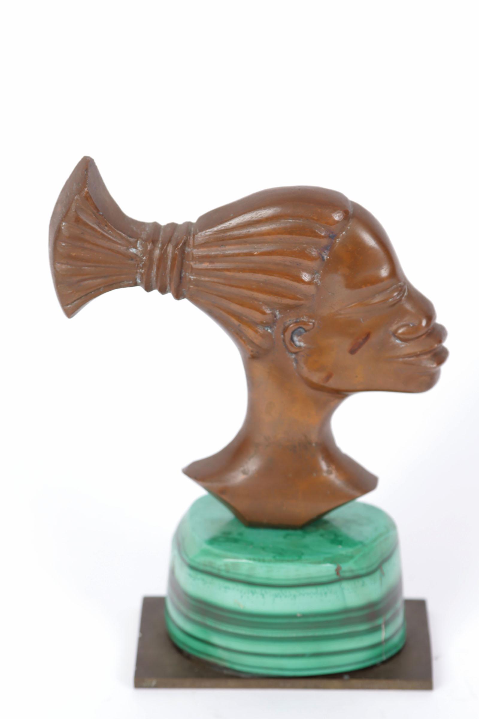 Bronzen sculptuur van een Afrikaans figuur op Malachiet voetstuk, h.