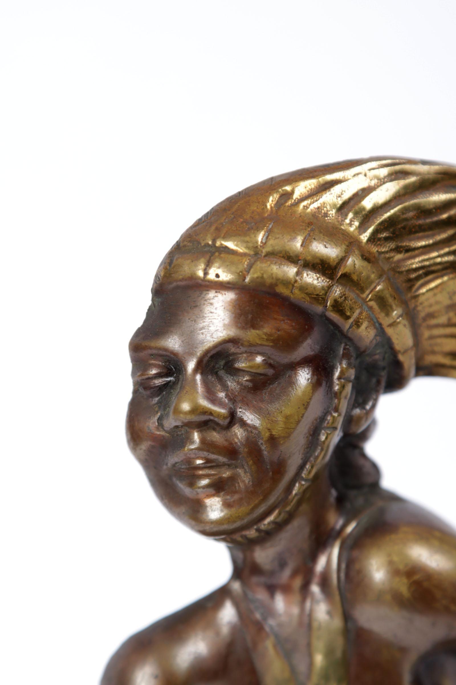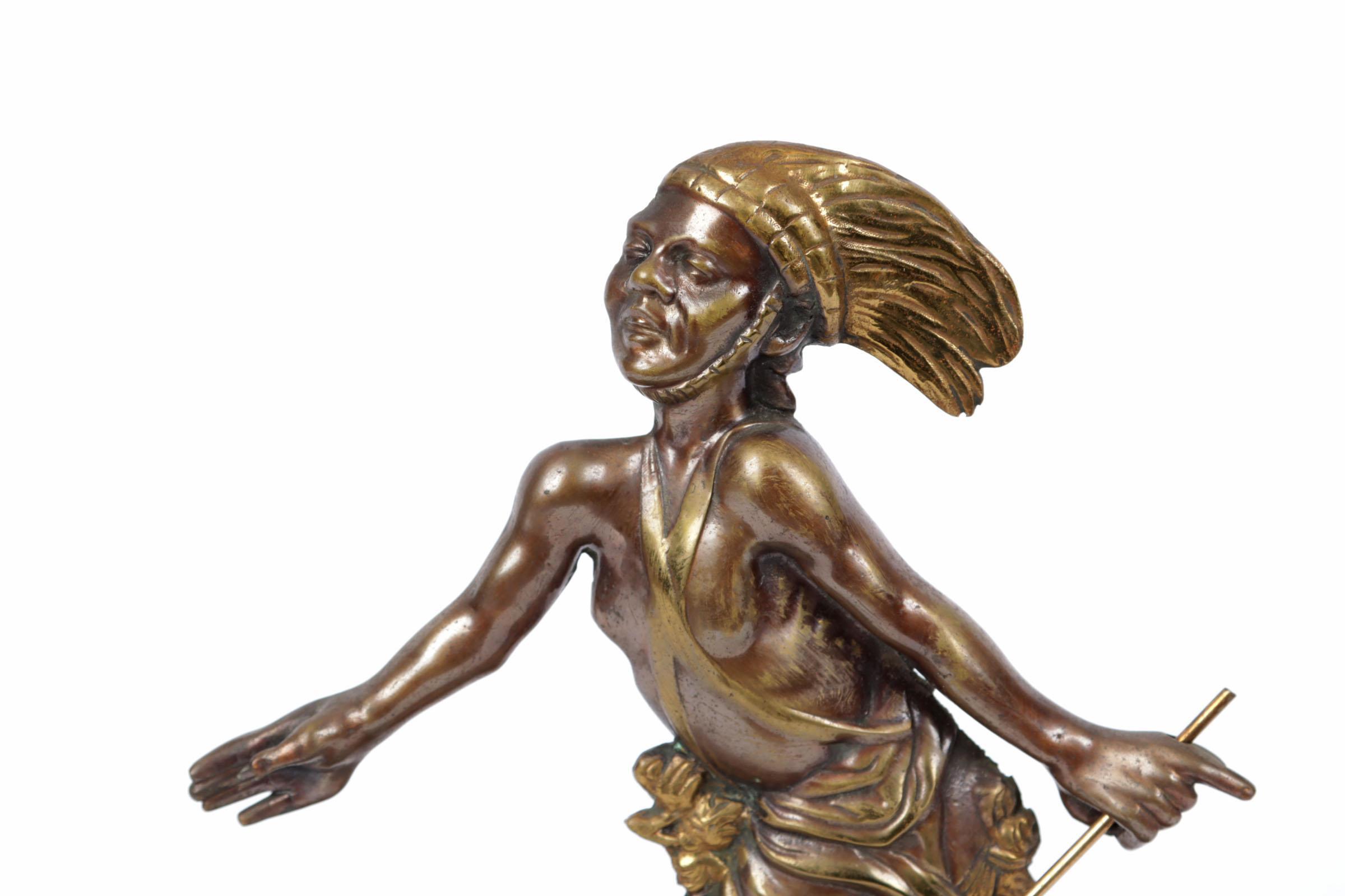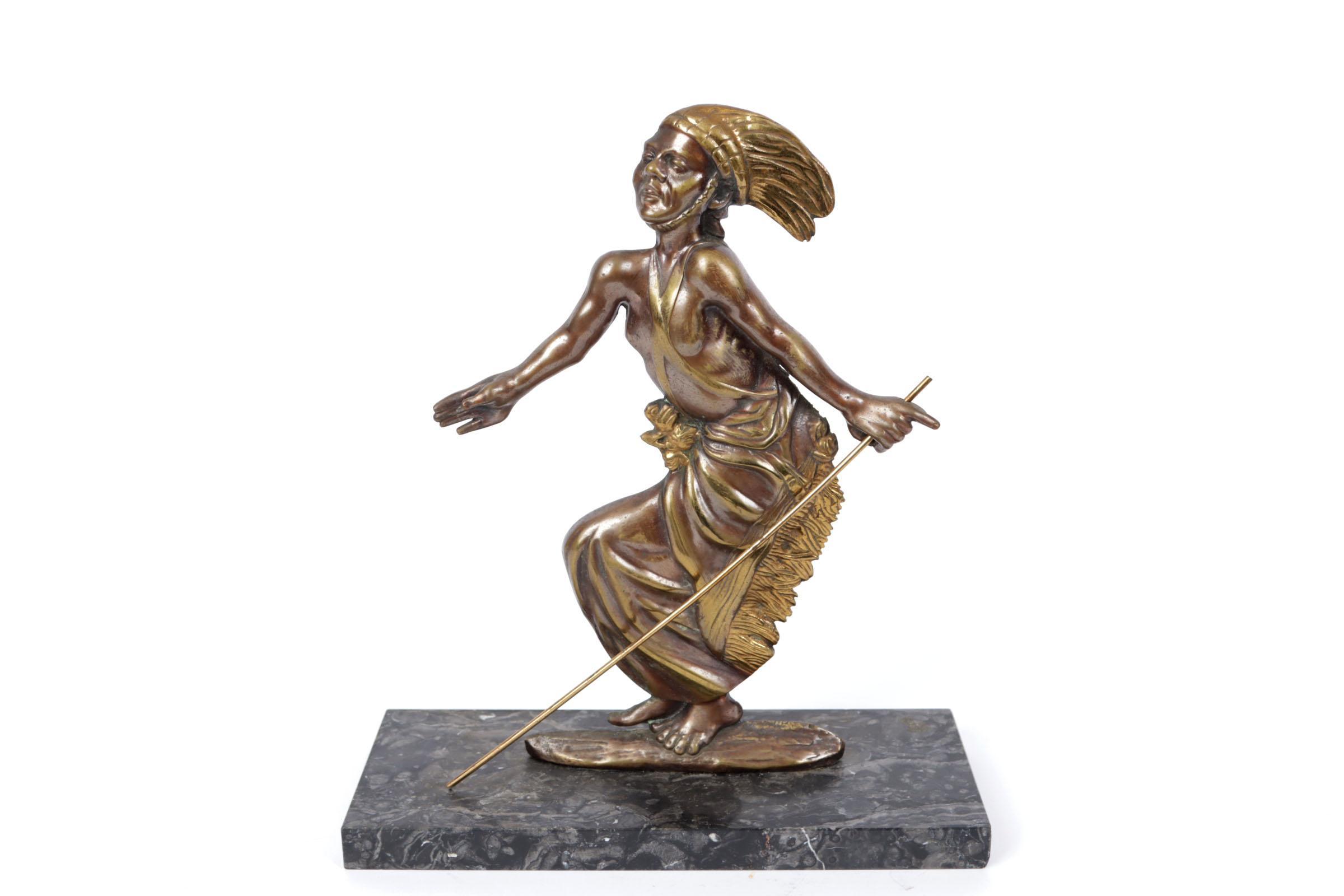 Sculptuur van een indiaan op marmer voetstuk, h.