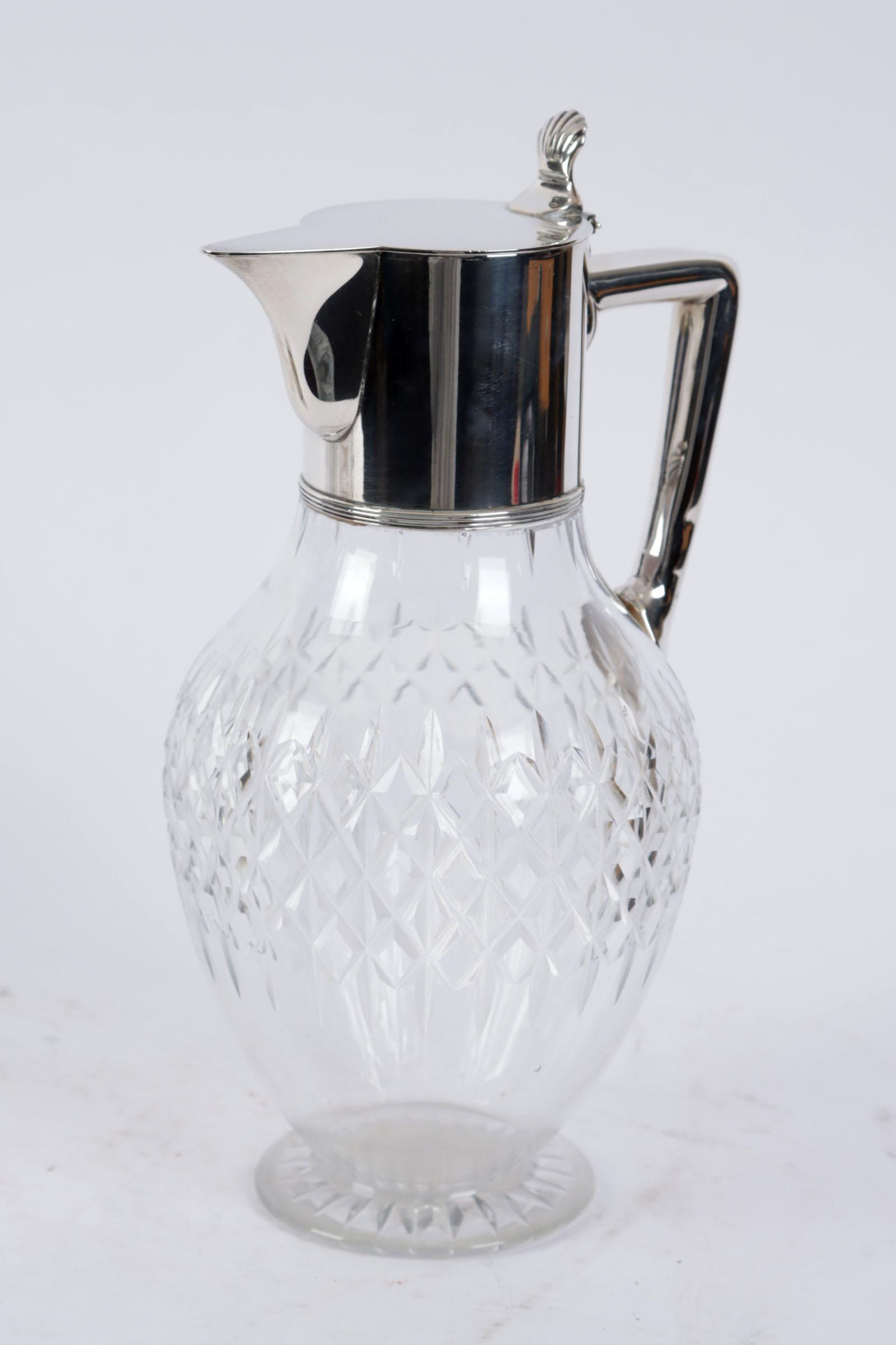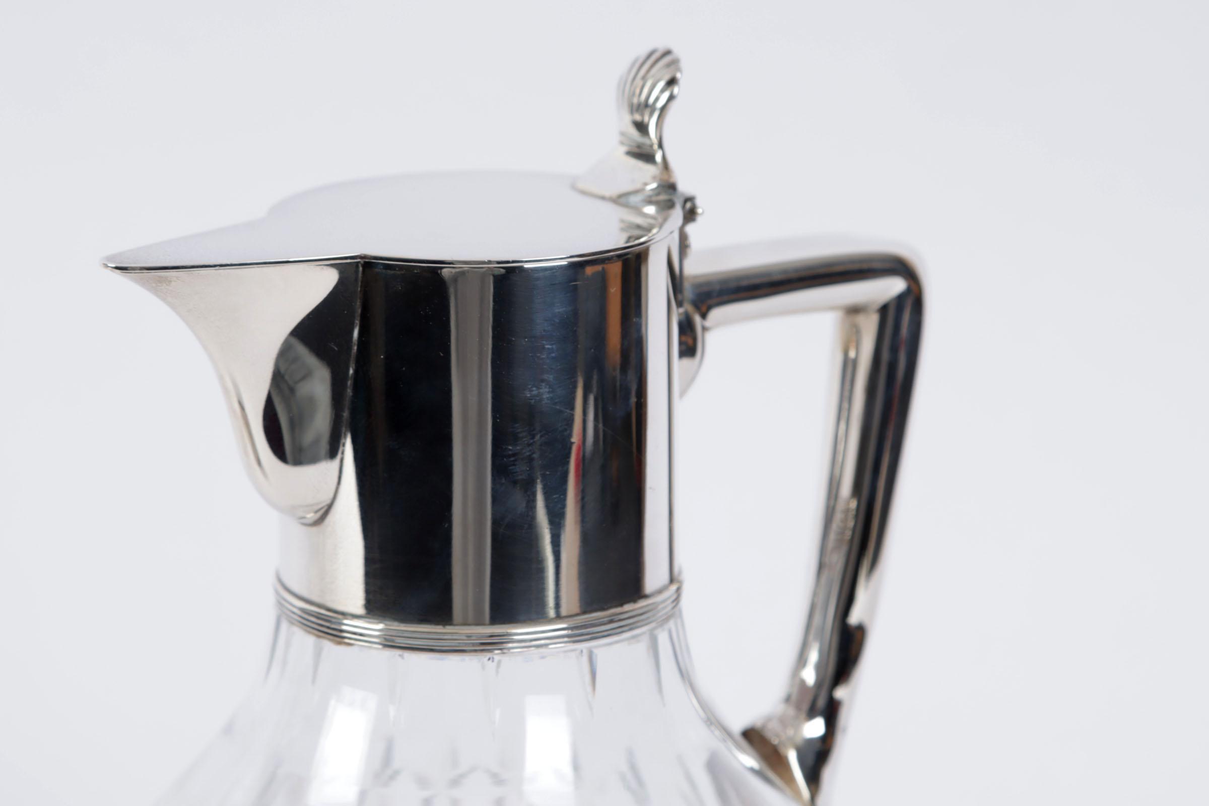 Kristallen schenkkan met 1e gehalte zilveren montuur