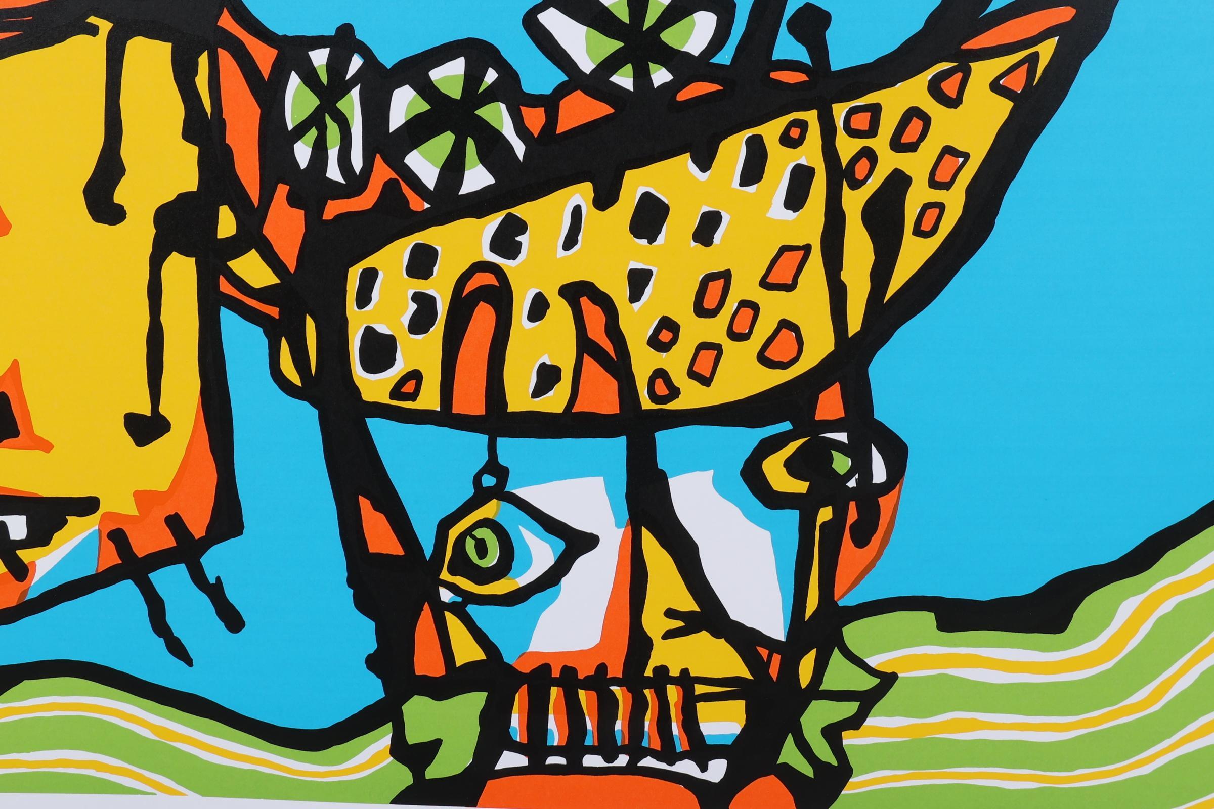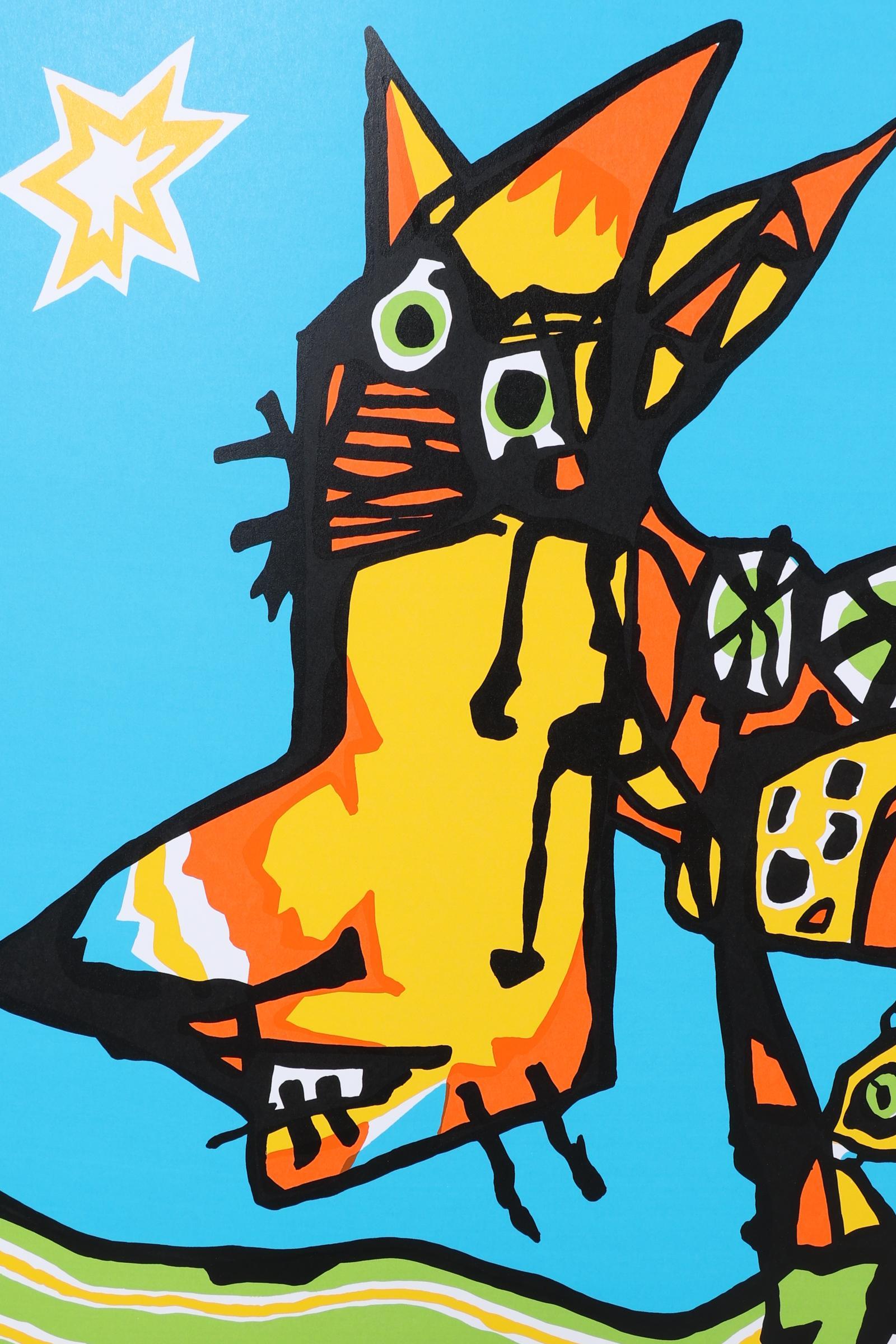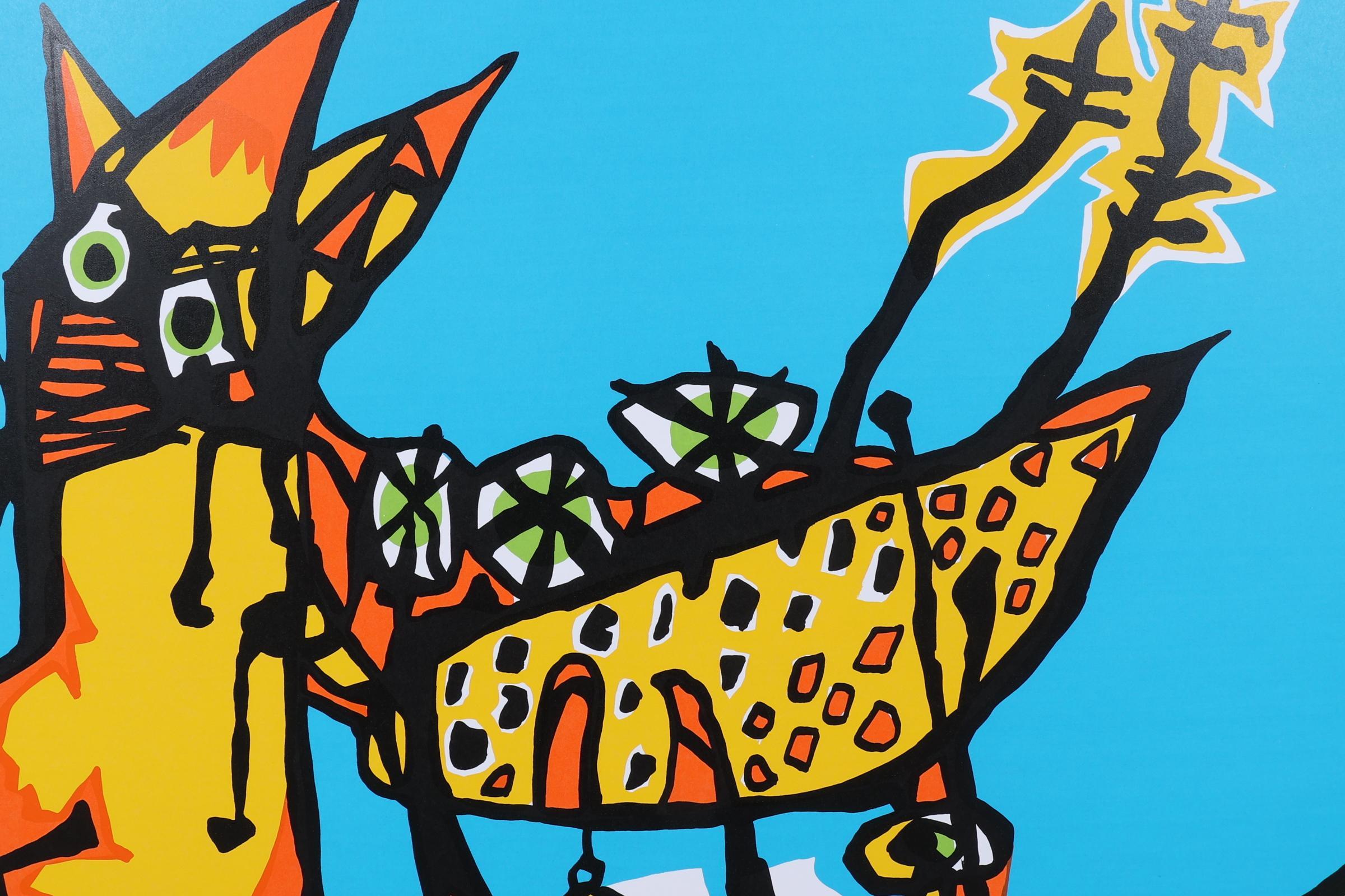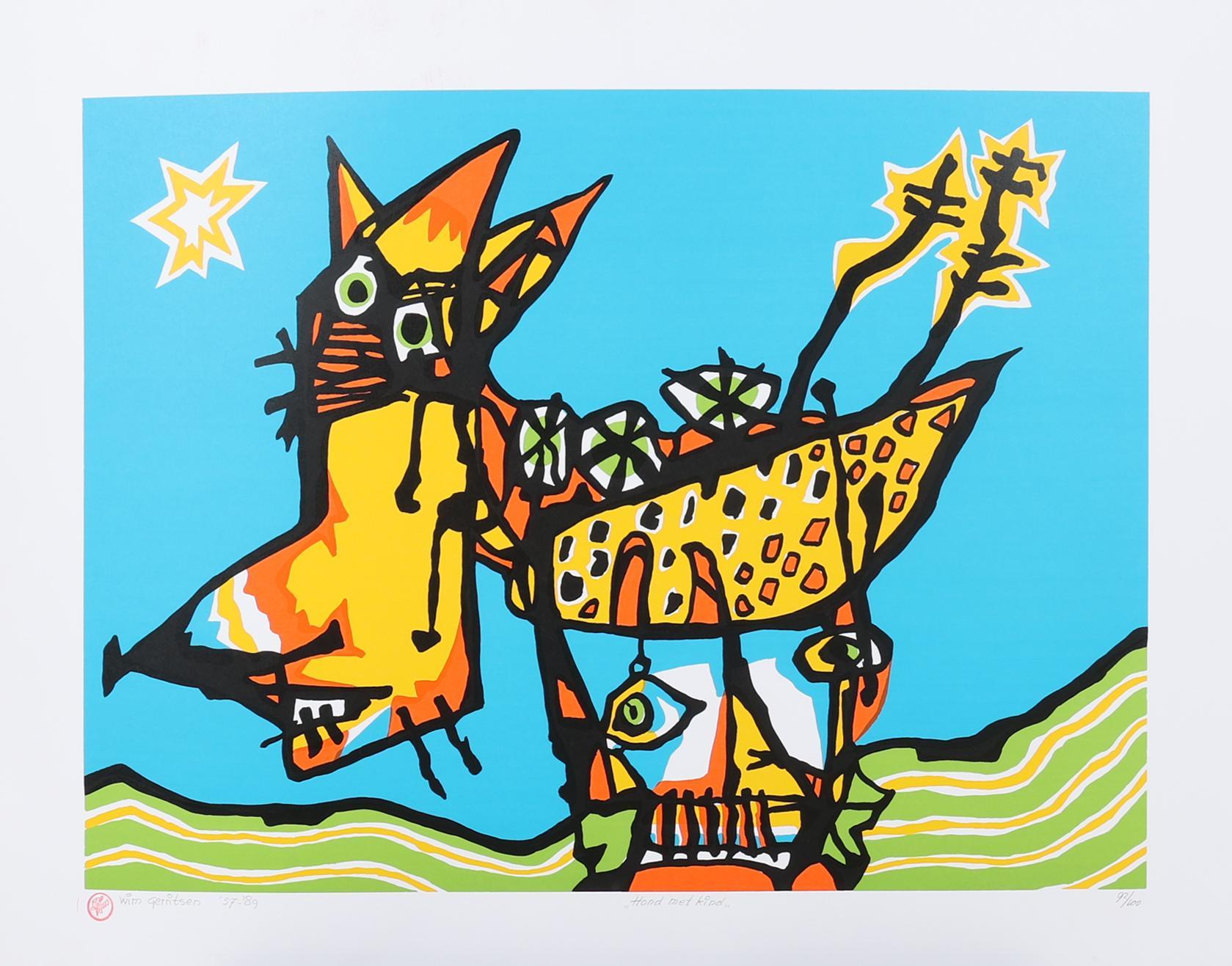 Wim Gerritsen, Hond met kind, handgesigneerde lithografie, nr.92/100, 91 x 70 cm. (zonder lijst)