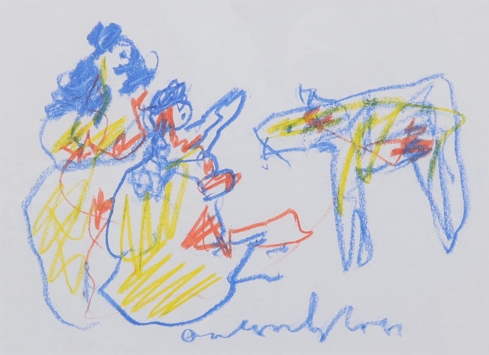Anton Heyboer (1924-2005), Compositie met figuren, krijttekening op papier, 35 x 45,5 cm.
