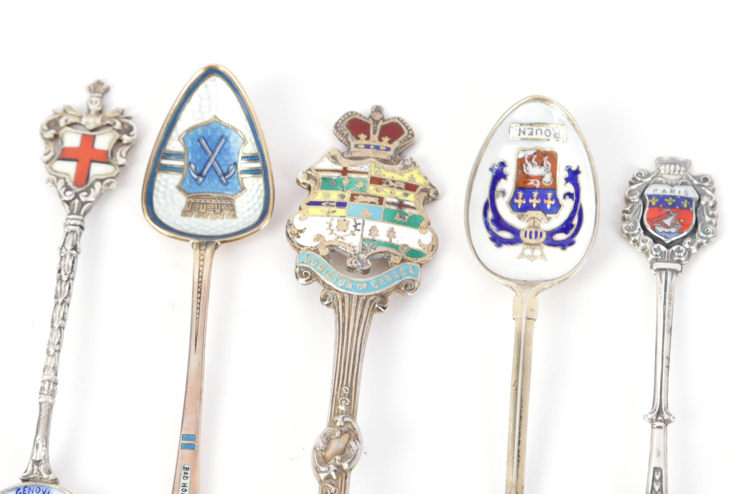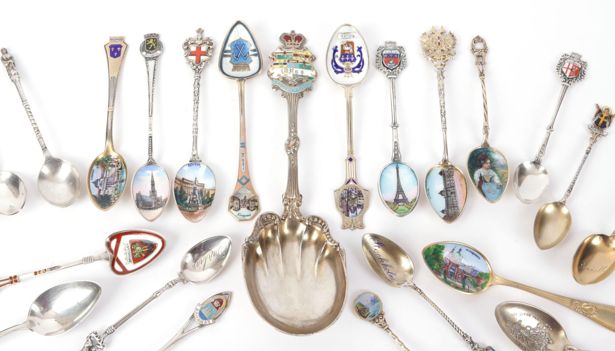 Koop diverse plated en zilveren souvenir theelepeltjes met afbeeldingen van steden en wapenschilden