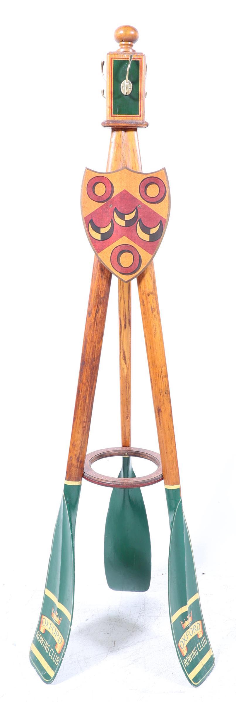Staande kapstok vervaardigd uit 3 roeispanen, Oxford rowing club, h.202 cm.