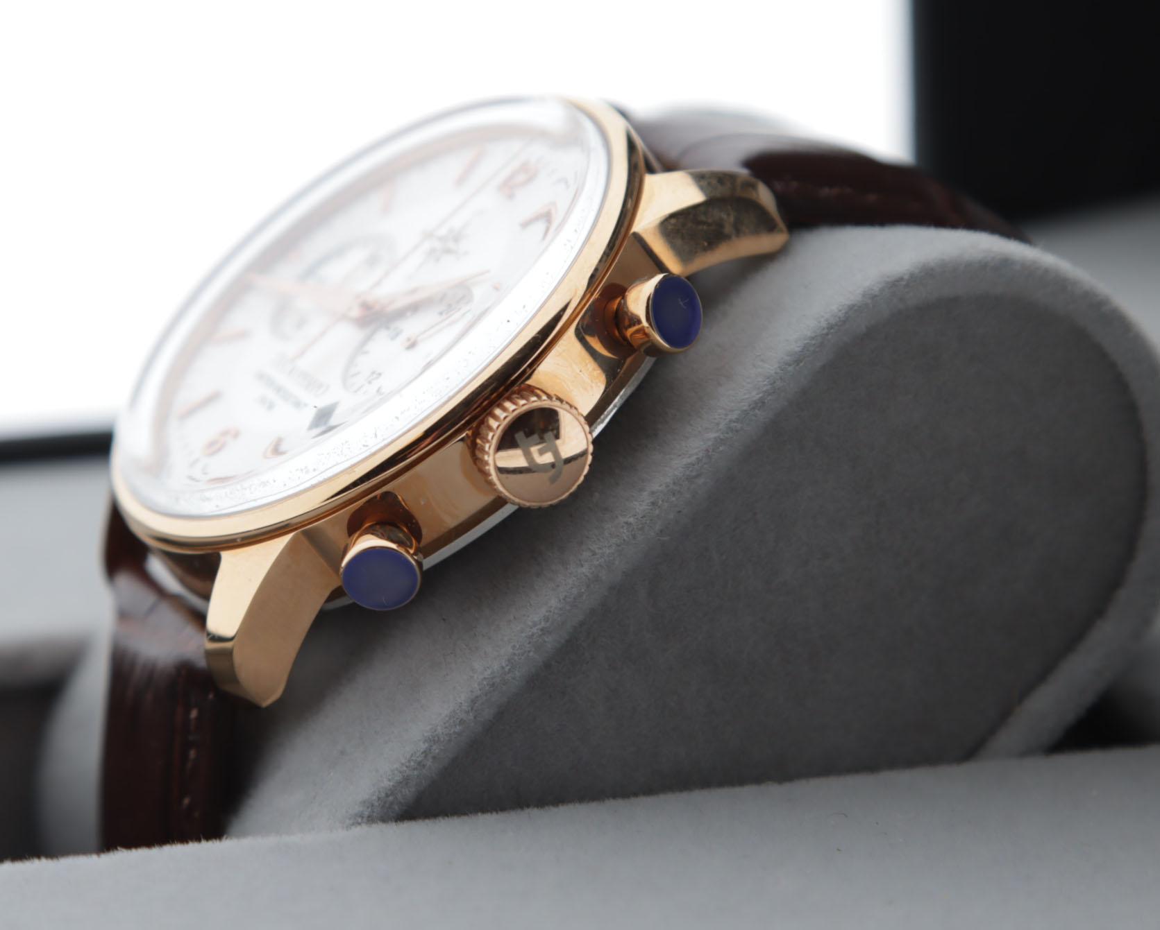 Tecnotempo, Italiaans herenpolshorloge, chronograaf, met datum aanduiding, originele lerenband en doos.
