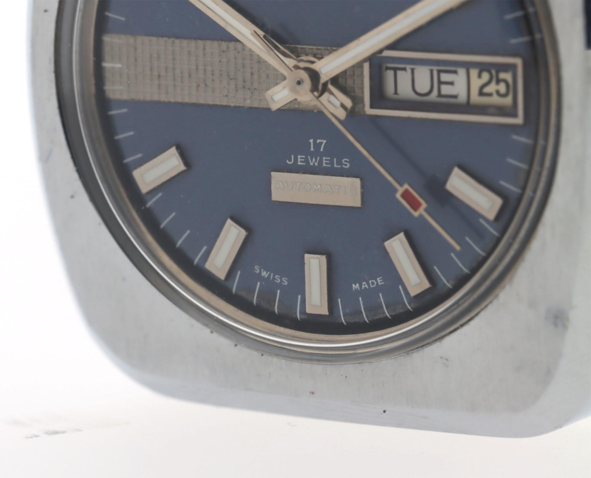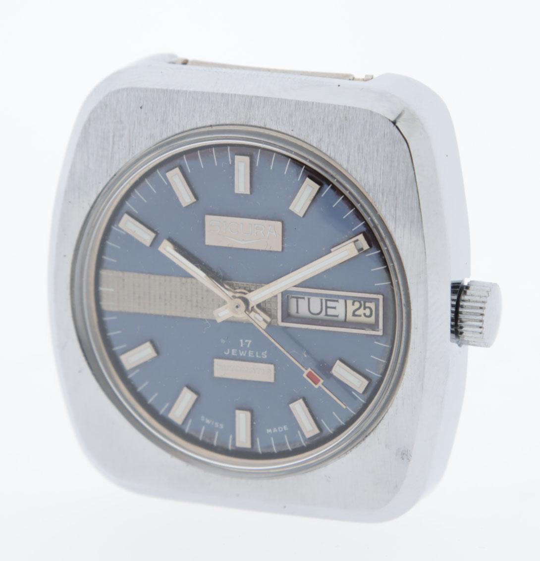 Sicura Zwitsers polshorloge, day-date, 17 jewels, automatisch, jaren 70