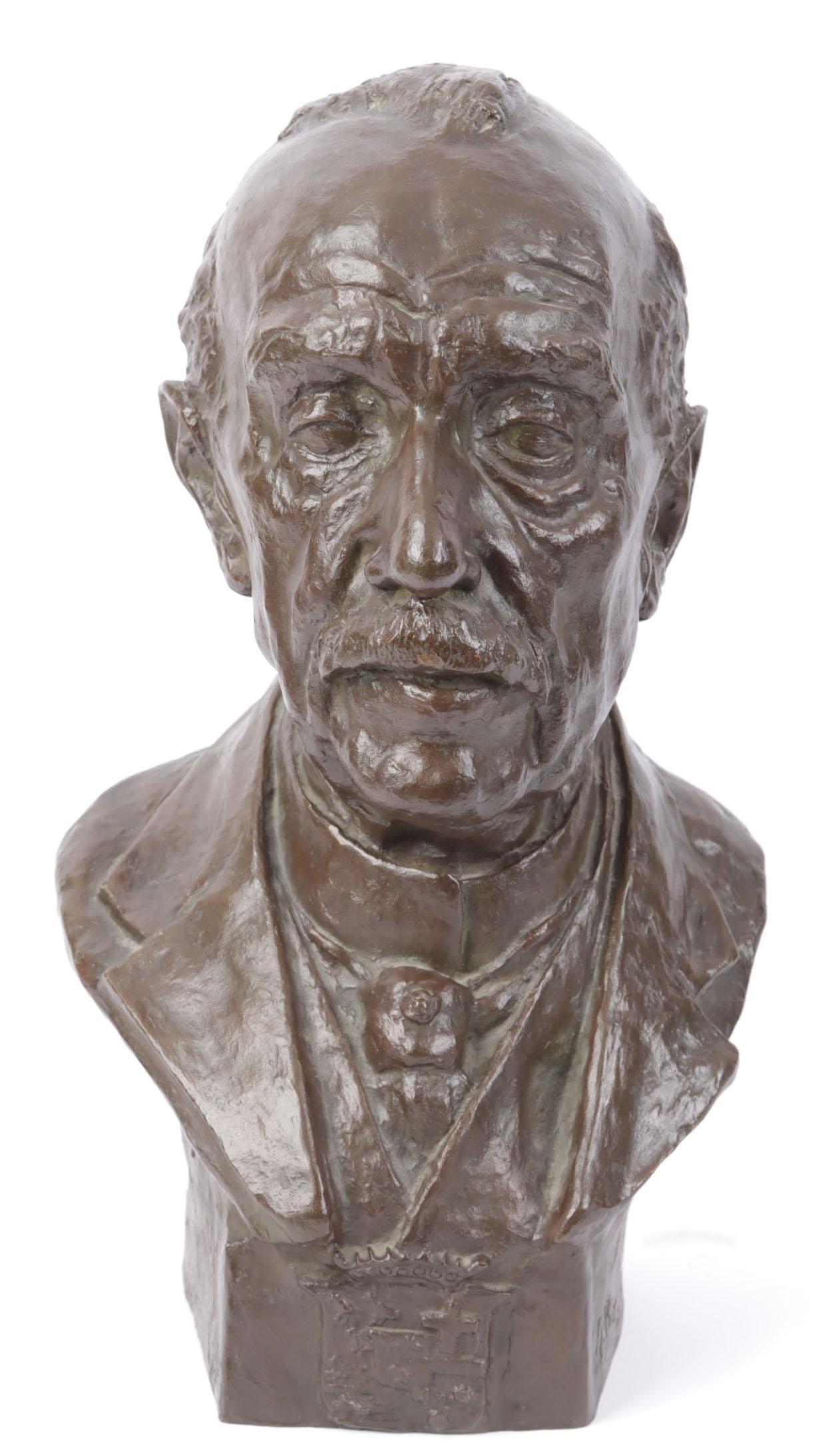 Francina Petronella Josphina (Nel) Bakema (1902-1992), bronzen buste van een heer, gesigneerd B. Bakema l.o., 46 x 23 x 27 cm.