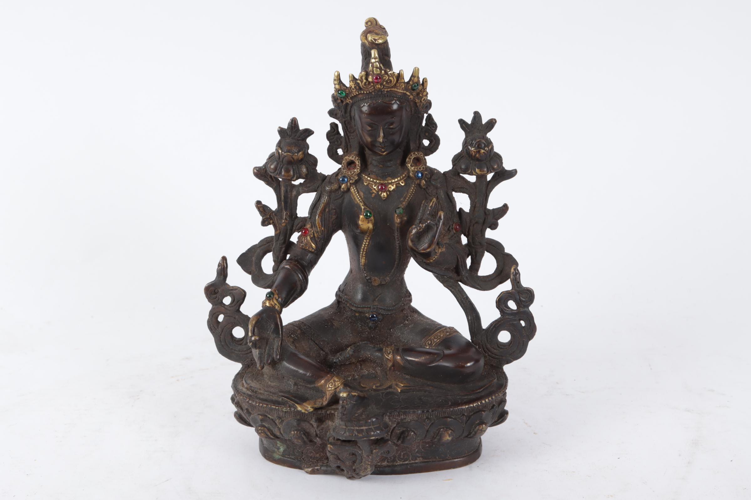 Bronzen met steentjes ingelegd Boeddha beeld, h.21 cm.