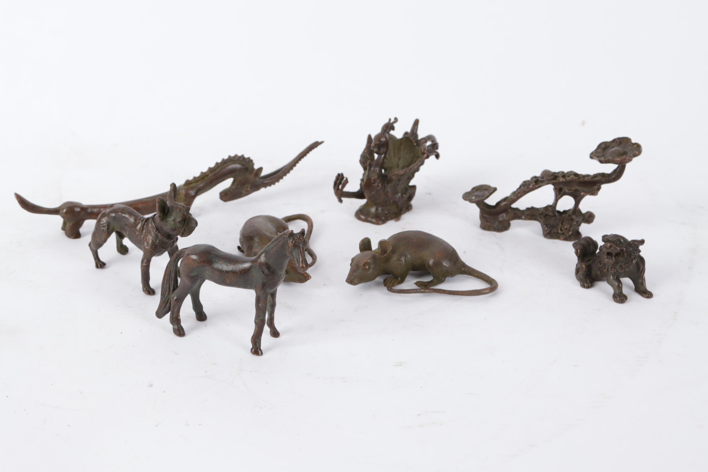 Koop van 8 diverse bronzen miniatuur dierfiguren