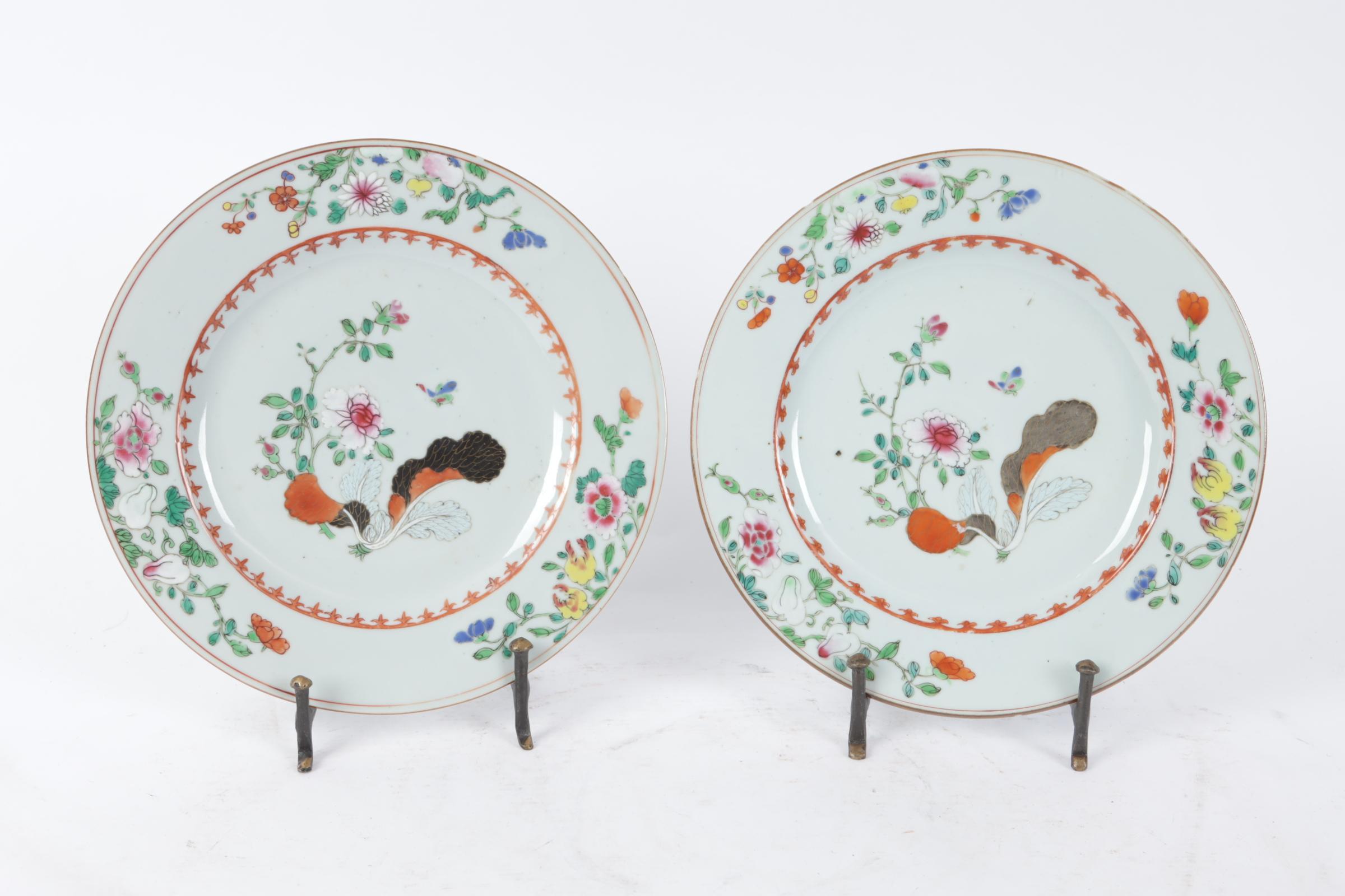 Stel Chinees porseleinen Famille rose borden, diam.23,5 cm.