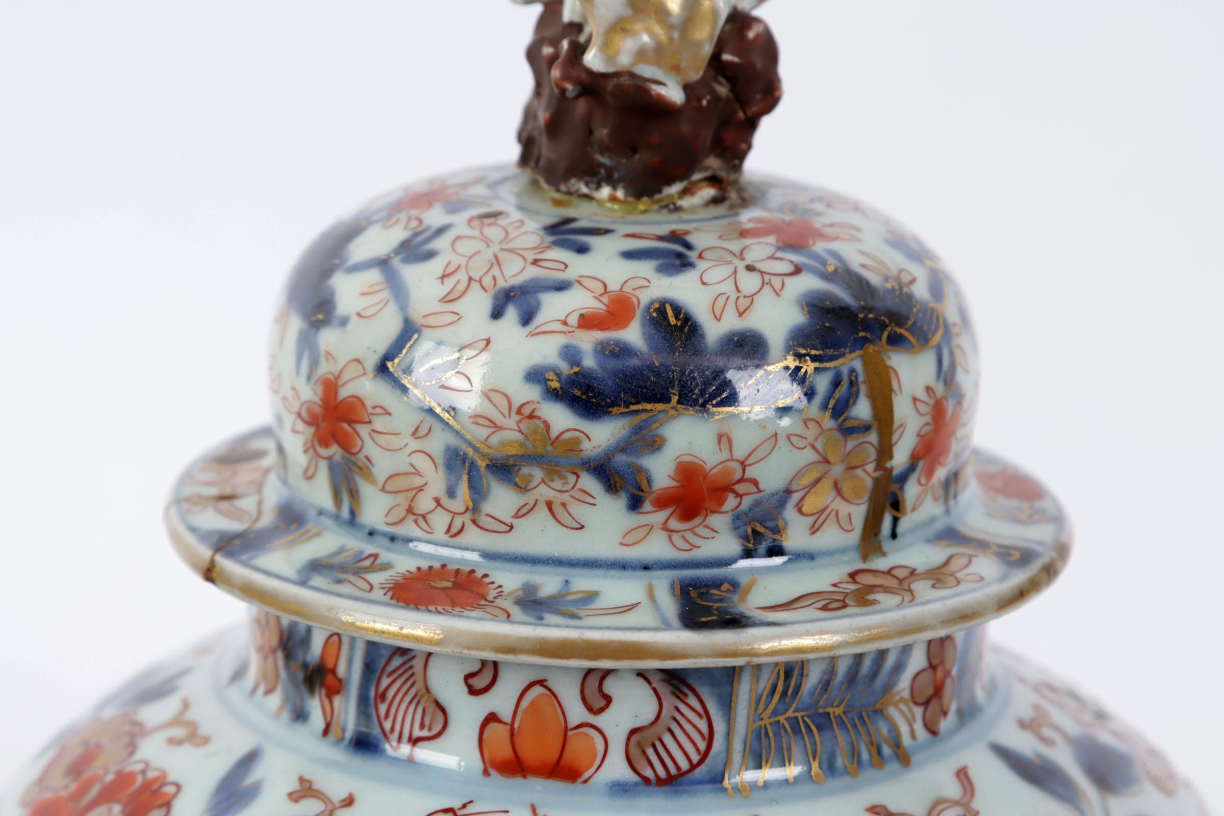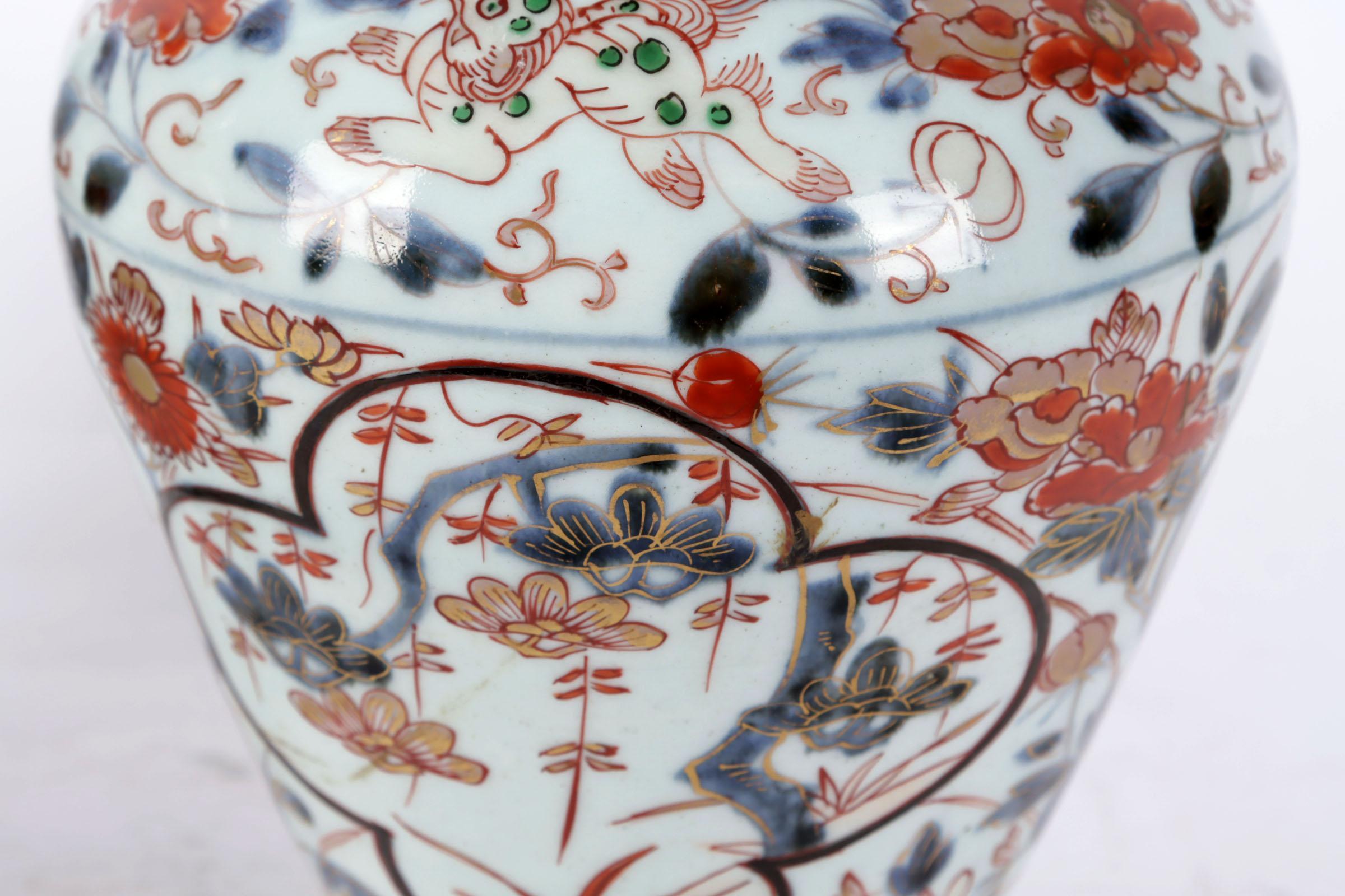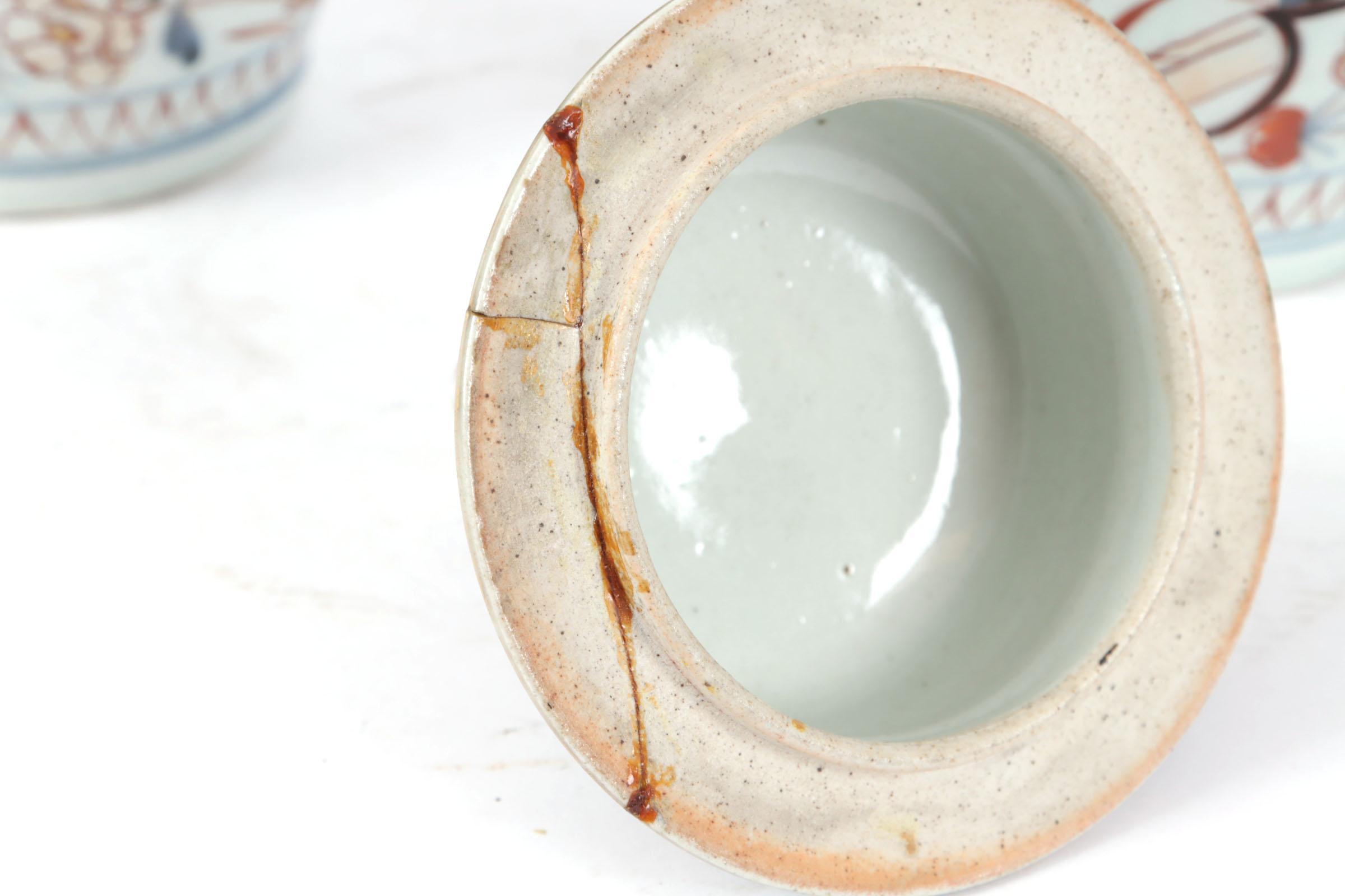 Stel Japanse Arita porseleinen dekselpotten, h.34 cm. (deksel gelijmd)