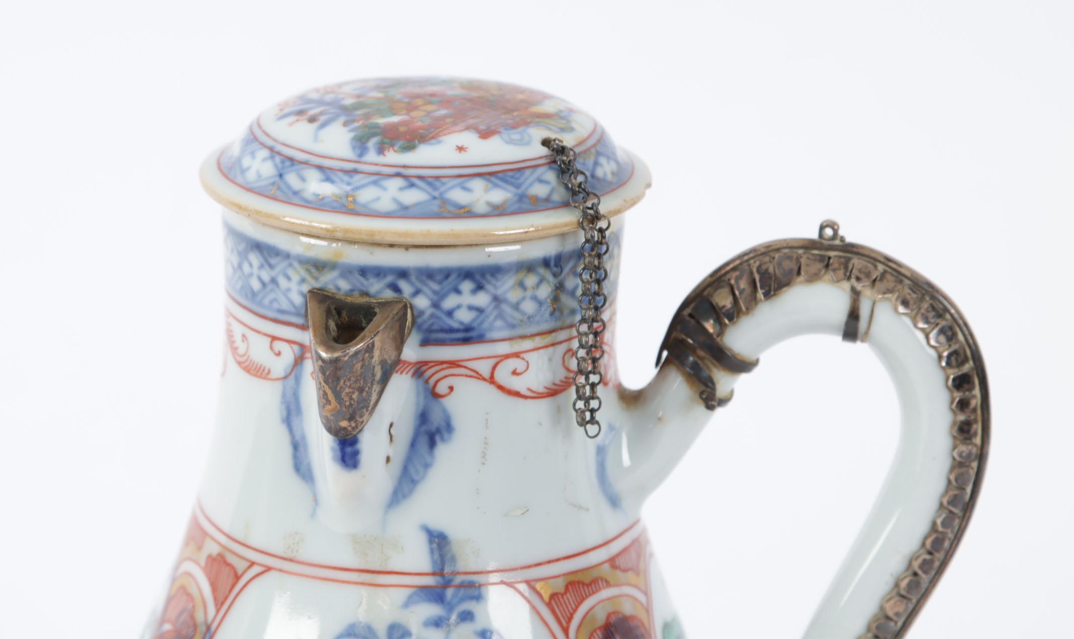 Amsterdams Bont porseleinen schenkkan met zilveren montuur