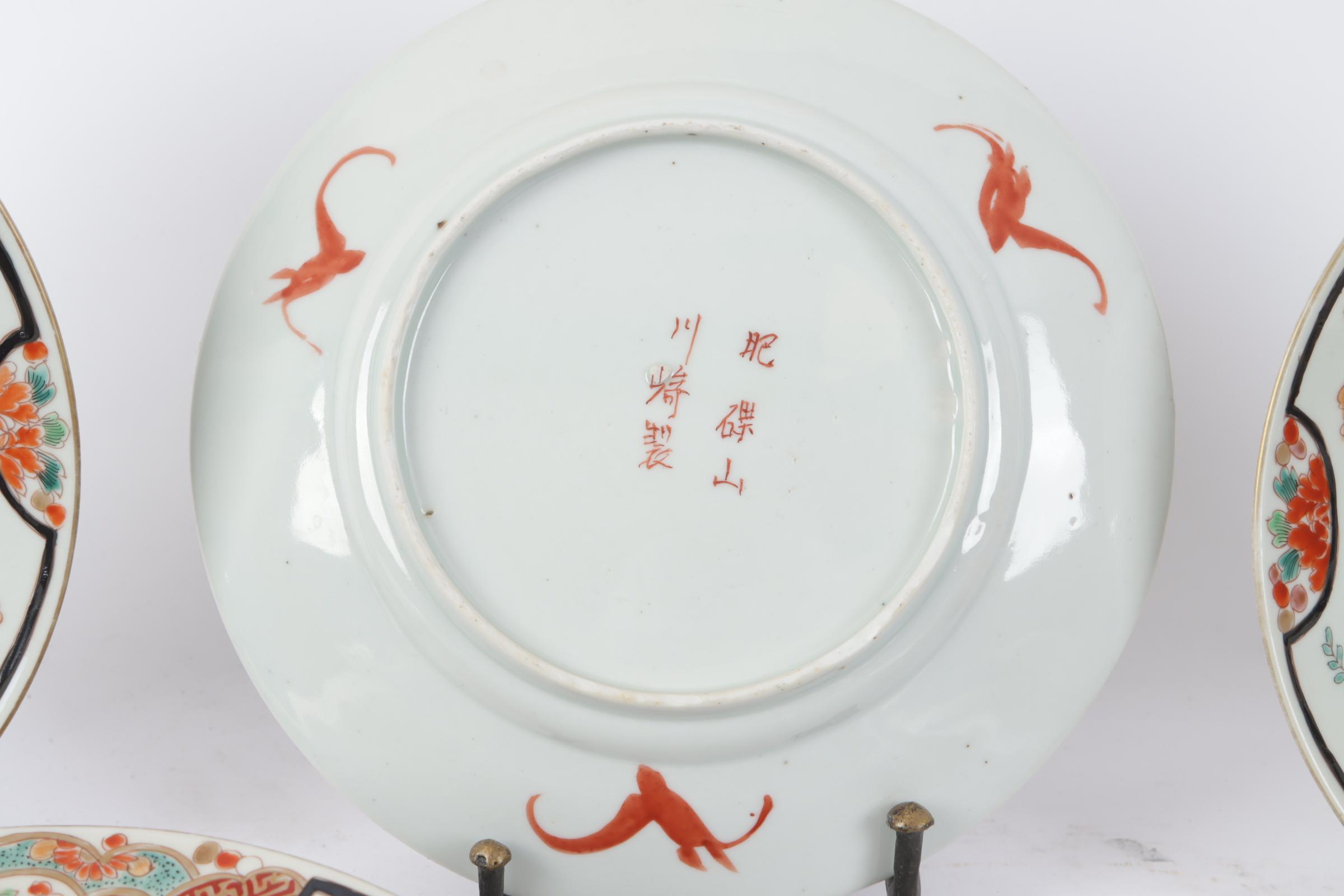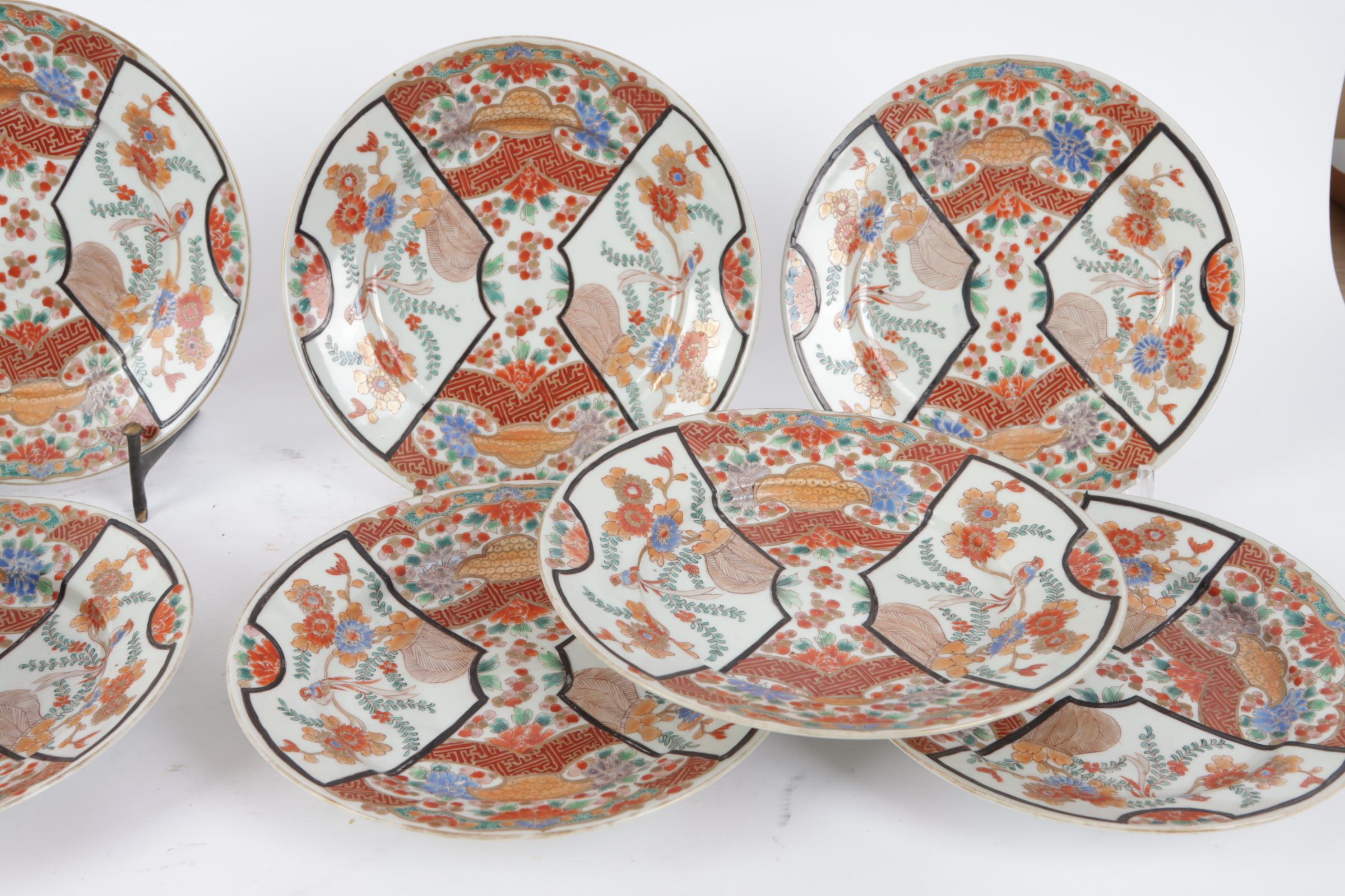 10 Diverse Japans porseleinen gekleurde borden, diam.22 cm.