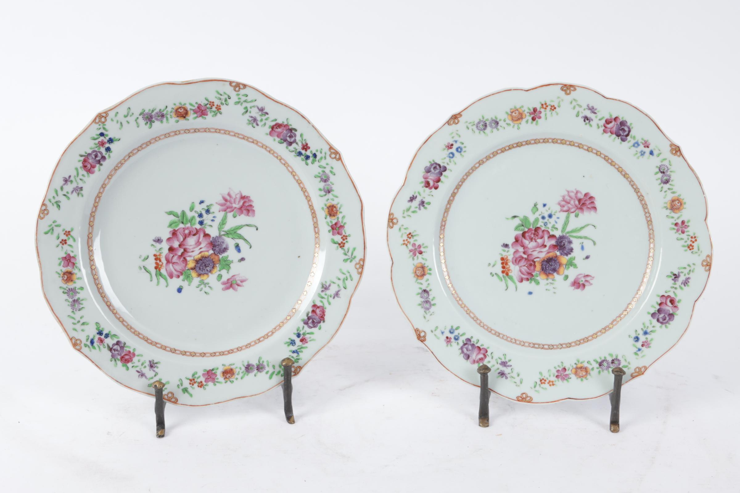 Stel geschulpt Chinees porseleinen famille rose borden, diam.23 cm.