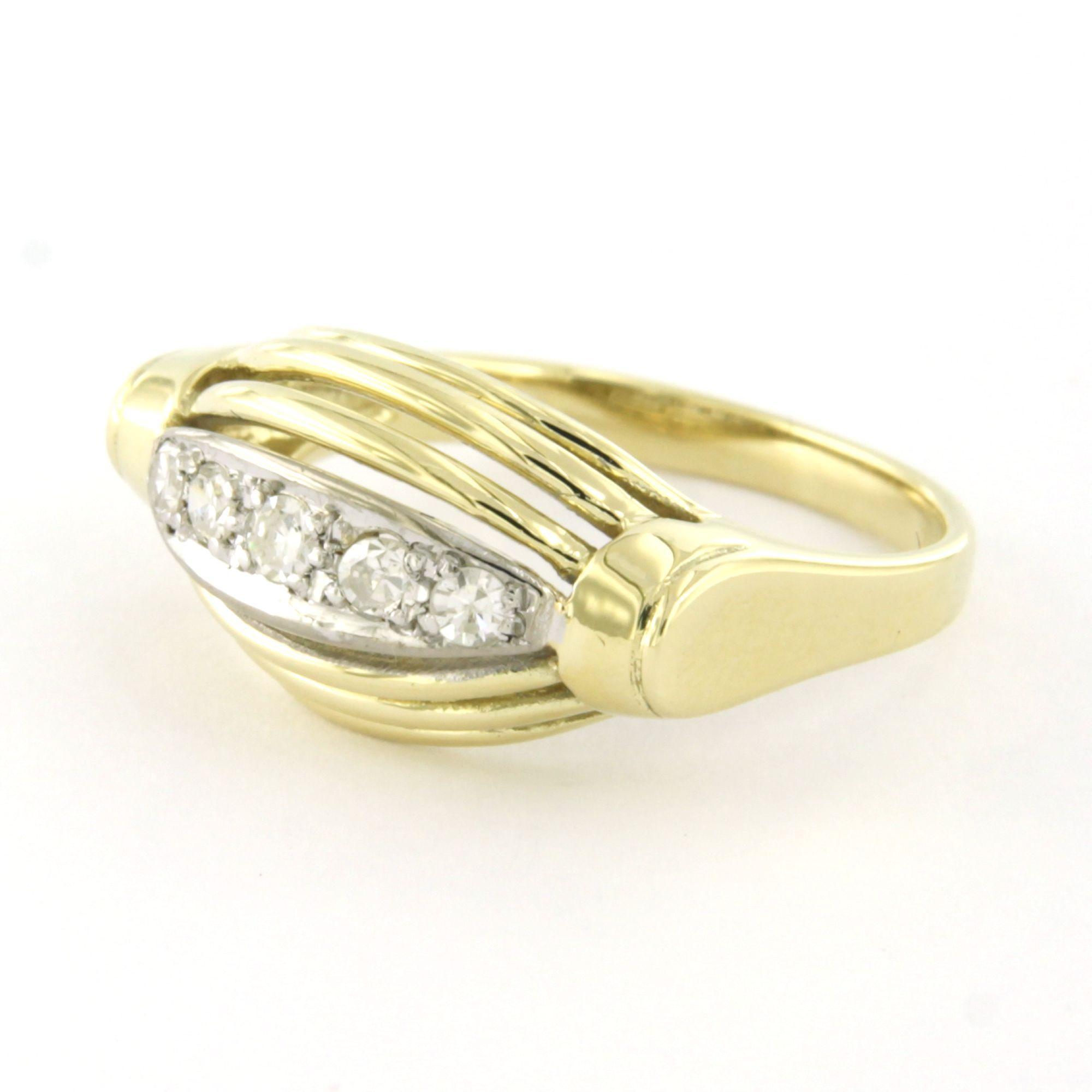 14 Kt. bicolour gouden ring bezet met single cut geslepen diamanten totaal 0.15ct - ringmaat 16.25(51)