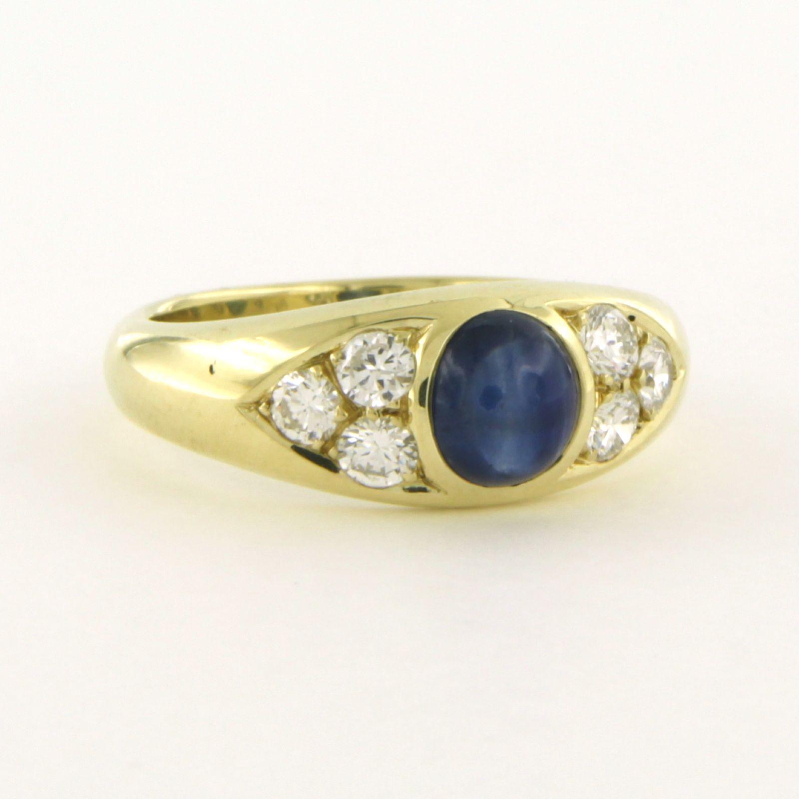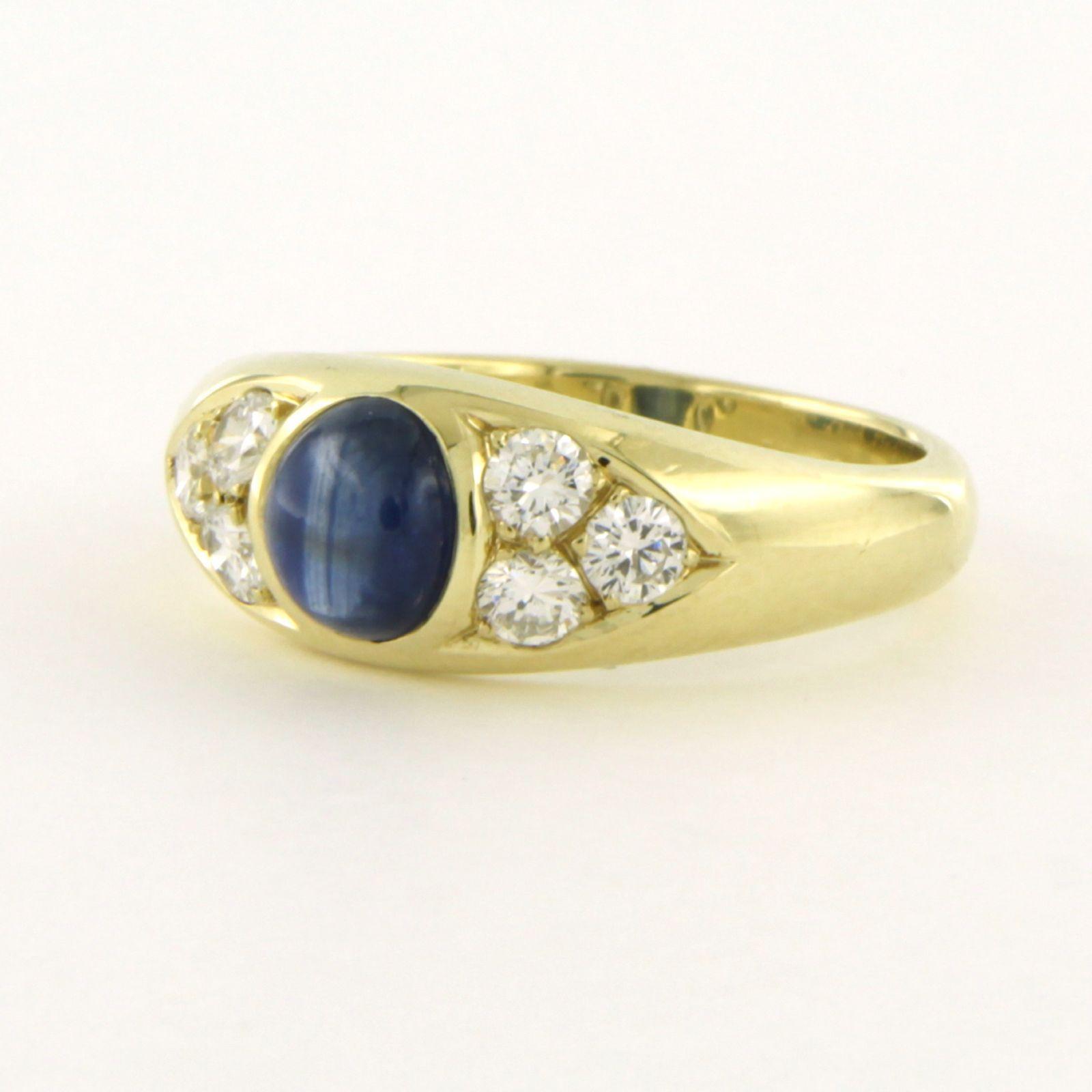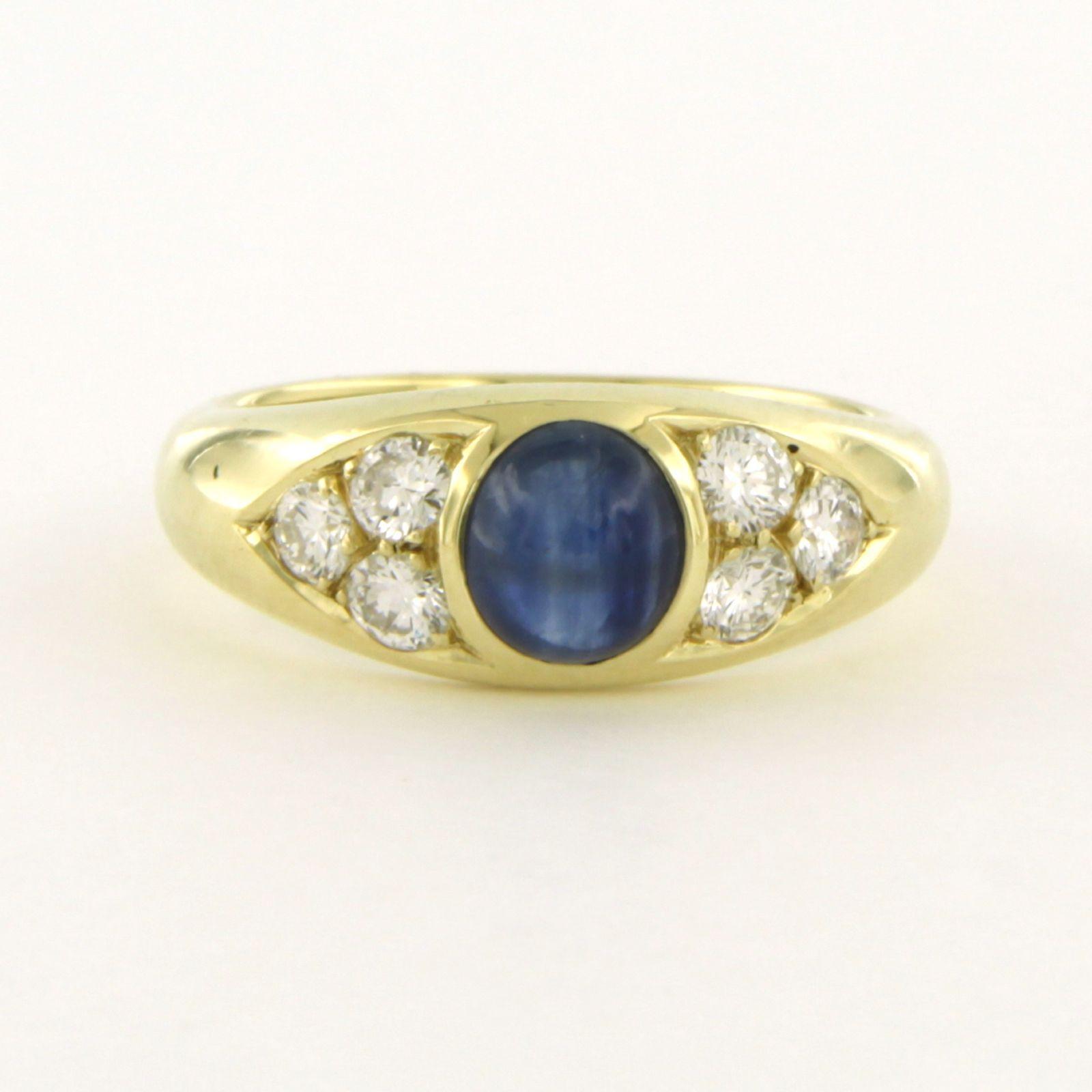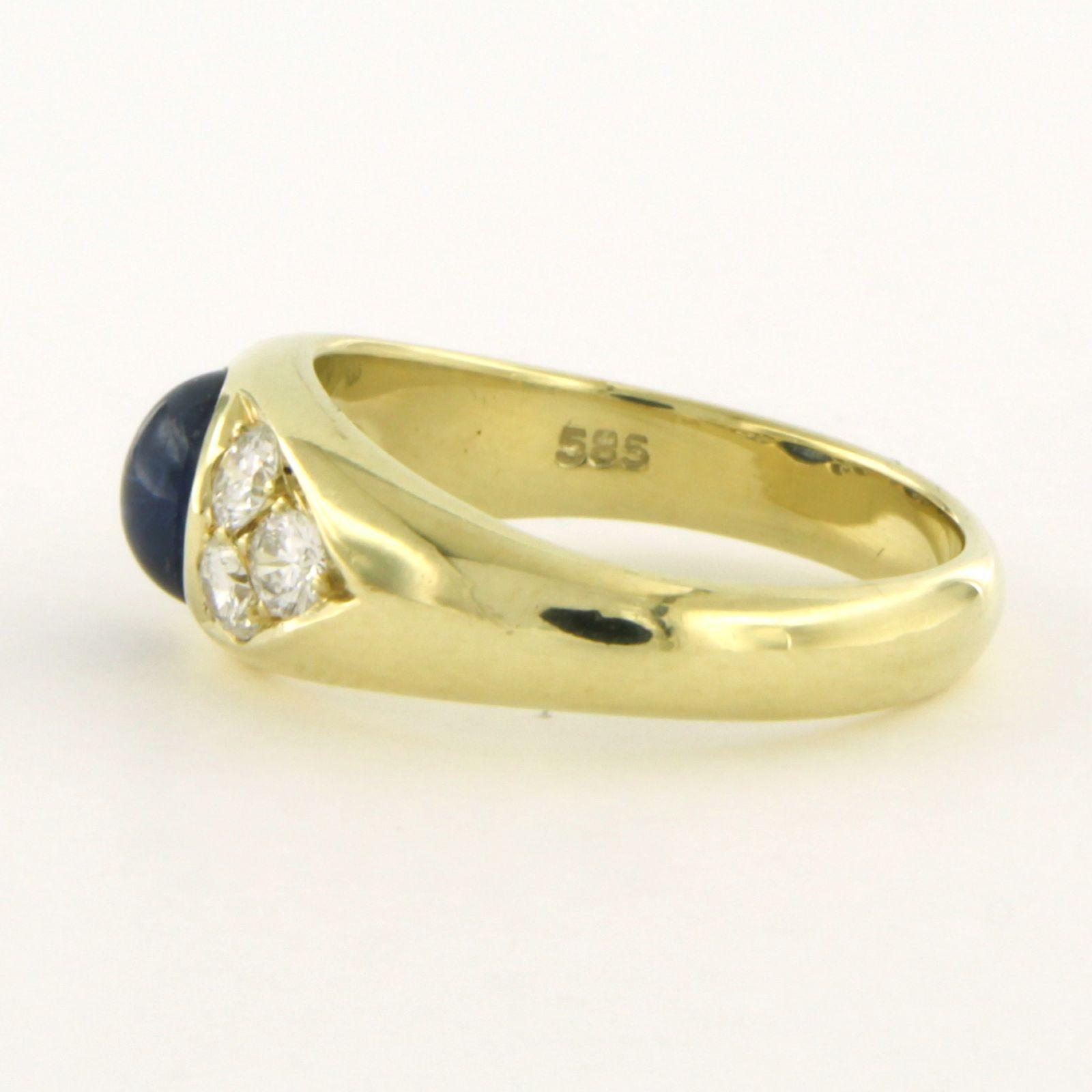 14 Kt. geelgouden ring bezet met een saffier en briljant geslepen diamant tot. 0.60ct - ringmaat 17.25(54)