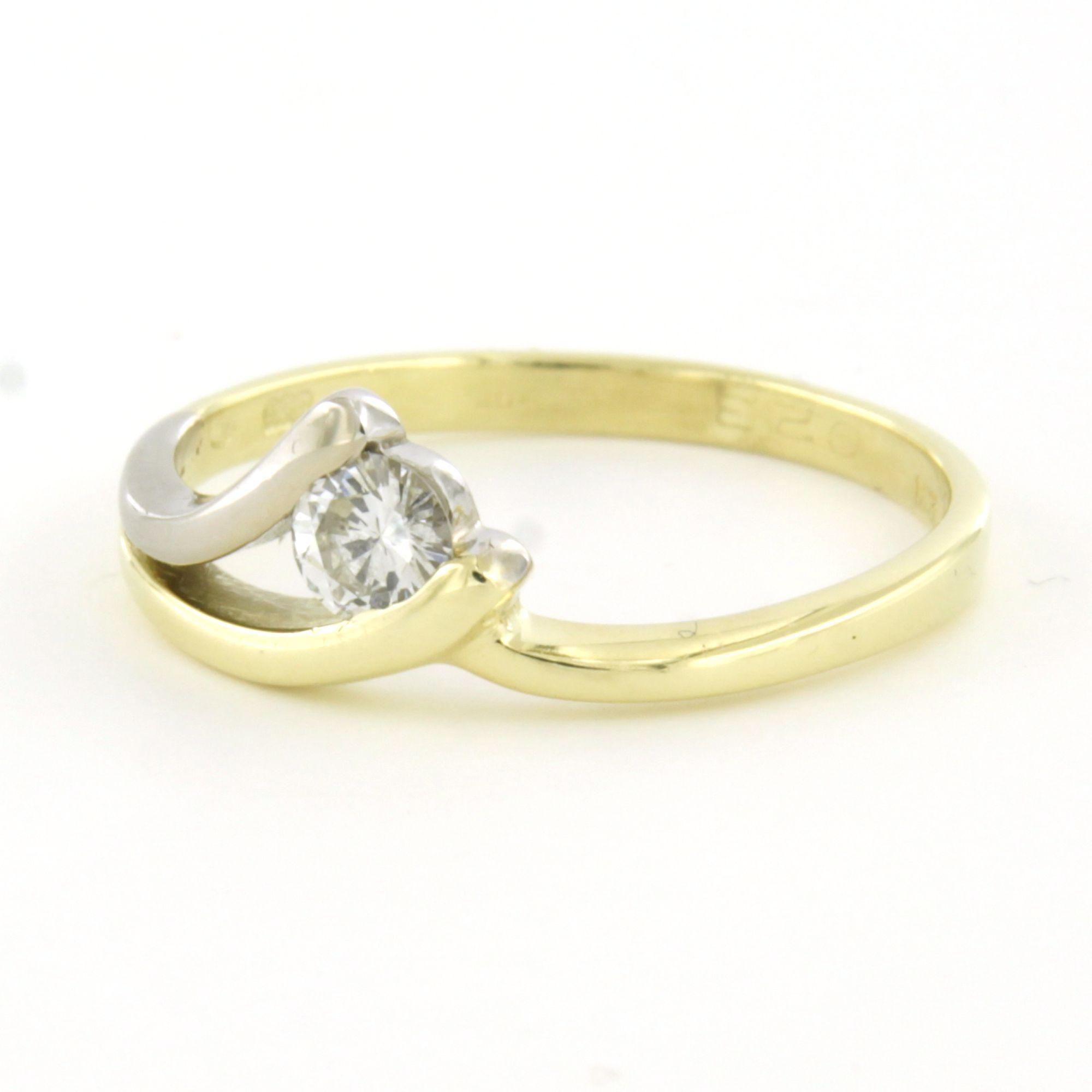 14 Kt. bicolour gouden ring bezet met briljant geslepen diamant 0.25 ct F/G VS/SI - ringmaat 18.5 (58)