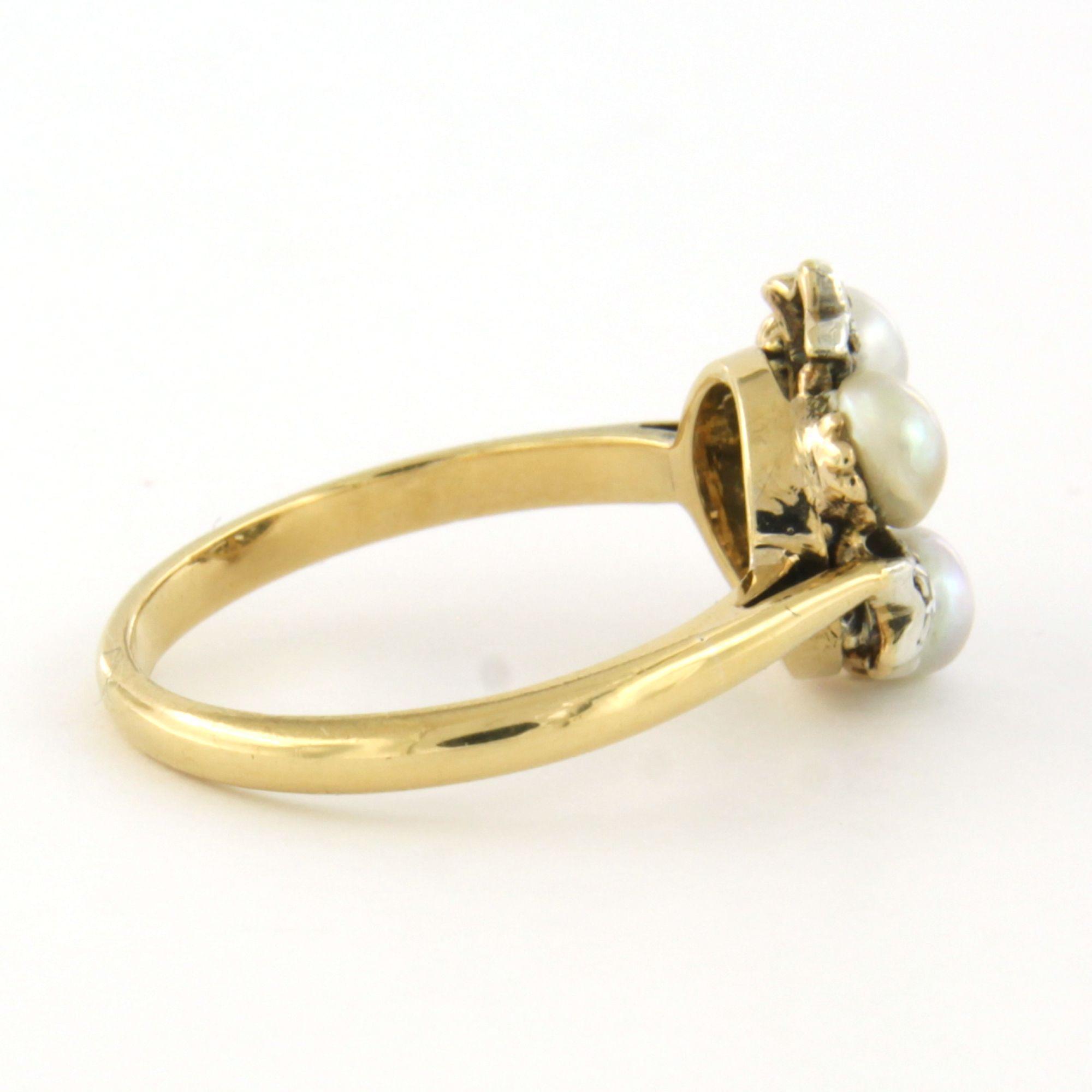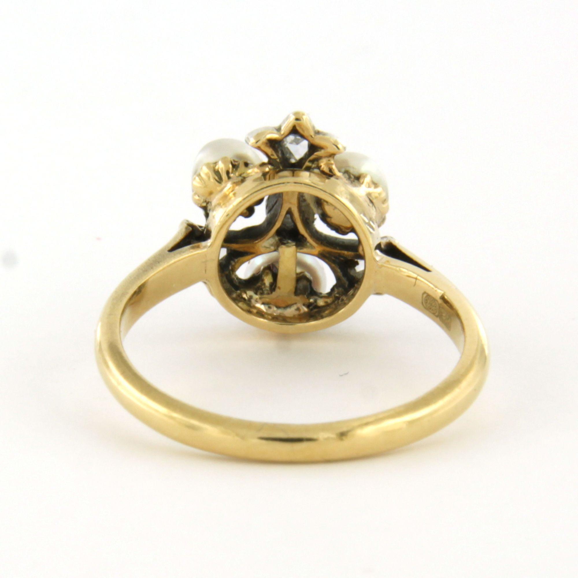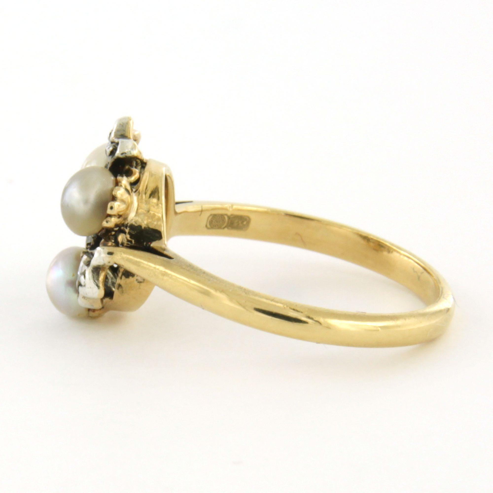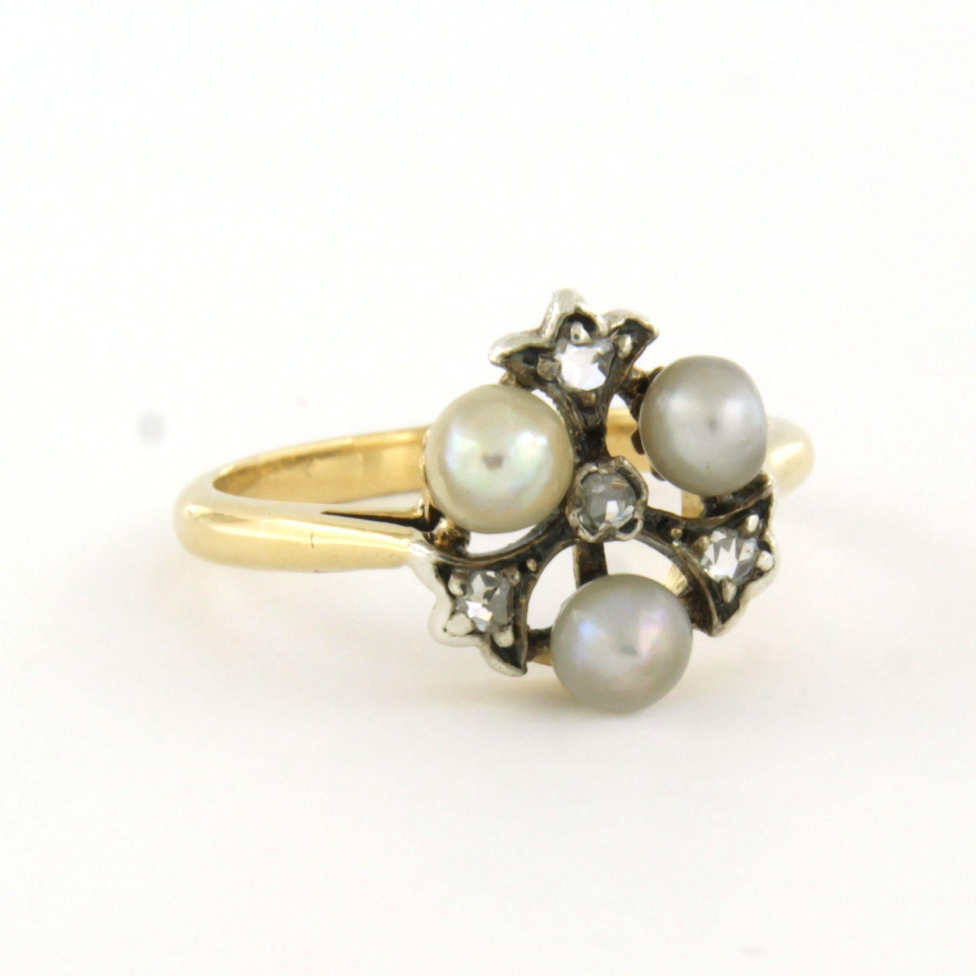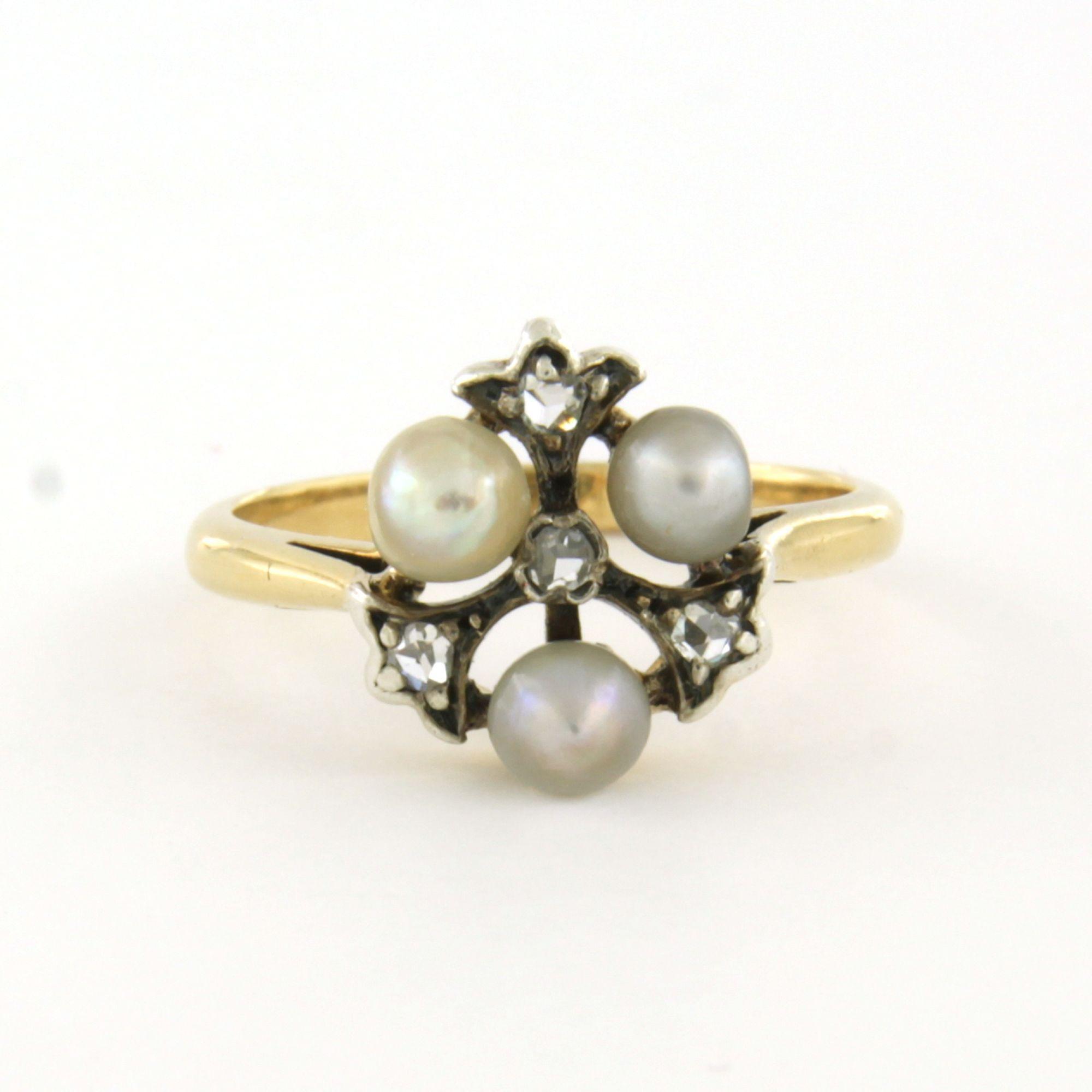 14 Kt. goud met zilver ring bezet met parel en roosgeslepen diamanten totaal 0.15 ct - ringmaat 15(47)