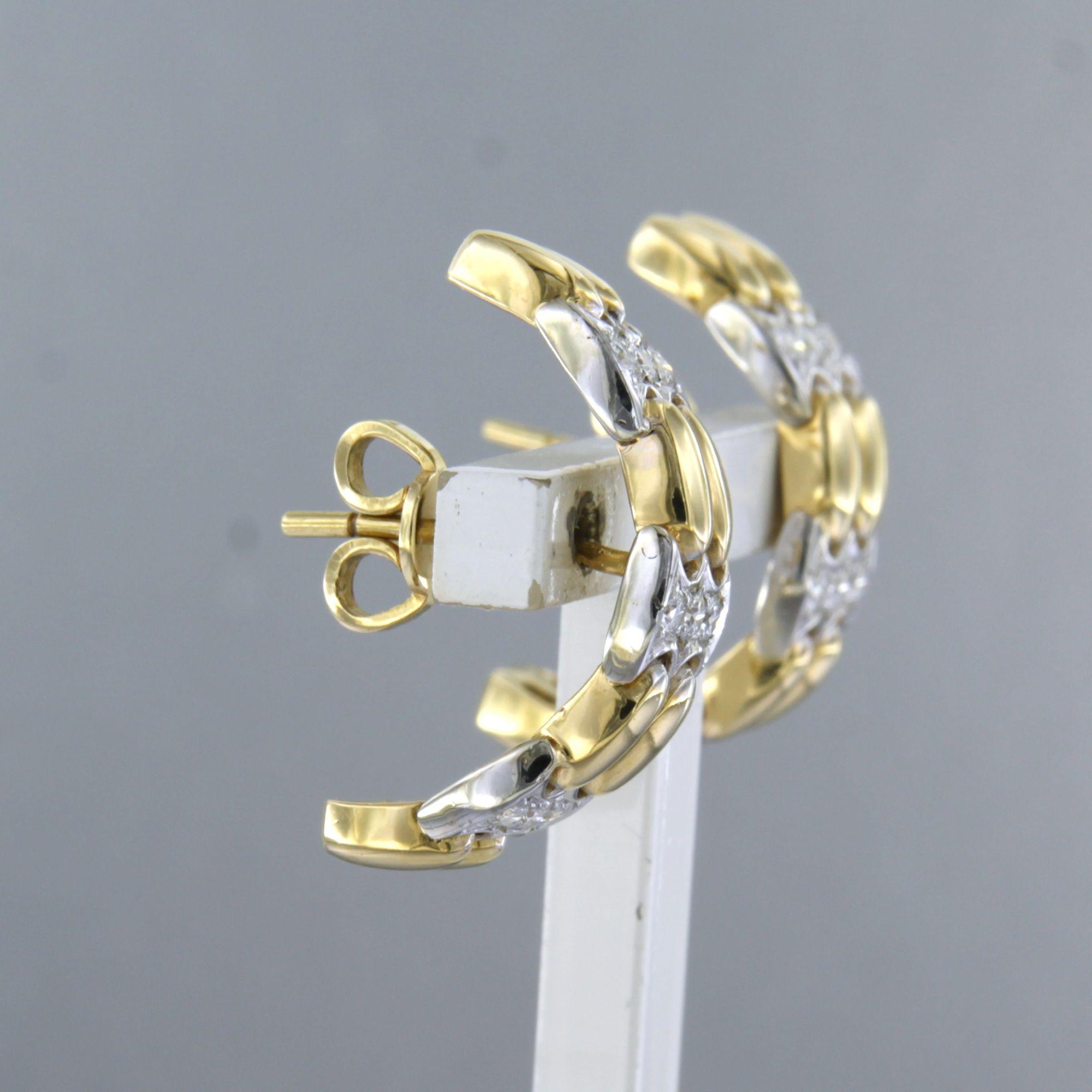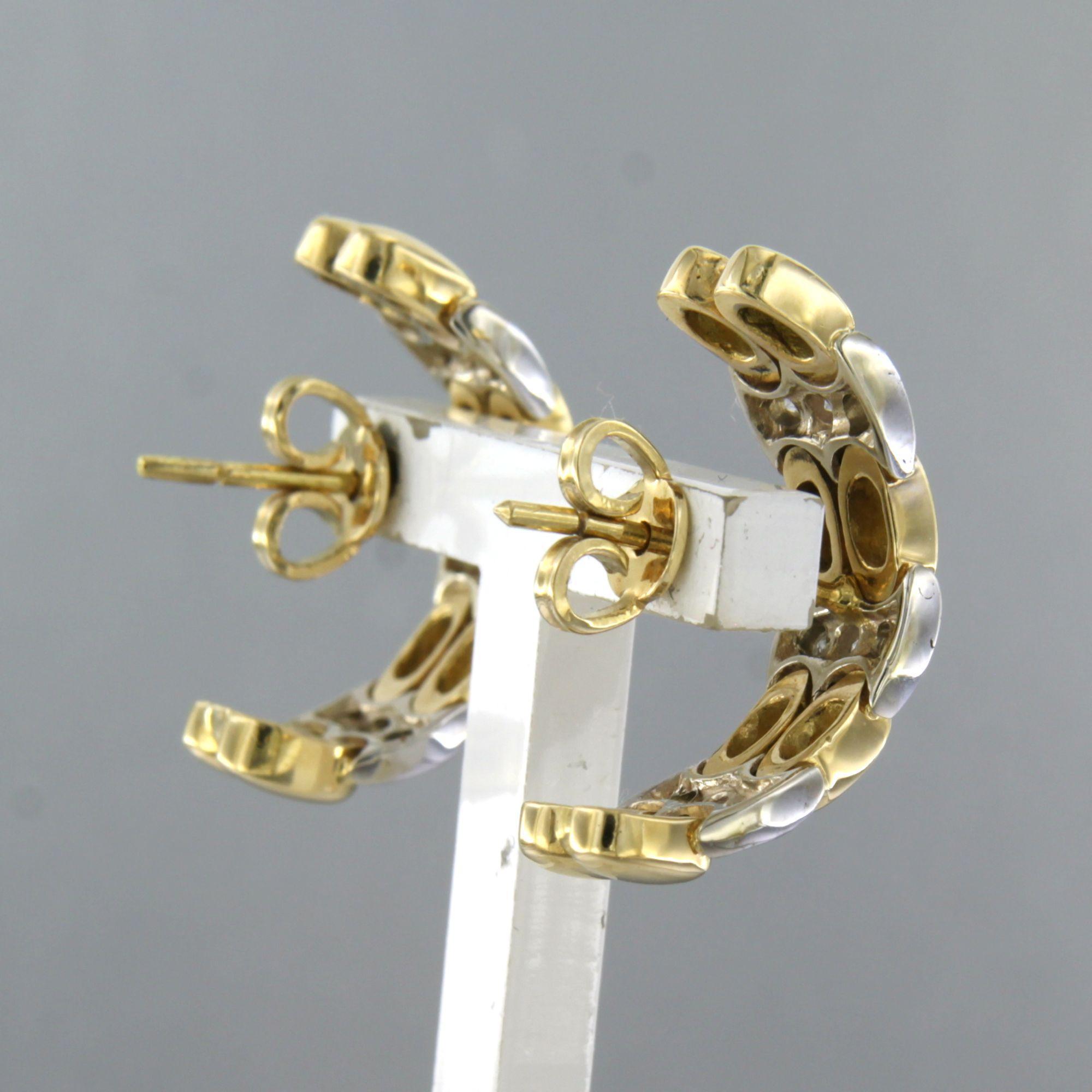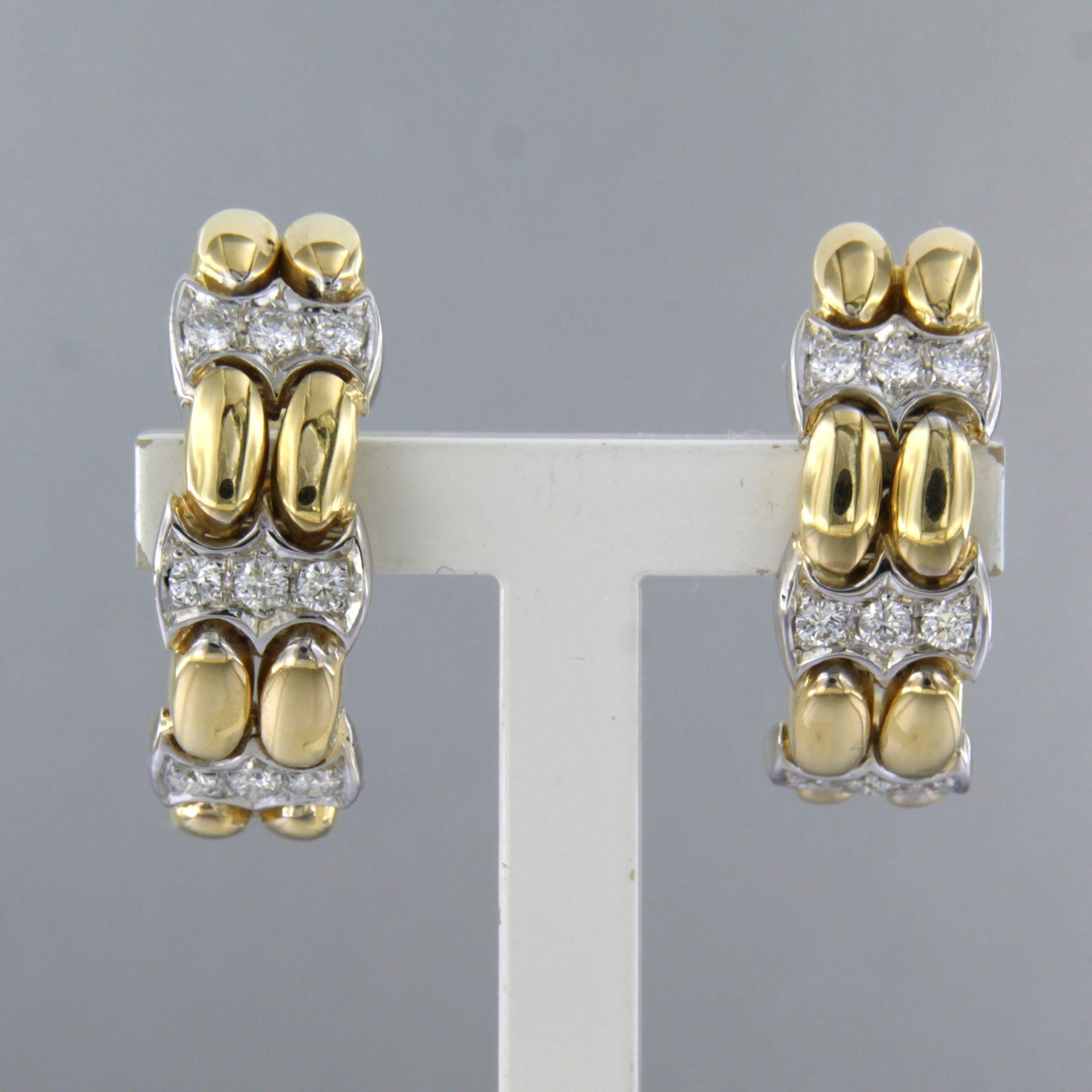 18 Kt. bicolour gouden oorbellen bezet met briljant geslepen diamanten totaal 0.50 ct