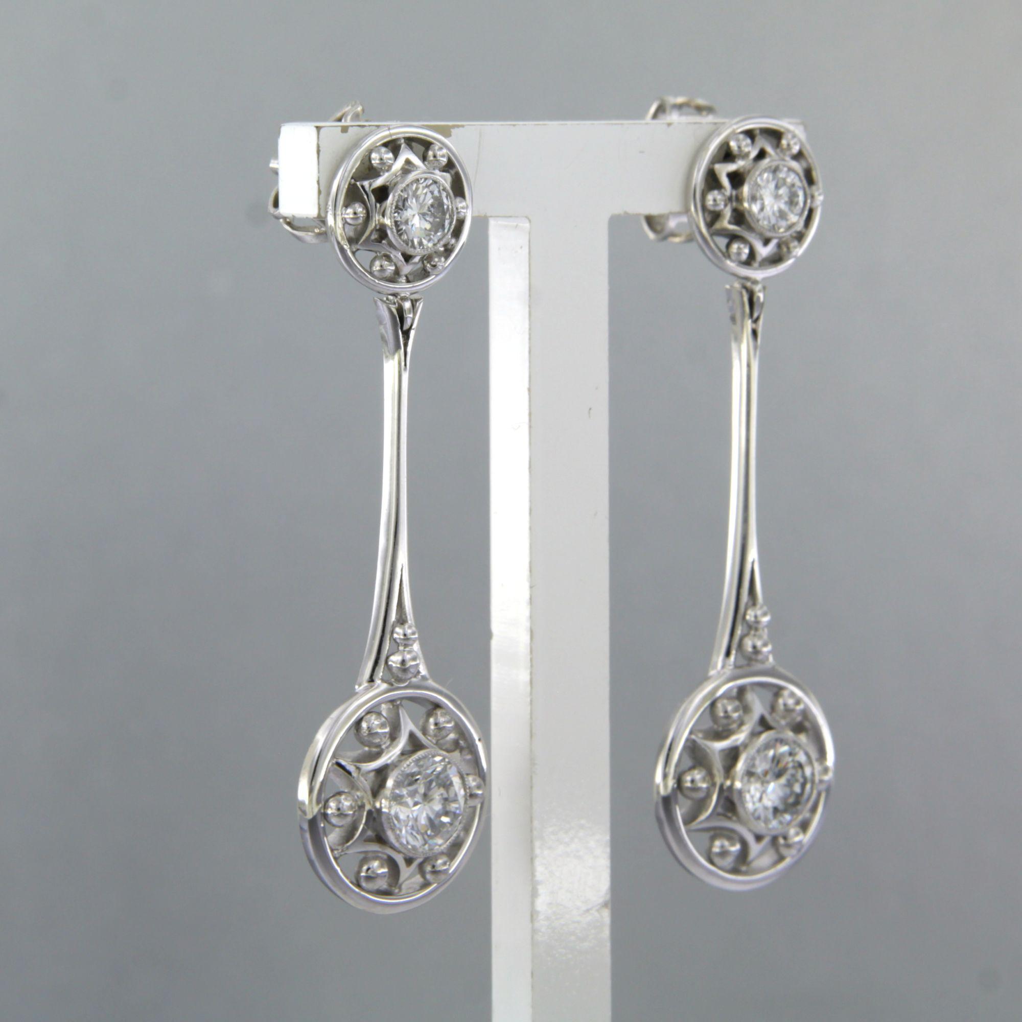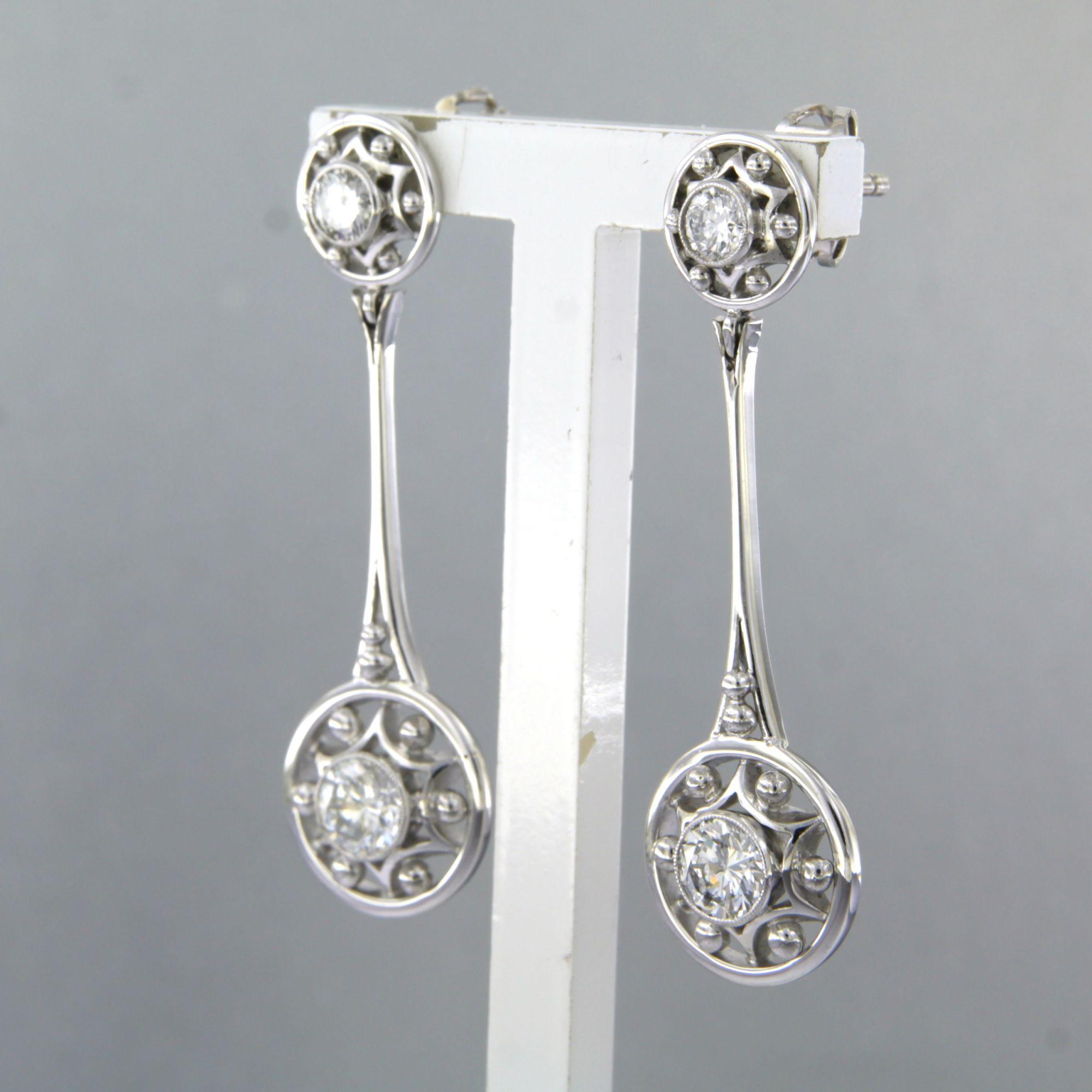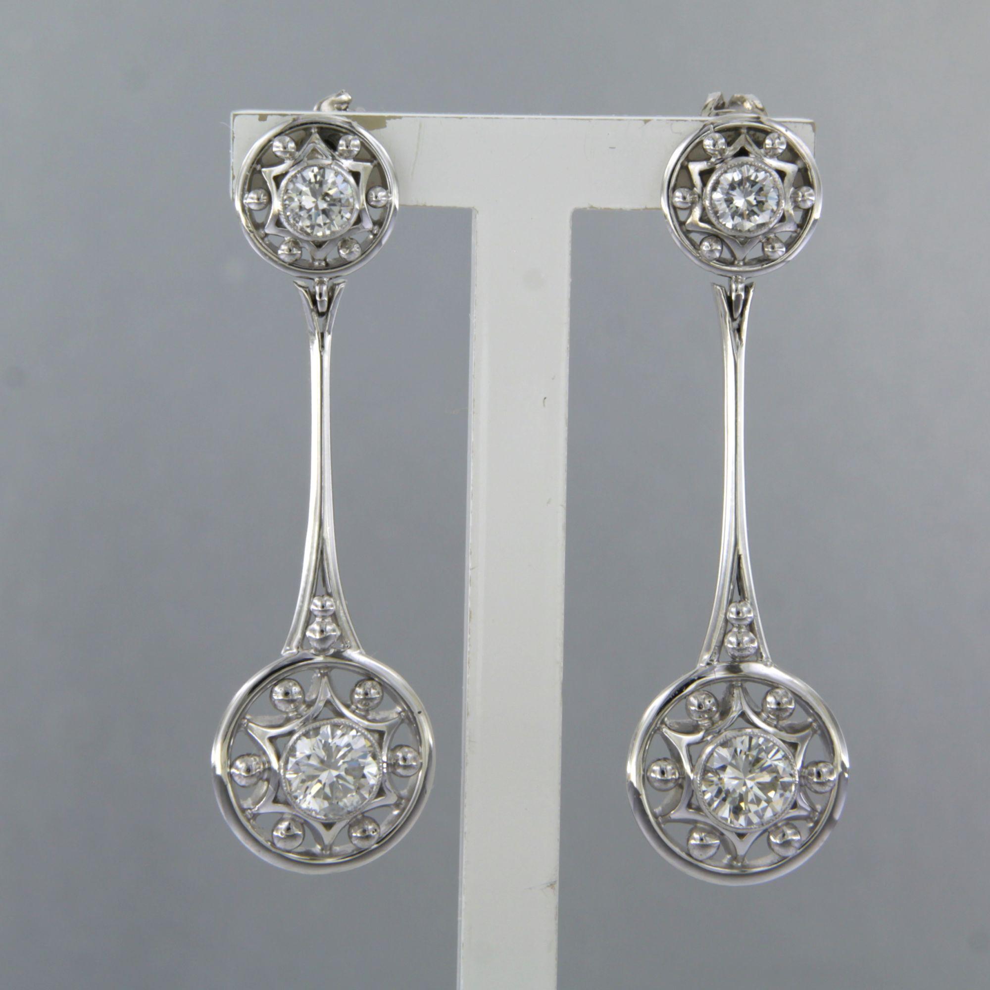 14 Kt. witgouden oorhangers bezet met briljant geslepen diamanten totaal 1.34 ct F/G SI