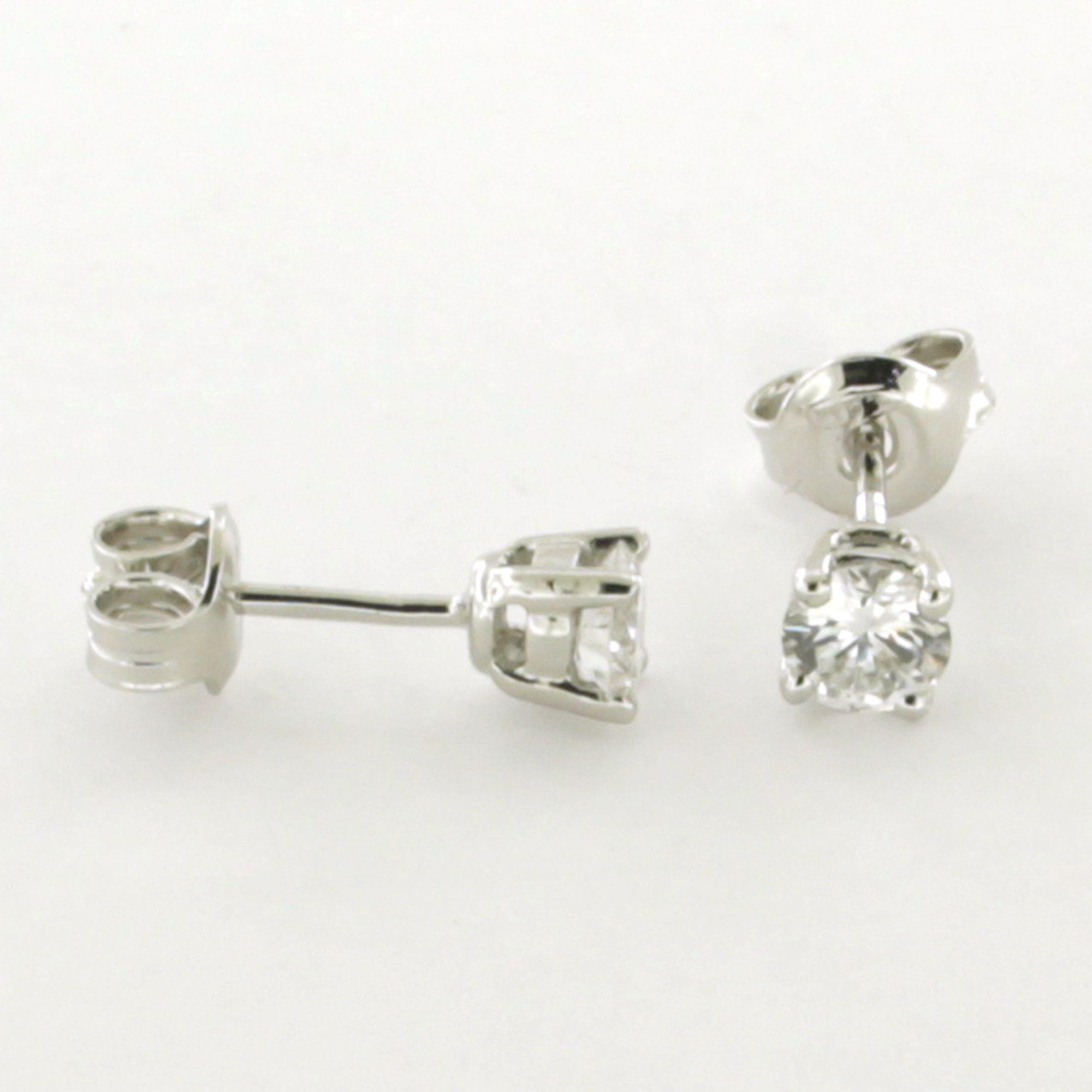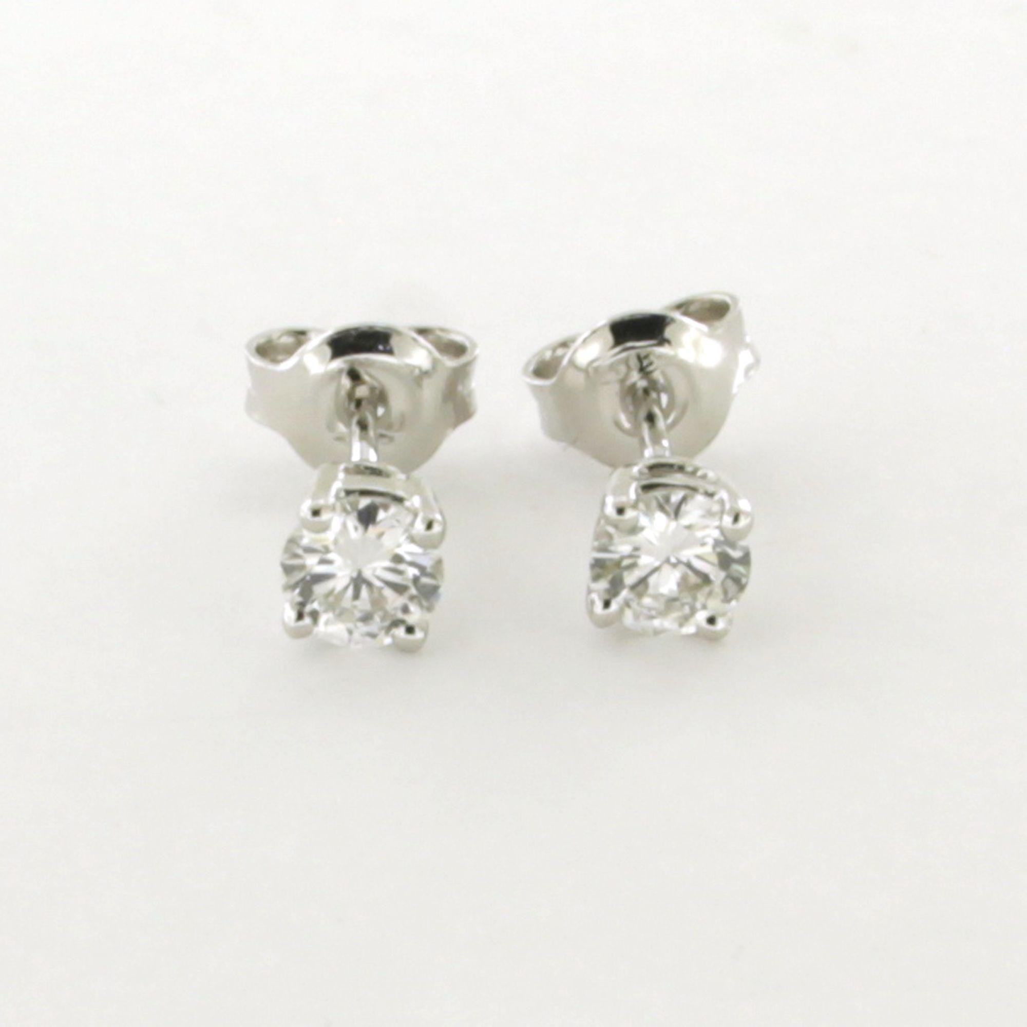 14 Kt. witgouden solitair oorknoppen bezet met briljant geslepen diamanten 0.32ct D-VS2 en 0.31ct D-VS1, de diamanten zijn door IGI onderzocht, diamond report 457059613 en 457059643
