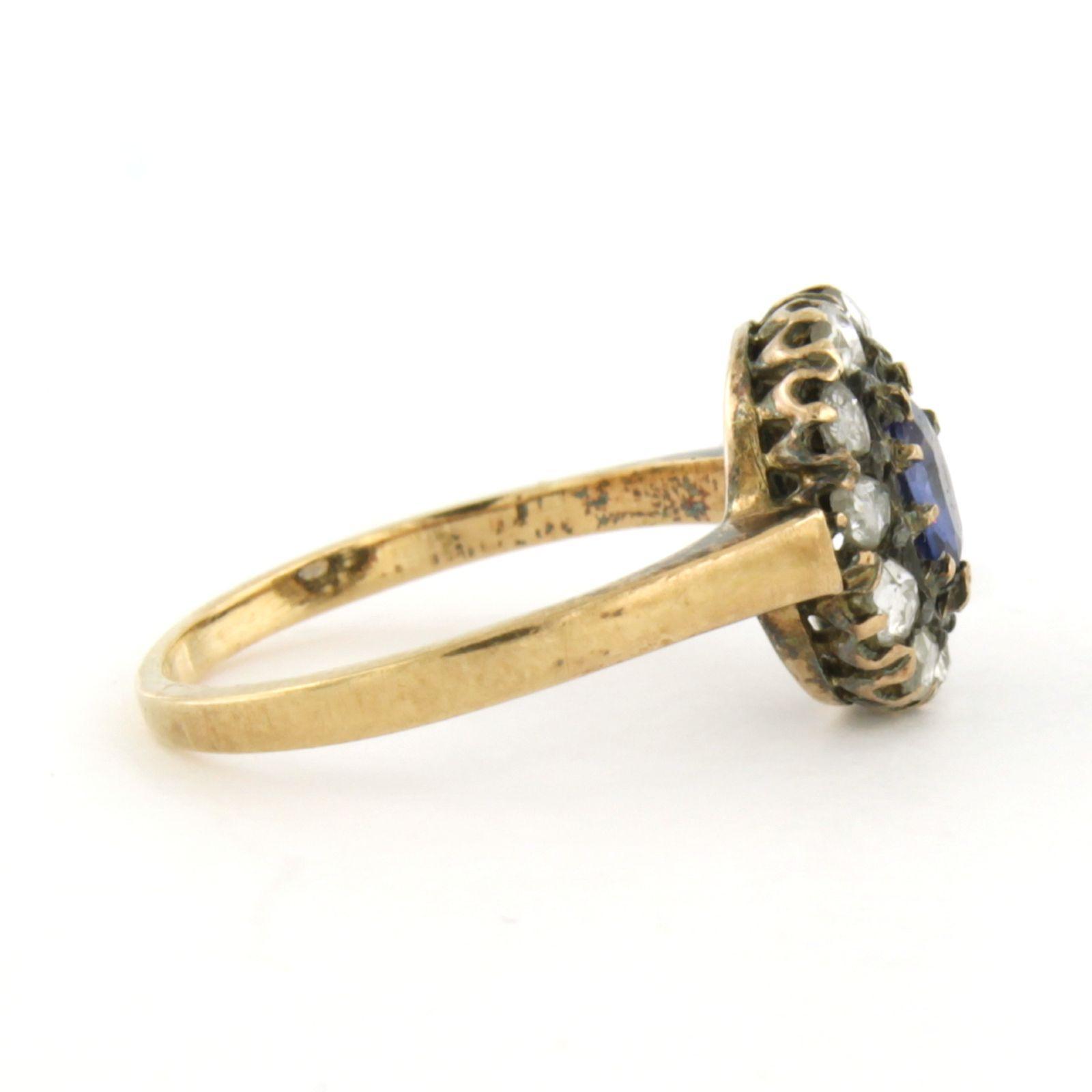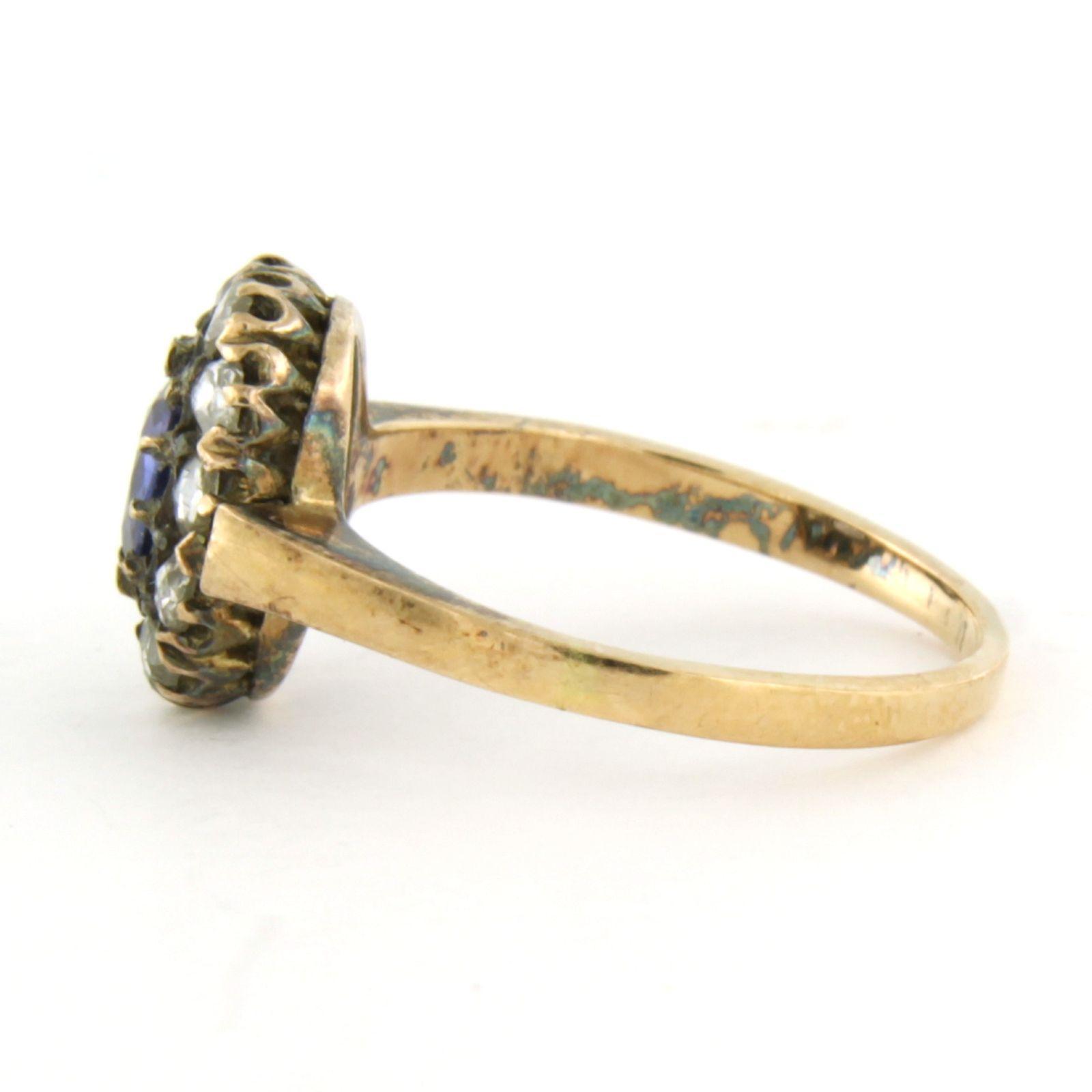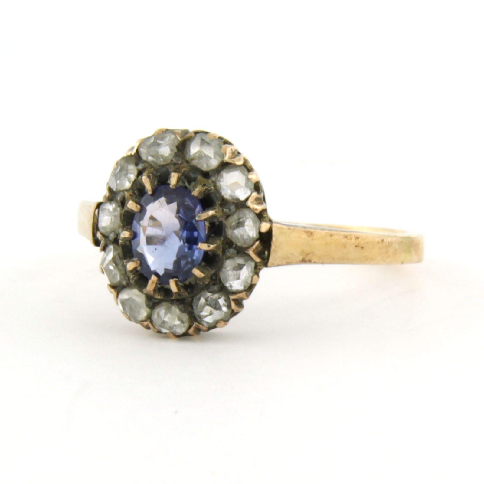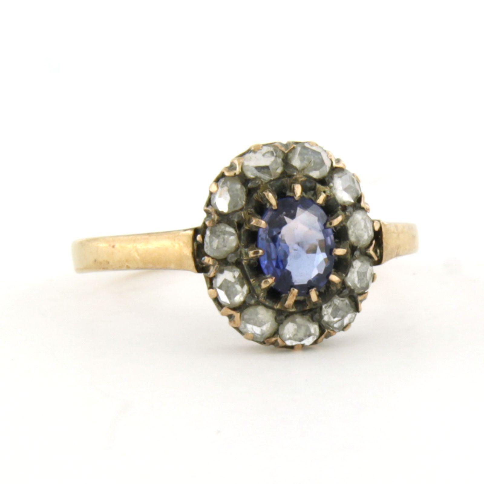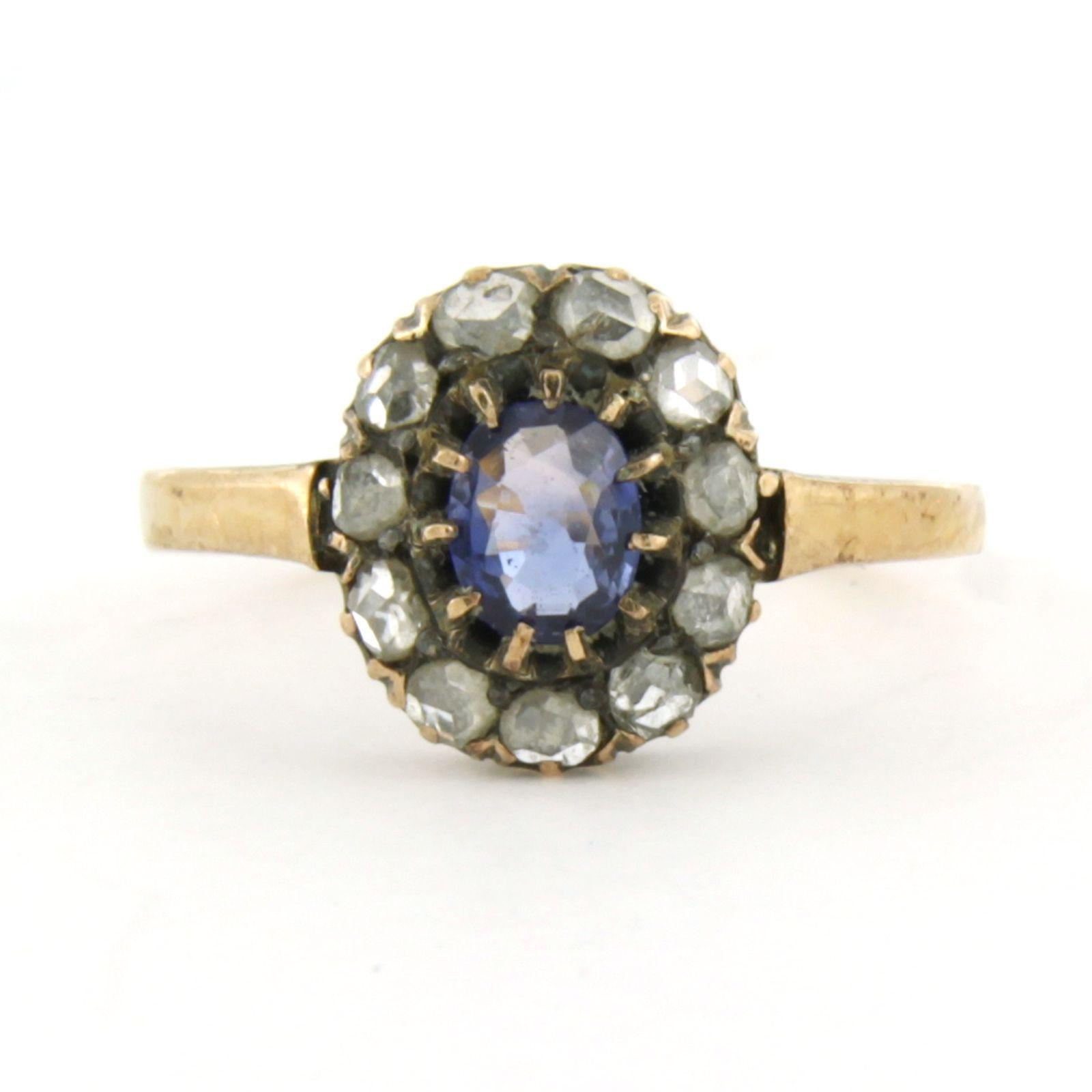 14 Kt. geel gouden ring bezet met saffier tot. 0.20ct en roos geslepen diamanten tot. 0.20ct - G/H - SI - ringmaat 15.75(49)