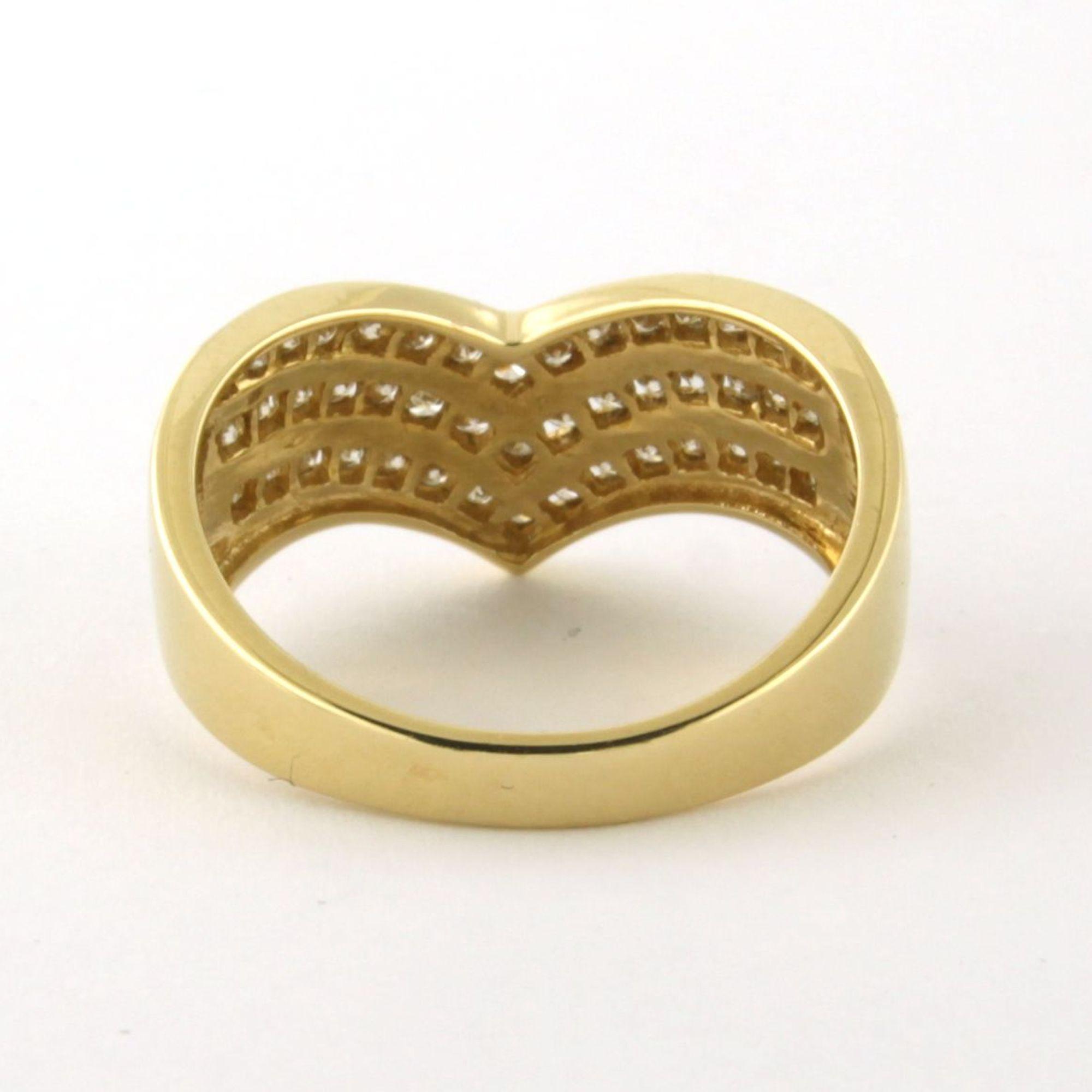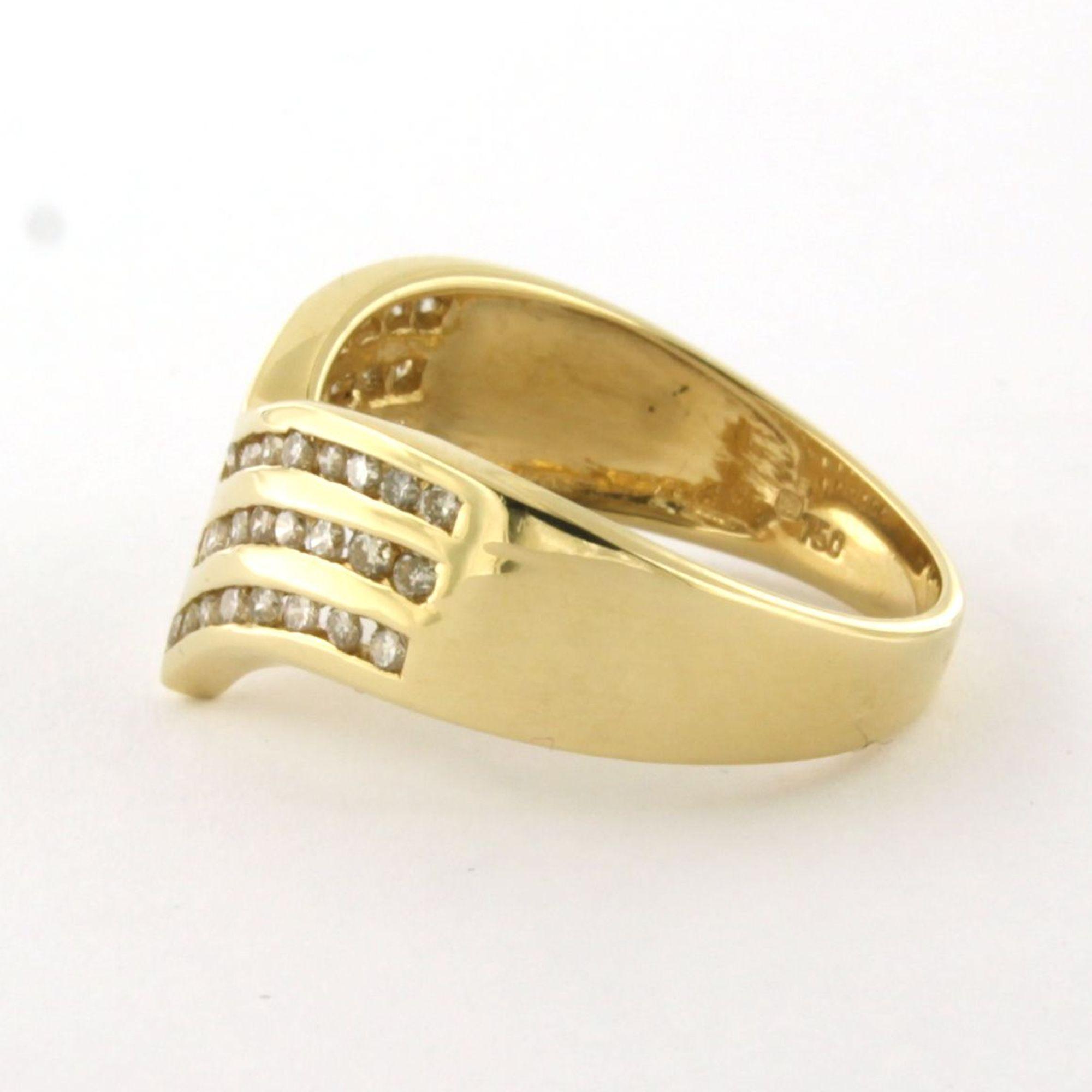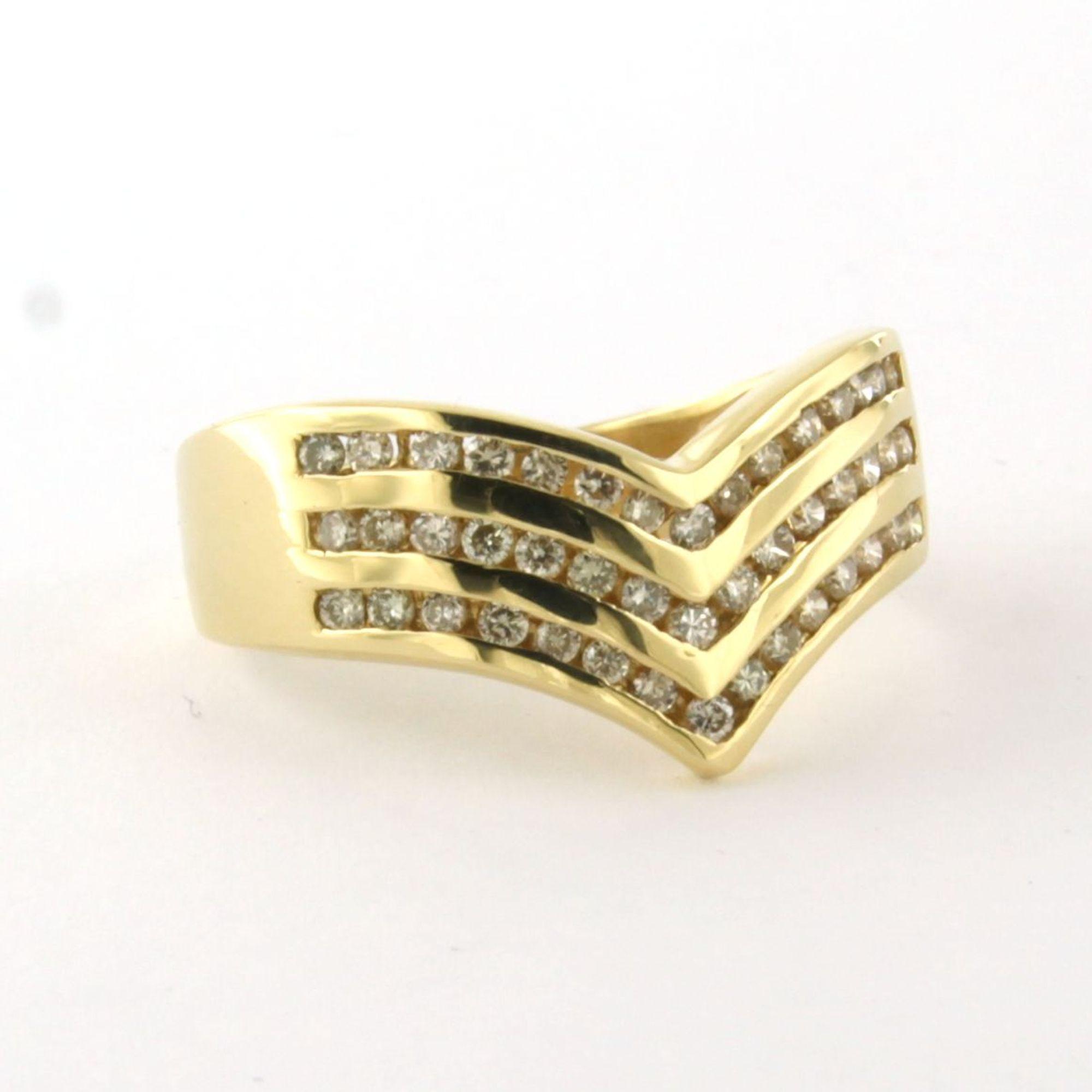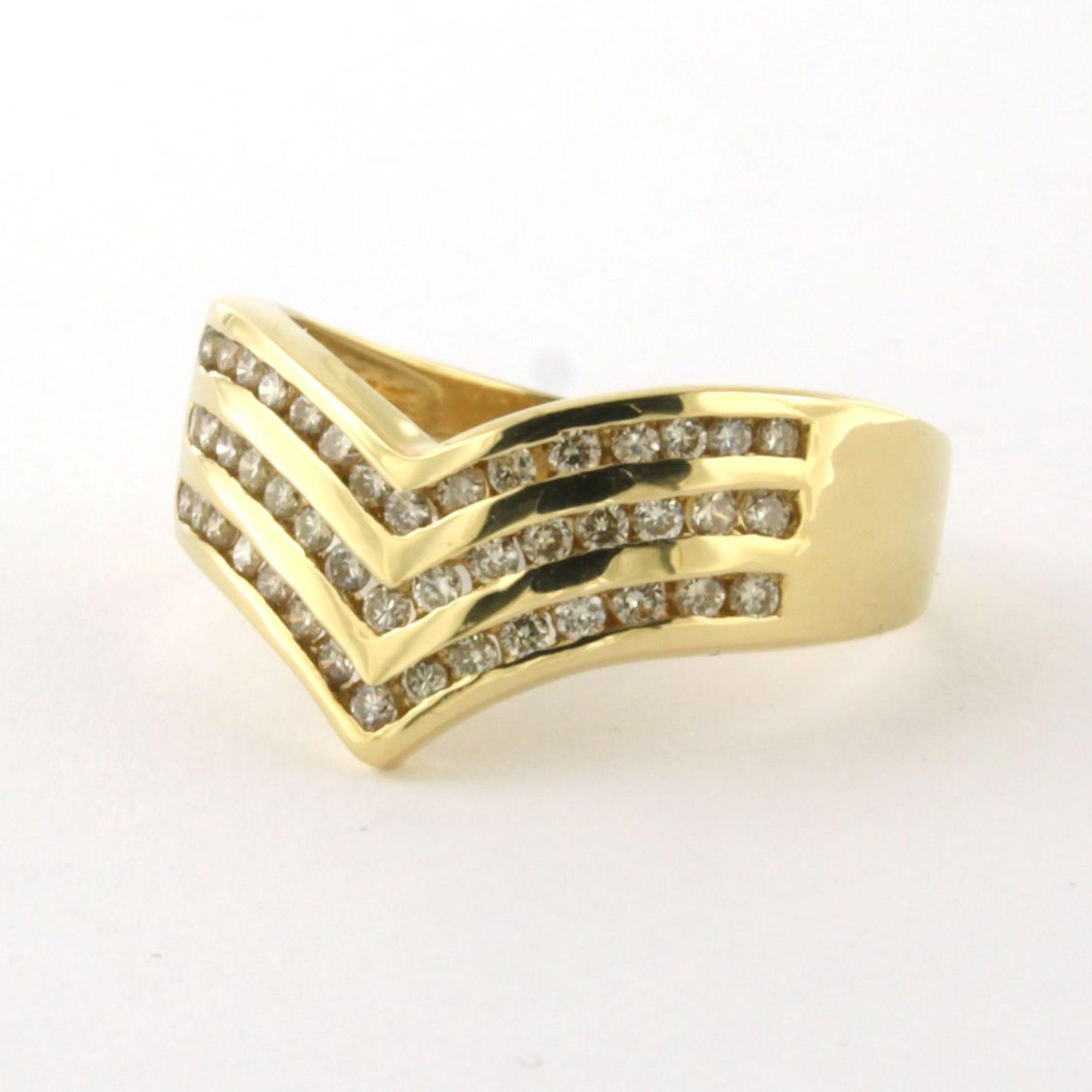 18 Kt. geelgouden ring bezet met briljant geslepen diamanten totaal 0.30ct - ringmaat 17.75(56)