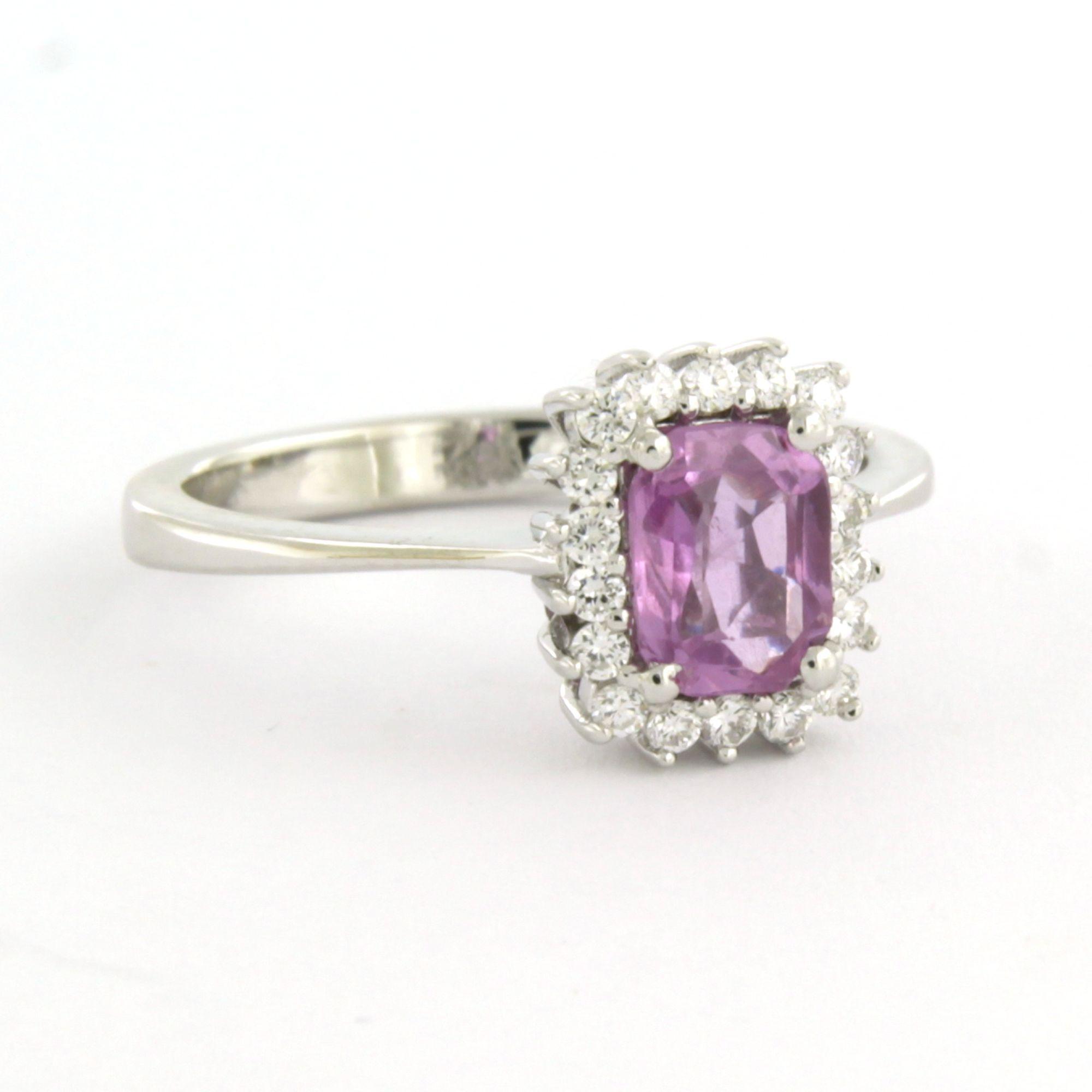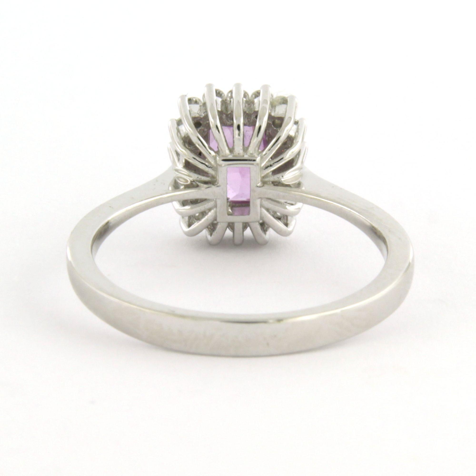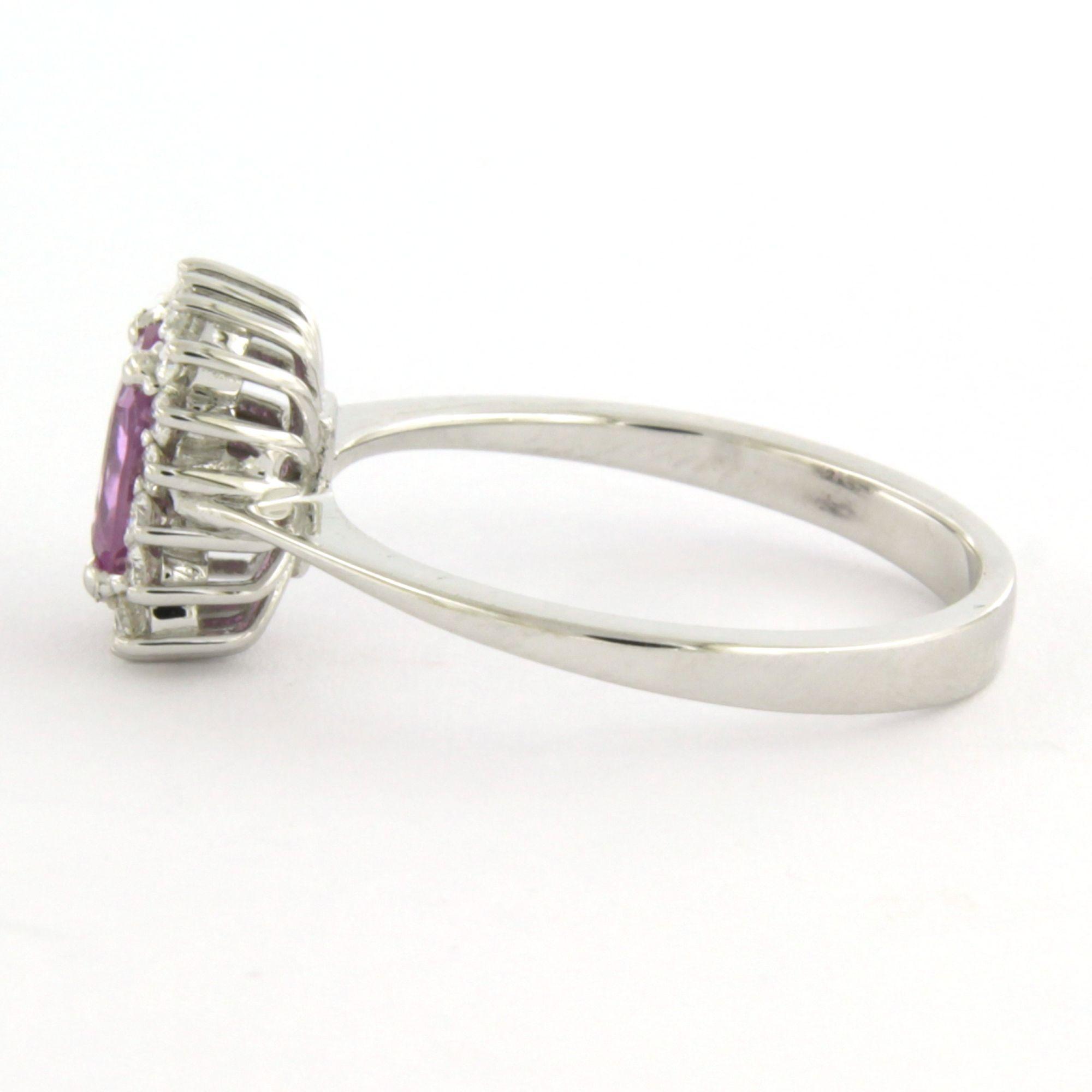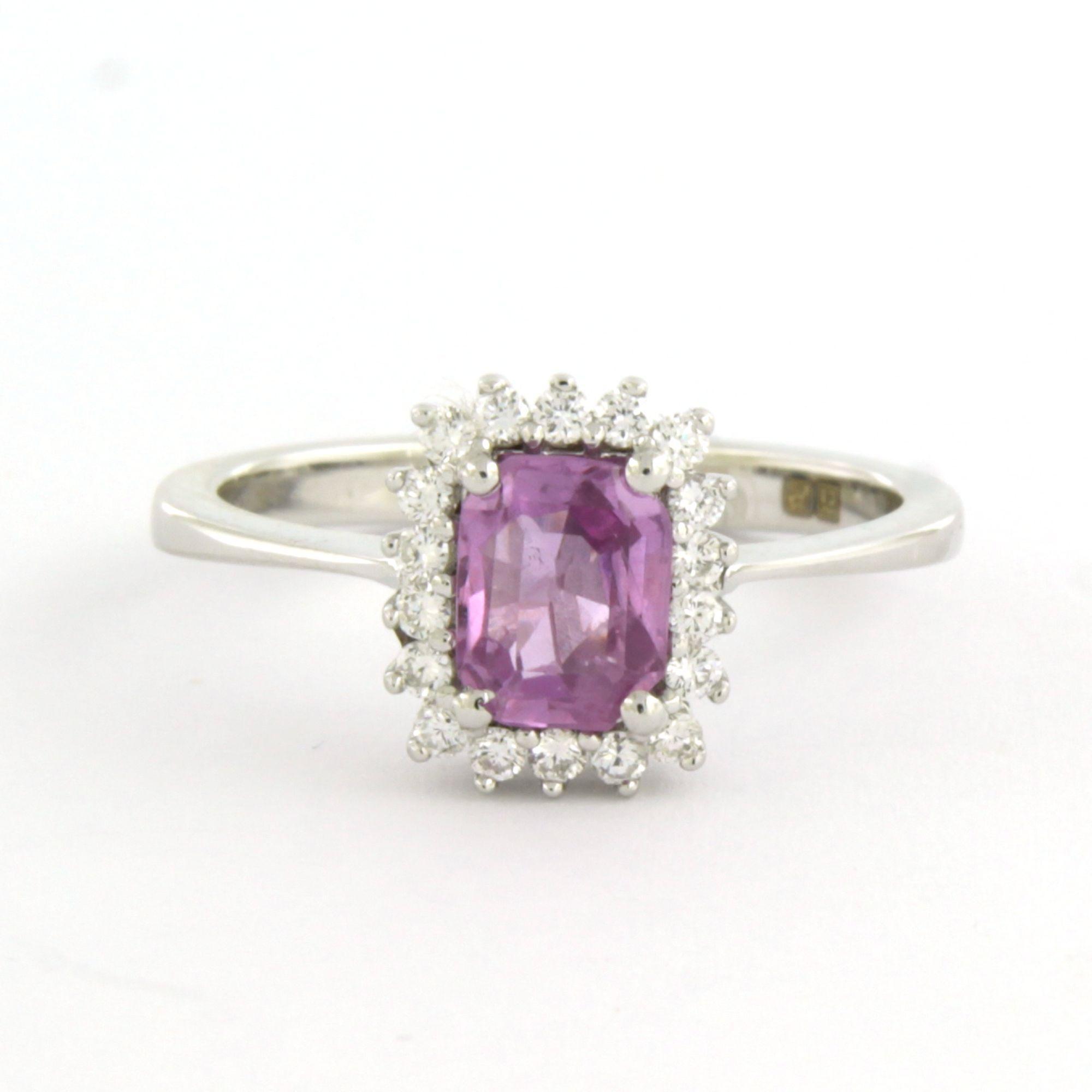 18 Kt. gouden ring bezet met roze saffier en briljant geslepen diamant tot. 0.22ct - ringmaat 17.5(55)