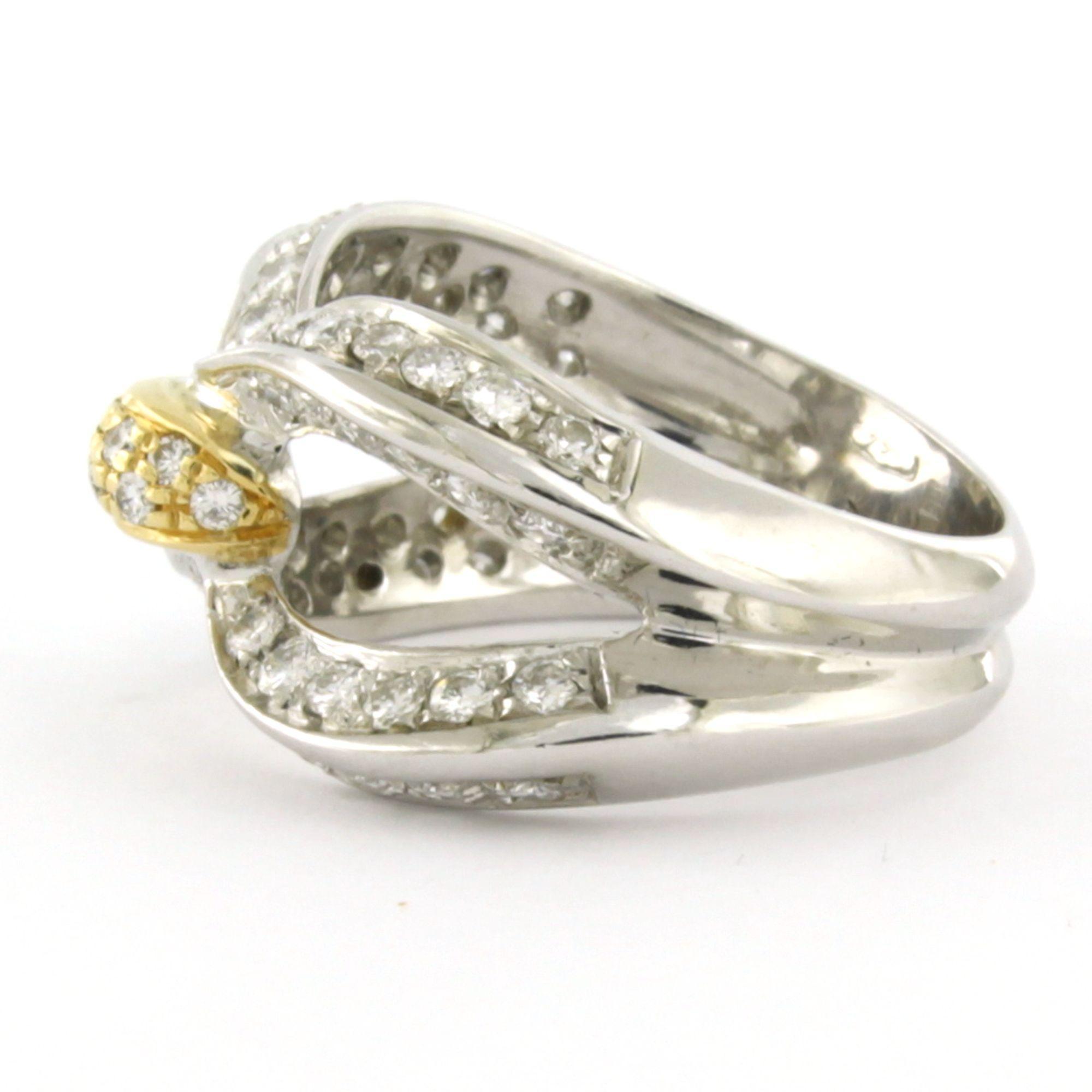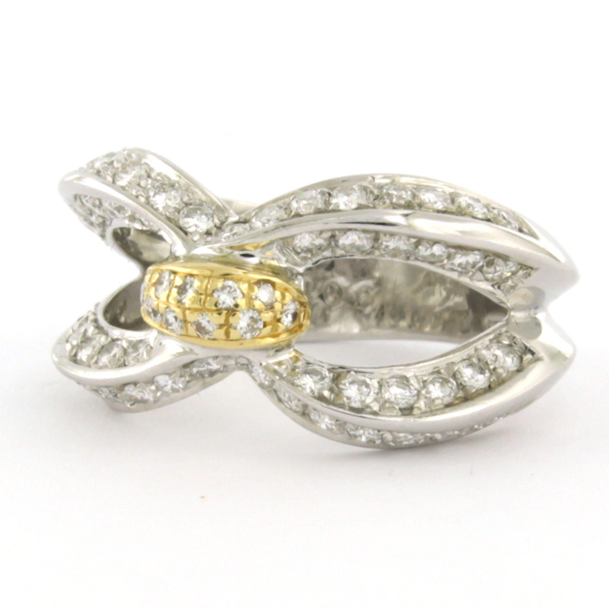 18 Kt. bicolour gouden ring bezet met briljant geslepen diamanten totaal 1.06ct F/G VS/SI - ringmaat 17.5(55)
